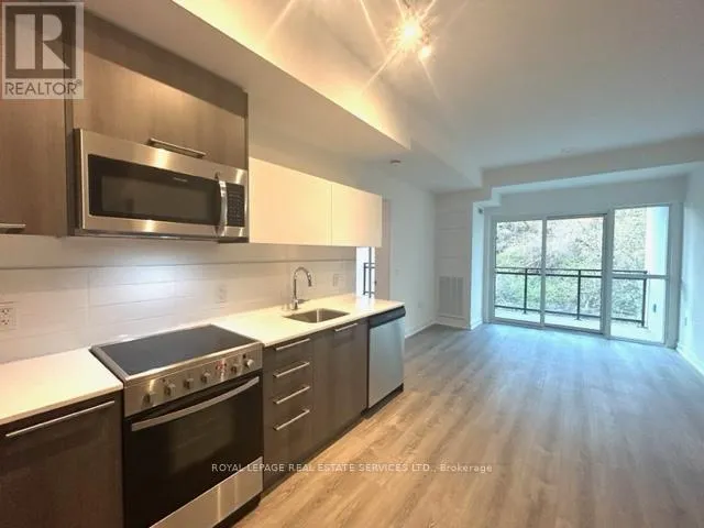 The Queensway and Park Lawn Welcome to this quiet, low-rise building at 25 Neighbourhood Lane, just 3 years old and tucked into a peaceful setting. This corner unit features 2 bedrooms and 2 bathrooms with impressive 10-foot ceilings and floor-to-ceiling windows that fill the space with natural light. The layout is functional and efficient, with a practical split-bedroom design that offers privacy and comfort. Step out onto your 115 sq ft balcony and enjoy serene views of trees and landscaped gardens on the quiet side of the neighbourhood. The primary bedroom includes a walk-in closet and a modern 3-piece ensuite with a glass shower. The sleek kitchen is designed with quartz countertops, stainless steel appliances, and a stylish backsplash. Surrounded by nature, you're just steps from the Humber River and nearby trails, perfect for walking and unwinding outdoors. Conveniently located with a bus stop nearby, and only minutes by car to the Gardiner Expressway and TTC Stop. (id:27476)