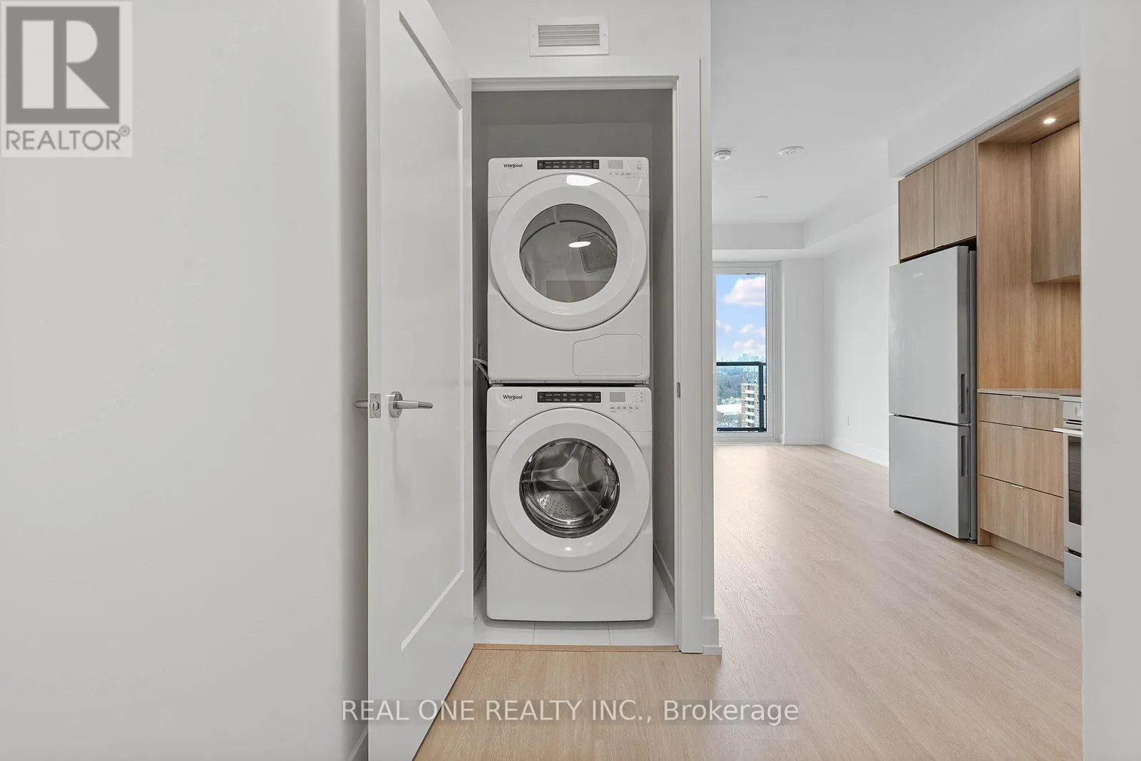 Bloor & Islington/Dundas/Cordova Clear CN Tower and Lake Views! Welcome to one of the most sought-after buildings at Islington & Bloor - Westerly 2 by Tridel.This bright and well-designed 2-bedroom, 2-bathroom suite features laminate flooring throughout and a functional open-concept layout. The spacious living and dining area offers unobstructed east-facing views of downtown Toronto, with ample room for a dining table, workspace, and comfortable seating.The primary bedroom enjoys beautiful east views and a generous closet, while the foyer includes additional storage, in-suite laundry, and a convenient 3-piece bathroom. The second bedroom is an interior room with sliding doors and a closet - ideal as a guest room, office, or flexible space.Residents of Westerly II enjoy exceptional amenities, including one of the city's most impressive two-storey lobbies, a fully equipped fitness centre with squat rack, a grand party room, and a bookable business/work lounge.Perfectly suited for commuters and work-from-home professionals alike, the building also offers ample visitor parking.Be part of this vibrant and growing community! (id:27476)