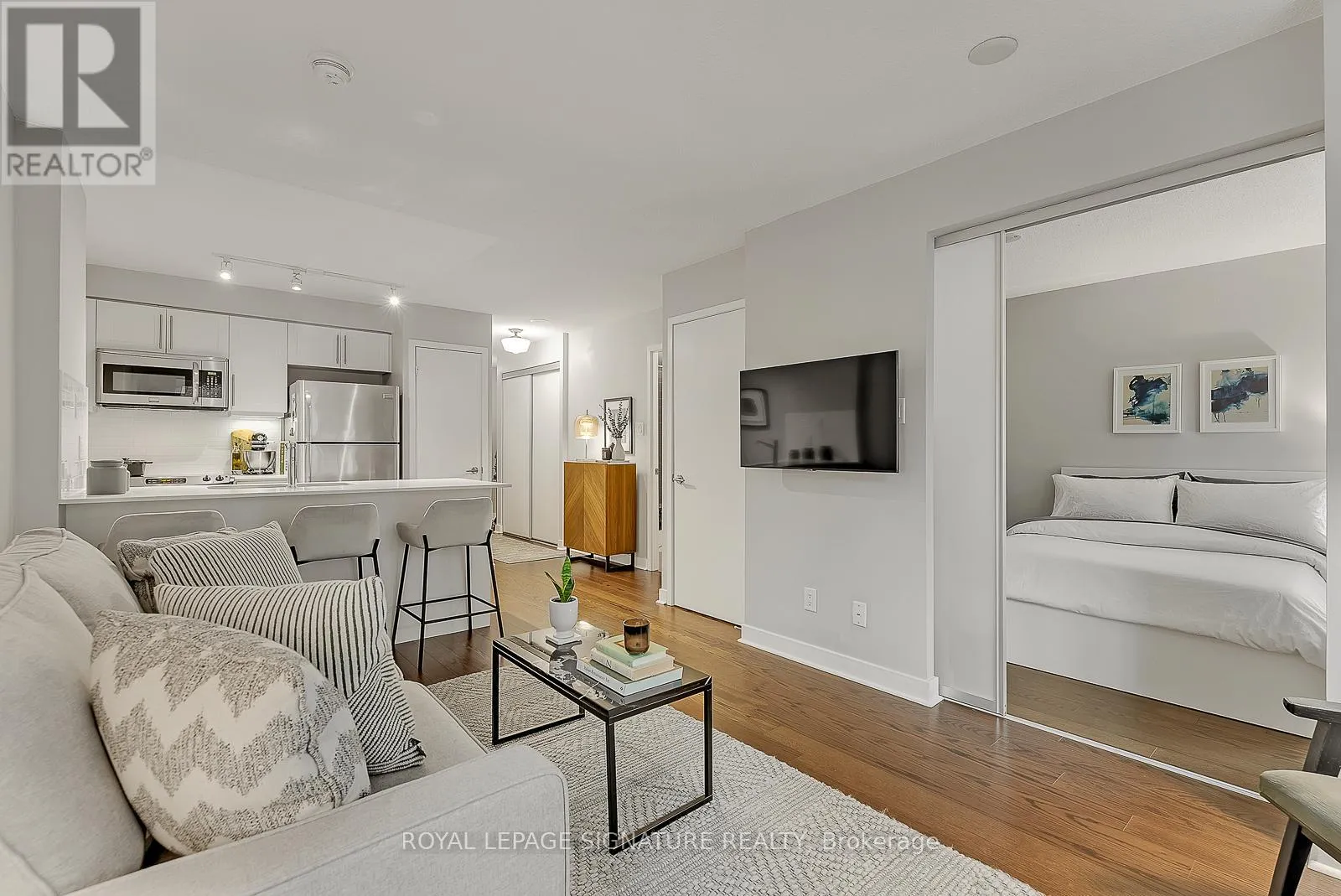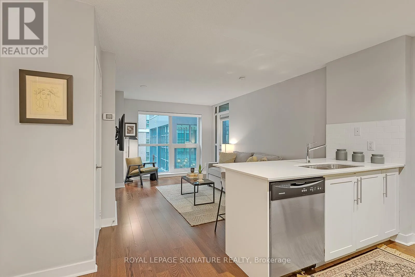 Queen St W/Gladstone Ave Live in the heart of Queen West without the noise. This unique 1-bedroom suite overlooks a serene courtyard and boasts high-end custom finishes. This unit is right in the heart of Queen West, just a short walk to Ossington & Trinity Bellwoods, and steps away from Grocery stores & cafes. All while overlooking a quiet courtyard that feels separated from the city. *The Location:- 99 Walk Score.- 5 min to Ossington Ave. Access to all the coolest bars & restaurants in Toronto. - 10 min to Trinity Bellwoods Park.- Easy access to 501 Queen Streetcar. **The Unit:- Open-concept living with built-in cord-free TV mounting setup. - In unit washer/dryer- Full-sized stainless steel appliances (including dishwasher).- Small mudroom/entryway (unheard of in Toronto condos) - Large picture windows with custom window treatments for added privacy- Private balcony with the unique character of exposed brick. ***The Building: Live in the highly sought after Bohemian Embassy, with 24/7 security desk, right in the heart of Queen West and with renovated amenities - Reno'd Fitness Centre.- Rooftop Terrace with City Views.- Media/Party Room & Guest Suites all updated this month (id:27476)