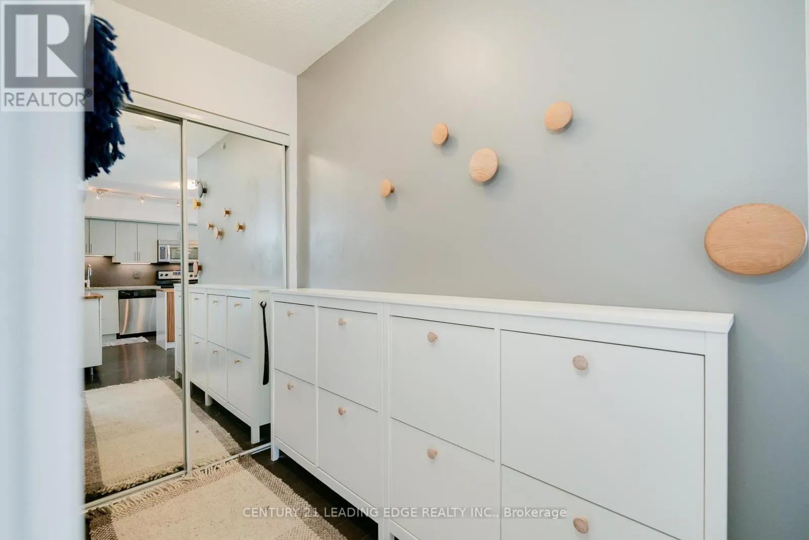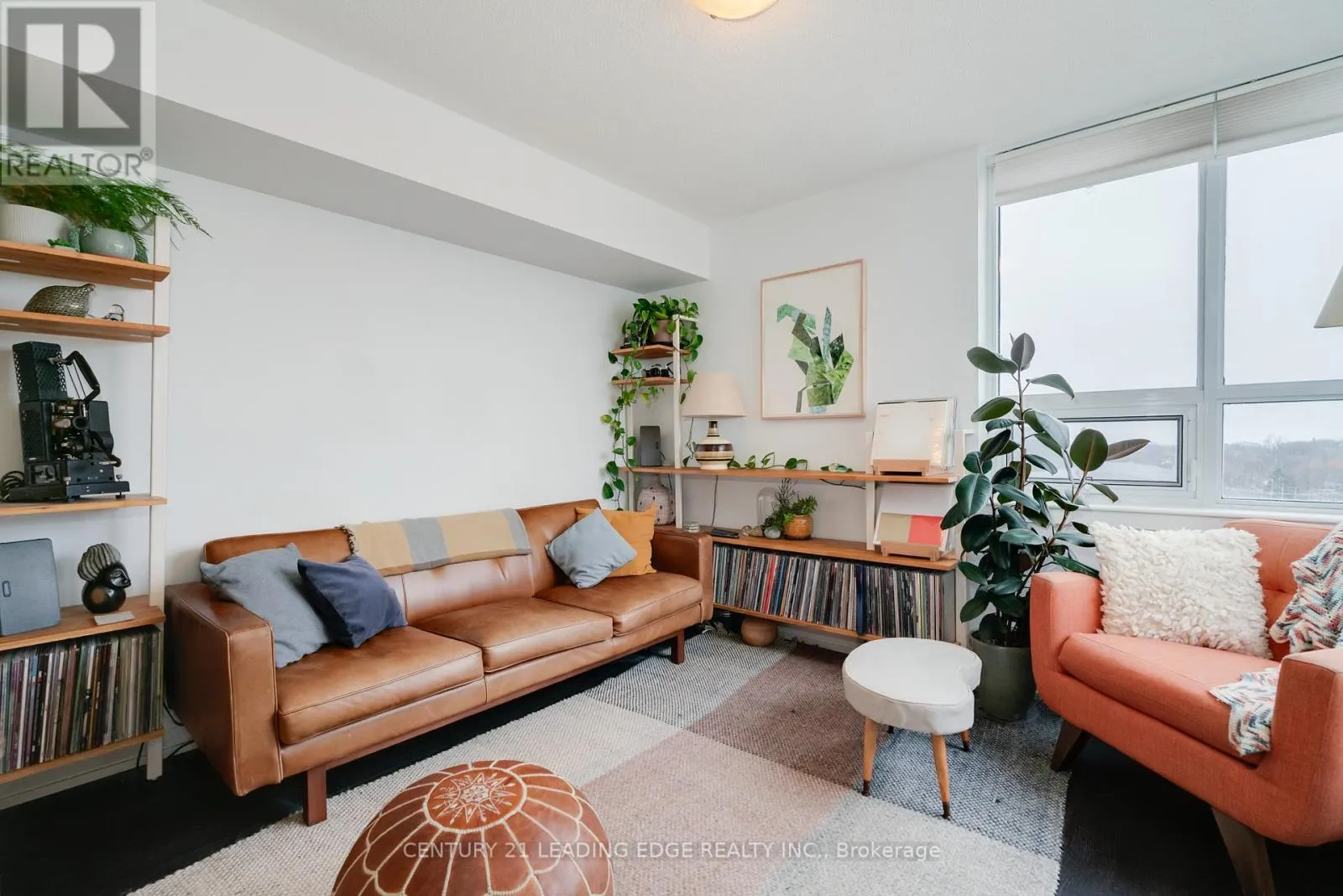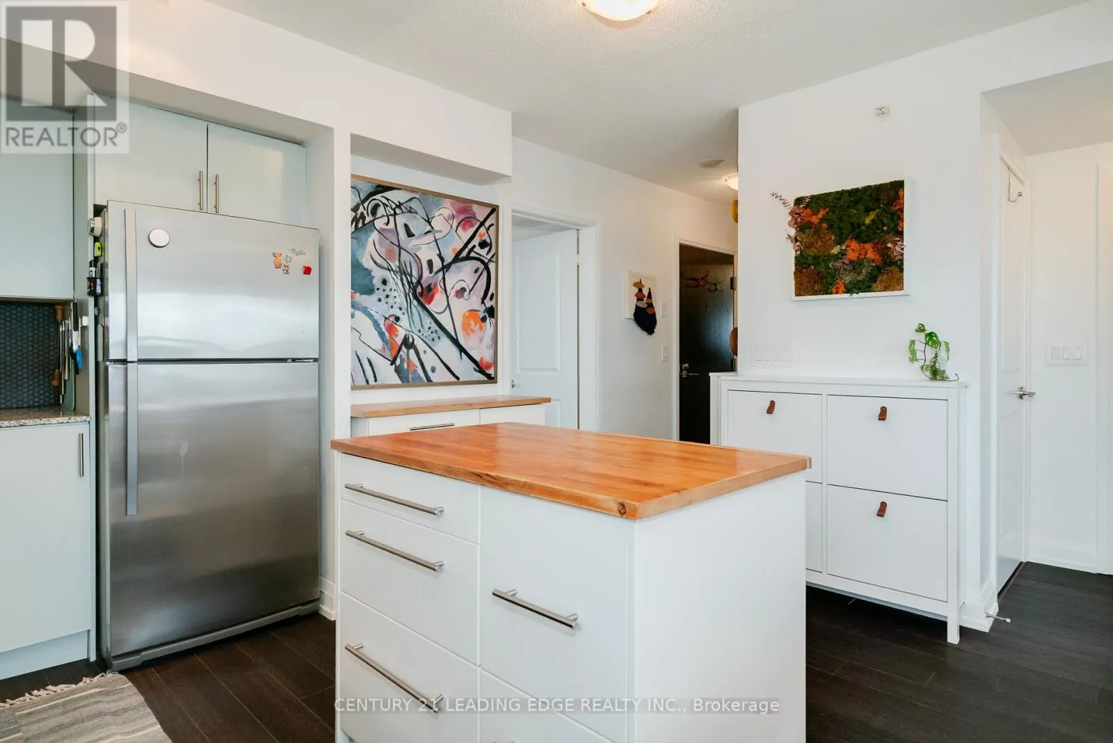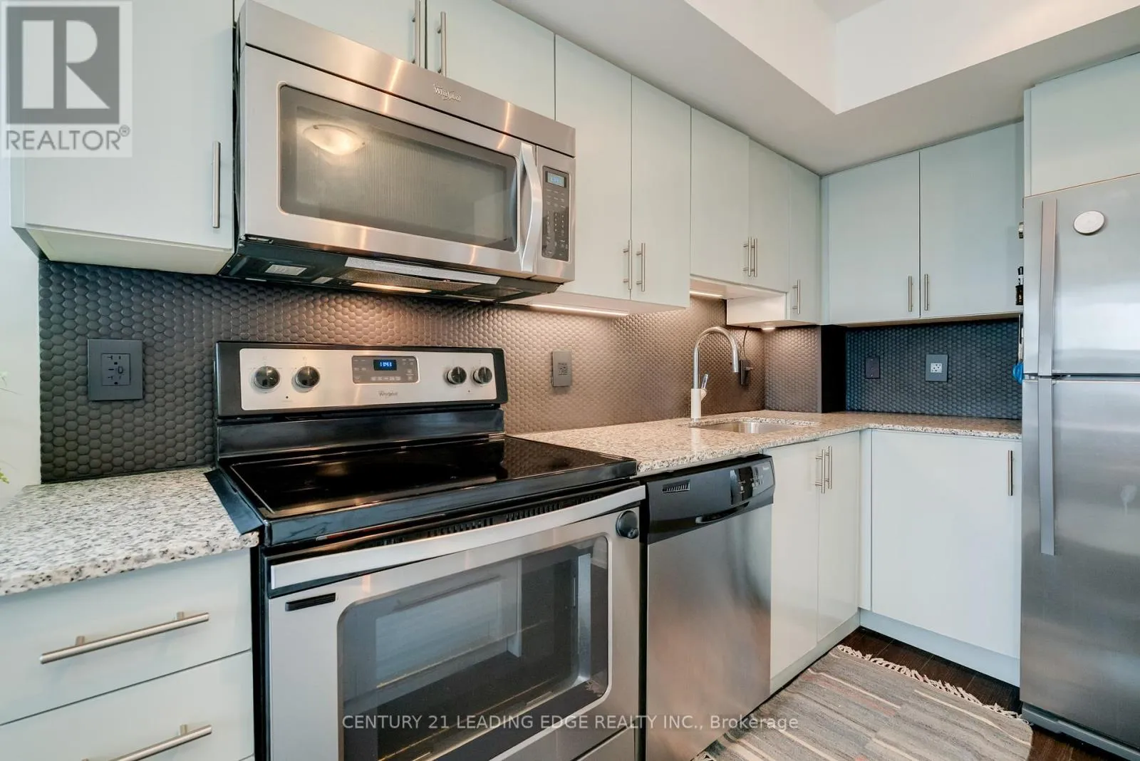 Danforth Ave & Warden Ave Look no further because this is THE ONE! Welcome home to the Terrace on Danforth. This south west facing corner suite has 2 bedrooms and views for days. With a neighbour on only one side and no unit above, you'll have tranquility as you enjoy the sunsets across the lake and the trees of Birchcliff.The Terrace Condo is located directly at the corner of Warden and Danforth Ave making it a short trip to 3 different subway stations as well as the Main Street GO station. A bus stop directly outside the front door makes taking the 20 bus to a nearby subway station a breeze or jump on the 300B Bloor-Danforth Blue line night bus which arrives every 15 minutes. Don't take transit? No problem, you can park in your owned, underground parking space. This well-maintained and clean building also offers free visitor parking, a large party room and a bright and well-appointed exercise room. A package locker in the mail room keeps your deliveries safe so you never have to worry about arranging for a delivery. Being on the 6th floor, you'll enjoy the light from the windows of the north facing communal terrace. Access the terrace year-round but enjoy the patio furniture, gardens and BBQ in the warm months. This building has been well-managed, keeping the maintenance fee lower than many of the nearby condo buildings, even most of the newer buildings in the area. But at only about 10 years old, this building is still fresh and new. The many upgrades in the suite include custom island and sideboard with butcher block tops in kitchen, stylish backsplash with matching plugs and covers, new pull-down faucet, under-mount lighting. Updated vanity, cabinet and lighting in bathroom, upgraded Miele washing machine. Mirrored front closet door and bamboo slat door in 2nd bedroom.2nd bedroom is currently being used as a living room and living room being used as combined kitchen/dining room. (id:27476)
