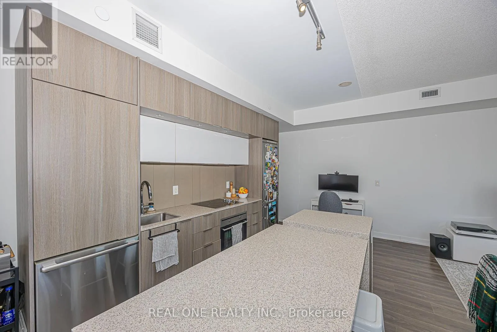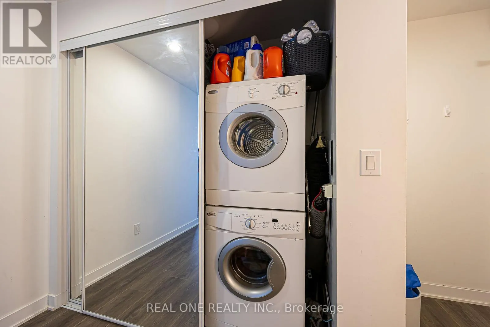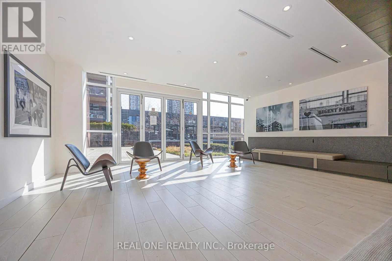 Dundas St E/Sumach St Welcome to this Beautiful Sun Filled Corner Unit on the 12th floor at One Park Place North. The one-bedroom unit comes with 692 Sqft + 59 Sqft Balcony = 751Sqft. The south west facing spacious living and dining area and the large one bedroom with wrap around Floor to ceiling windows are Flooded with natural light and stunning day and night City Views. Functional open concept layout featuring a modern kitchen with island, granite countertops, stainless steel appliances. The living and dining areas connect seamlessly, creating a comfortable space for everyday living and entertaining. Spacious bedroom, full bathroom, and a welcoming foyer with a large storage and coat closet add to the suite's practicality. The unit has been Well maintained and move in ready with in suite stacked washer and dryer, all existing curtains and light fixtures, one underground parking space and one locker are also included. At One Park Place North, residents also enjoy exceptional amenities including a large fitness centre, yoga and Pilates studio, squash courts, half court basketball gym, party room, billiards room, media room, rooftop terrace with BBQ areas and gardening plots, guest suites, visitor parking, bike storage, 24-hour concierge, and security. Prime Regent Park location steps to parks, cafes, restaurants, community spaces, groceries, TTC, DVP and easy access to downtown. Ideal opportunity for families and investors, or anyone seeking a bright, efficient condo in a vibrant and connected neighbourhood. (id:27476)