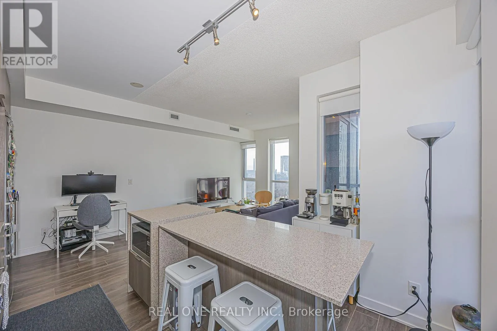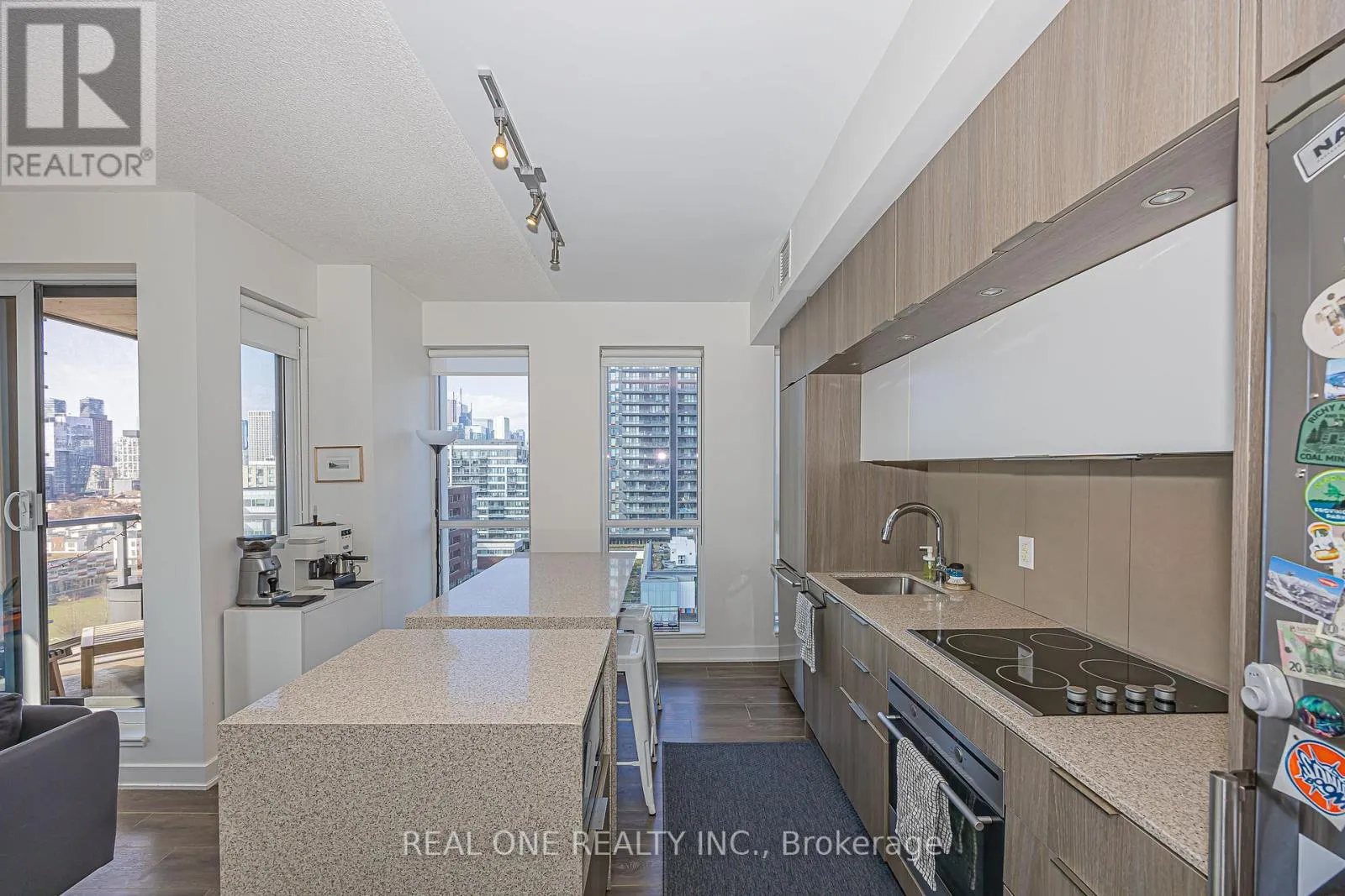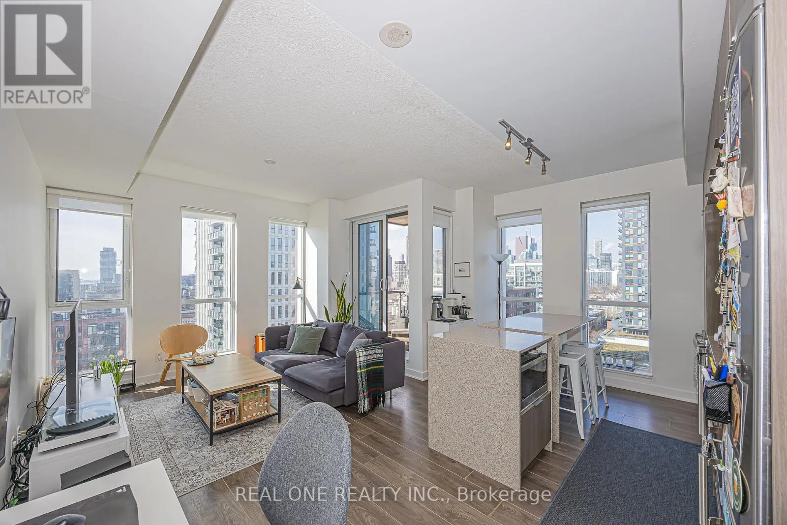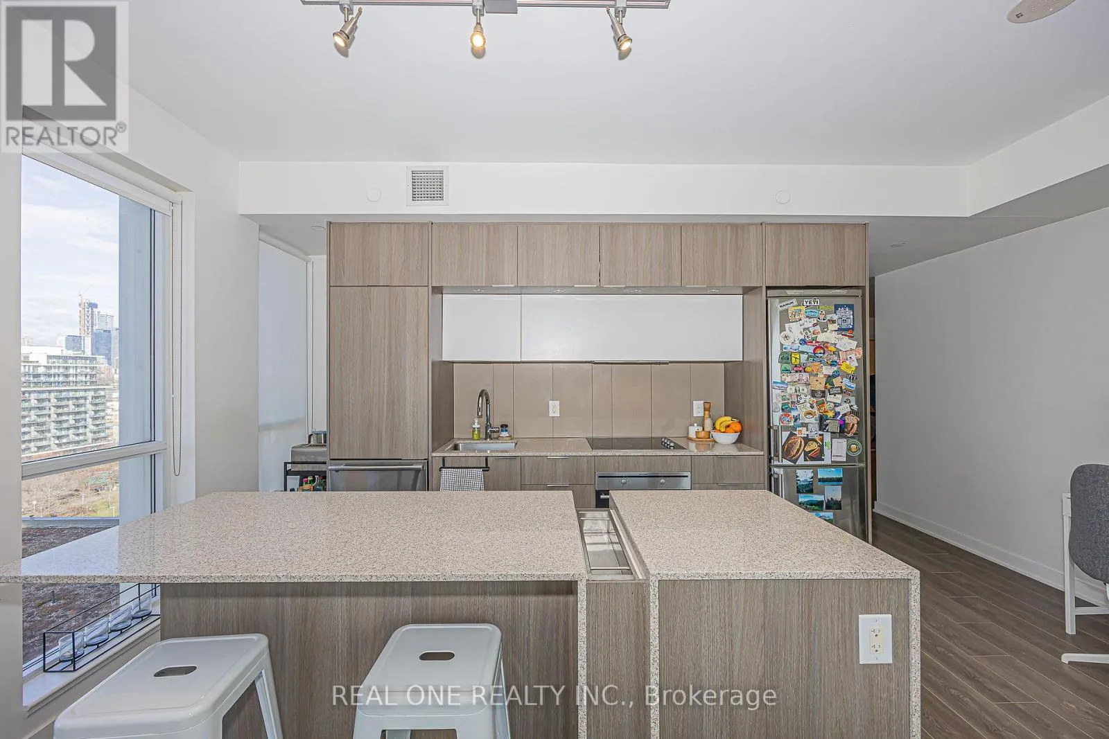 Dundas St E/Sumach St Welcome to this Beautiful Sun Filled Corner Unit on the 12th floor at One Park Place North. The one-bedroom unit comes with 692 Sqft + 59 Sqft Balcony = 751Sqft. The south west facing spacious living and dining area and the large one bedroom with wrap around Floor to ceiling windows are Flooded with natural light and stunning day and night City Views. Functional open concept layout featuring a modern kitchen with island, granite countertops, stainless steel appliances. The living and dining areas connect seamlessly, creating a comfortable space for everyday living and entertaining. Spacious bedroom, full bathroom, and a welcoming foyer with a large storage and coat closet add to the suite's practicality. The unit has been Well maintained and move in ready with in suite stacked washer and dryer, all existing curtains and light fixtures, one underground parking space and one locker are also included. At One Park Place North, residents also enjoy exceptional amenities including a large fitness centre, yoga and Pilates studio, squash courts, half court basketball gym, party room, billiards room, media room, rooftop terrace with BBQ areas and gardening plots, guest suites, visitor parking, bike storage, 24-hour concierge, and security. Prime Regent Park location steps to parks, cafes, restaurants, community spaces, groceries, TTC, DVP and easy access to downtown. Ideal opportunity for families and investors, or anyone seeking a bright, efficient condo in a vibrant and connected neighbourhood. (id:27476)
