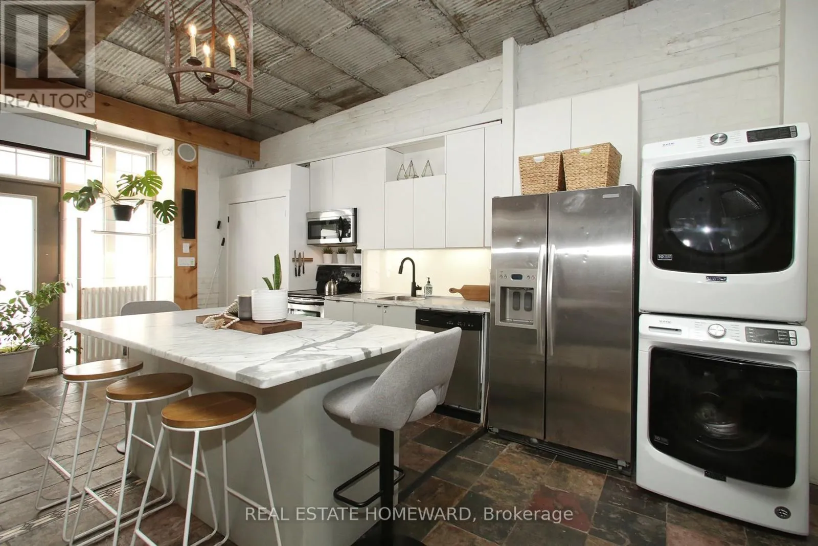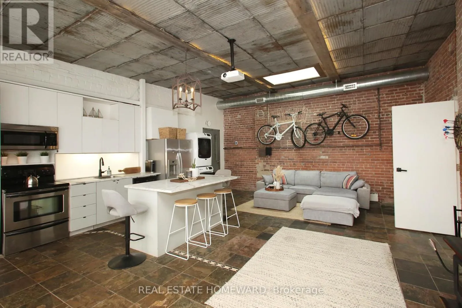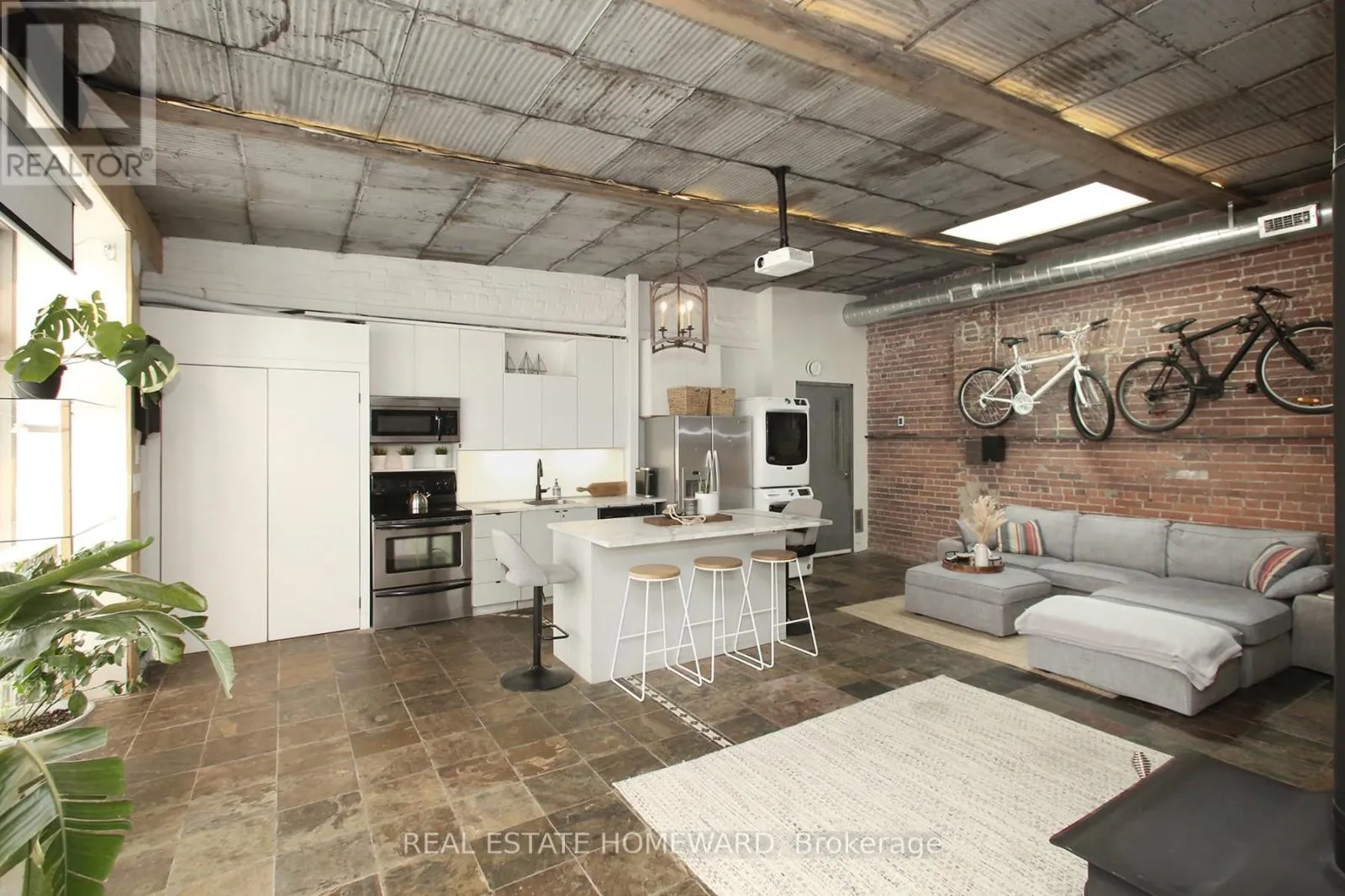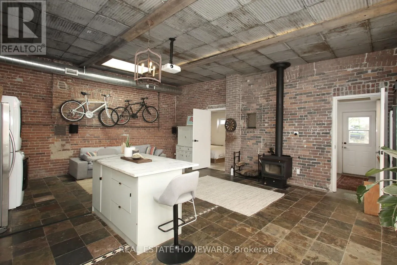 Cross Streets: Dundas and Carlaw. ** Directions: Corner of Boston at Dundas St. East. The Bicycle Loft | Leslieville's Most Unique Fully Furnished Rental. Availalbe for short and long term leases! Step into one of Leslieville's most distinctive living spaces-The Bicycle Loft at 147 Boston Avenue-where industrial character meets curated, turnkey comfort. This fully furnished loft-style bungalow offers a rare blend of design, functionality, and lifestyle in one of Toronto's most sought-after east-end neighbourhoods. Defined by its soaring ceilings, exposed brick, and repurposed architectural details, this home delivers authentic loft living with a warm, residential feel. Vintage tin ceilings, exposed beams, and a skylight create a light-filled, airy atmosphere, while thoughtfully designed interiors maximize both space and usability. The open-concept layout seamlessly connects living, dining, and workspace areas-ideal for professionals, creatives, or anyone seeking an inspiring home environment. A dedicated office space, custom finishes, and a cozy fireplace elevate everyday living, while modern conveniences ensure total comfort. Step outside to your private rooftop retreat, offering a rare extension of living space perfect for entertaining or unwinding. Located in the heart of Leslieville, just steps to Dundas & Carlaw, you're surrounded by boutique shops, cafés, restaurants, and transit-offering the perfect balance of neighbourhood charm and urban convenience. Features Include: Fully furnished, turnkey living, In-suite laundry, 1 parking space. Included: All Utilities (Heat, A/C, Hydro, Water & High-Speed Internet). A rare opportunity to live in a true hard-loft-inspired space with bungalow ease-this is Leslieville living at its most unique. (id:27476)