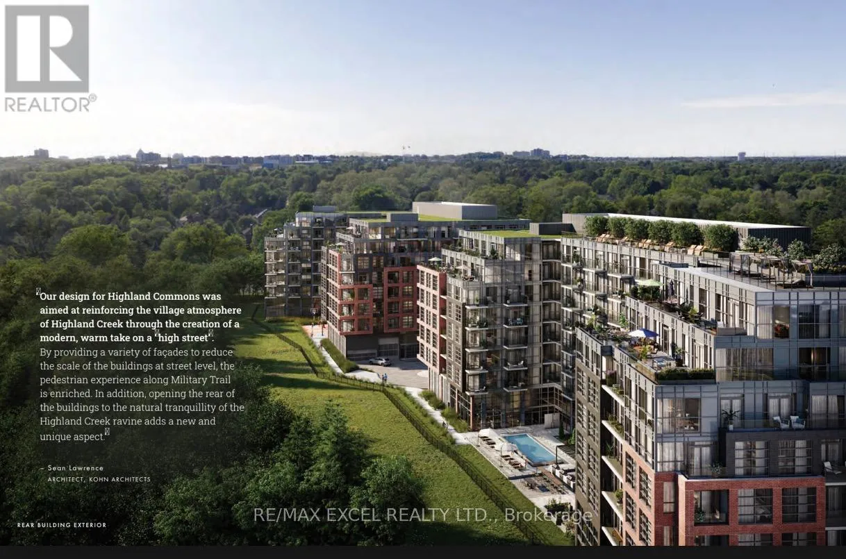 Kingston Rd and Military Trail Welcome to Highland Commons at 1635 Military Trail, where contemporary condo living meets adynamic, well-connected community surrounded by natural beauty. This stylish two-bedroom,two-bathroom residence, featuring the sought-after La?Salle floorplan, offers a brightopen-concept layout designed for both comfort and functionality.The thoughtfully planned split-bedroom design provides enhanced privacy, while the modernkitchen showcases premium finishes, an integrated dining area, and custom blinds throughout.The spacious living area flows seamlessly to a private balcony, extending your living spaceoutdoors.Residents enjoy an exceptional, resort-style selection of amenities including an outdoor pool,expansive terrace, BBQ and dining areas, basketball court, life-sized chess, landscaped seatingareas, and planting gardens. Indoor amenities include a fully equipped fitness centre withcardio equipment and free weights, yoga and meditation space, squash court, games room, partyroom, and dedicated co-working areas.Ideally located near University of Toronto Scarborough and Centennial College's MorningsideCampus, with easy access to shopping, dining, green spaces, and nearby trails. Commuting iseffortless with Highway?401 minutes away, TTC routes along Military Trail, and convenientaccess to Rouge Hill GO Station, connecting to downtown Toronto in under an hour. ScarboroughTown Centre, with over 250 shops, restaurants, and entertainment options, is just a short driveaway.A rare opportunity to enjoy modern living, exceptional amenities, and seamless connectivity inone of Scarborough's most desirable communities. (id:27476)