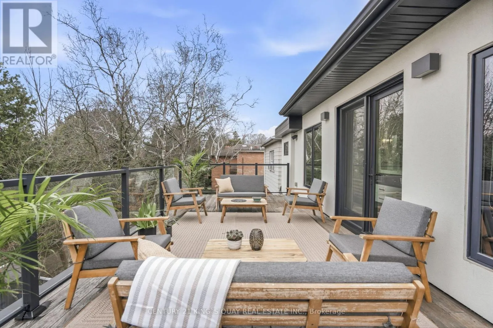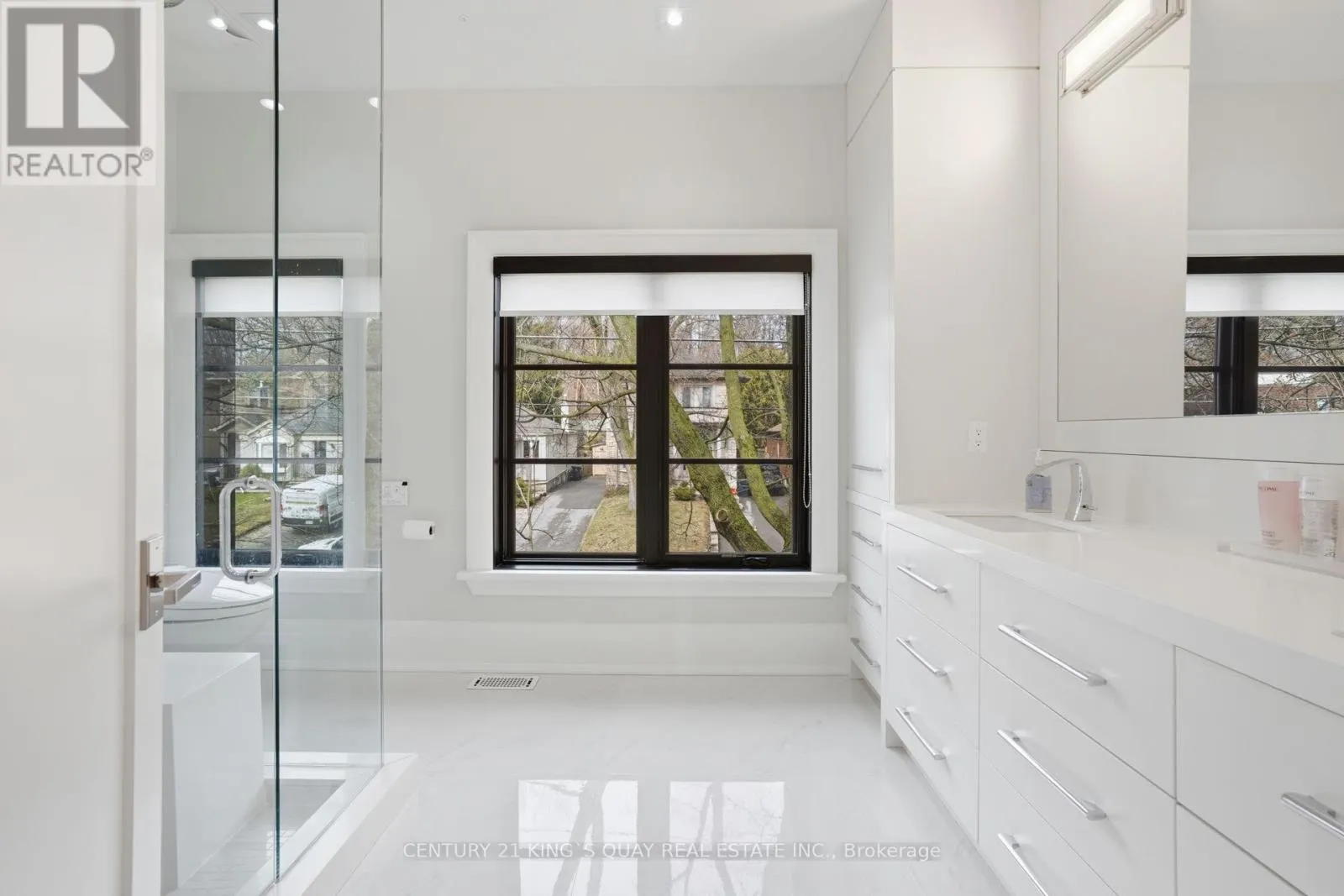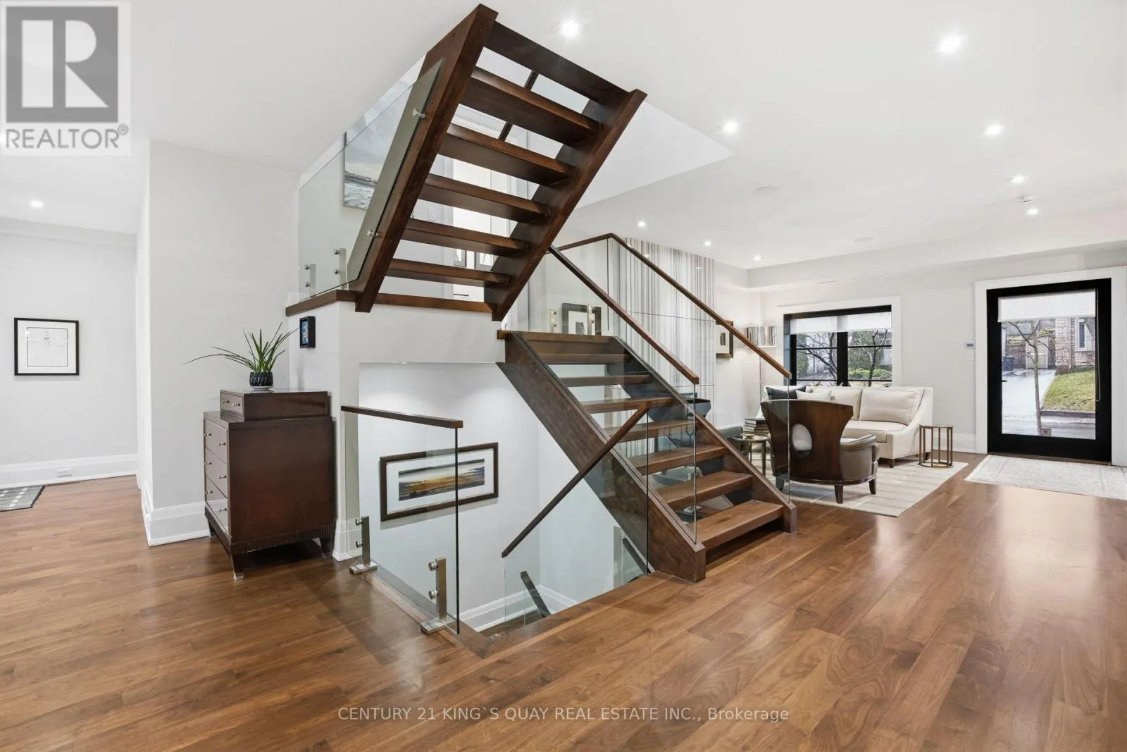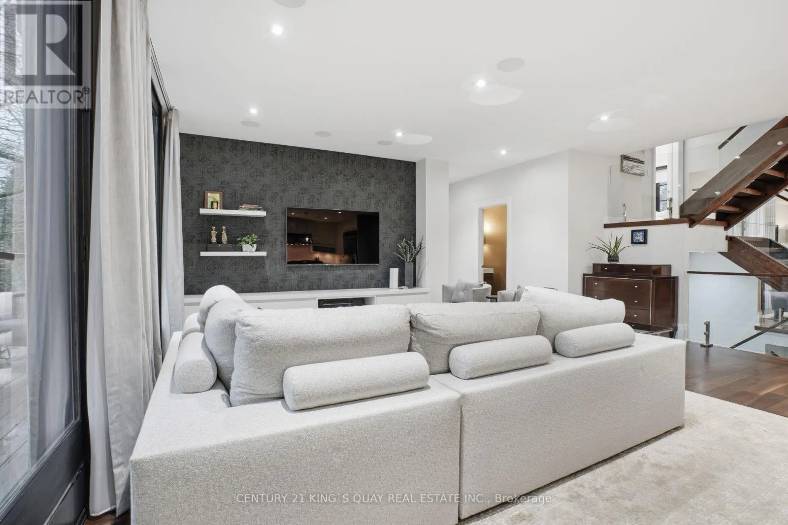 Bayview / Nesbitt Welcome to this beautifully reimagined family home in the exclusive enclave of Governor's Bridge, where timeless design meets modern luxury. Thoughtfully redesigned by a Toronto-based interior design firm, this exceptional residence offers a rare opportunity to enjoy turnkey living in a quiet, nature-connected neighbourhood just minutes to the city. The open-concept main floor is designed for both everyday living and entertaining, featuring seamless walnut hardwood flooring, a stunning marble-clad fireplace, and a fully renovated chef's kitchen with premium appliances, custom cabinetry, and a generous island. Walk out to a new composite deck with glass railings and gas line, perfect for effortless indoor-outdoor living. This home offers 3+1 spacious bedrooms and 4 beautifully appointed bathrooms, including a serene primary retreat with a spa-inspired ensuite featuring heated floors, a rain shower, and custom finishes. The second floor also boasts an expansive private terrace, w/speaker system, creating a unique outdoor escape rarely found in the area. The bright walkout lower level provides incredible flexibility with an additional bedroom, recreation space, and direct access to the private backyard. Extensively renovated with quality craftsmanship throughout, including updated systems, premium windows and doors, integrated lighting, and smart home features, this home is truly move-in ready. Ideally located steps to ravine trails and connected to Rosedale via the Governor's Bridge, with easy access to Bayview Avenue, top schools, parks, shops, and downtown via the Bayview Extension. A rare offering that combines lifestyle, location, and design in one exceptional home. (id:27476)