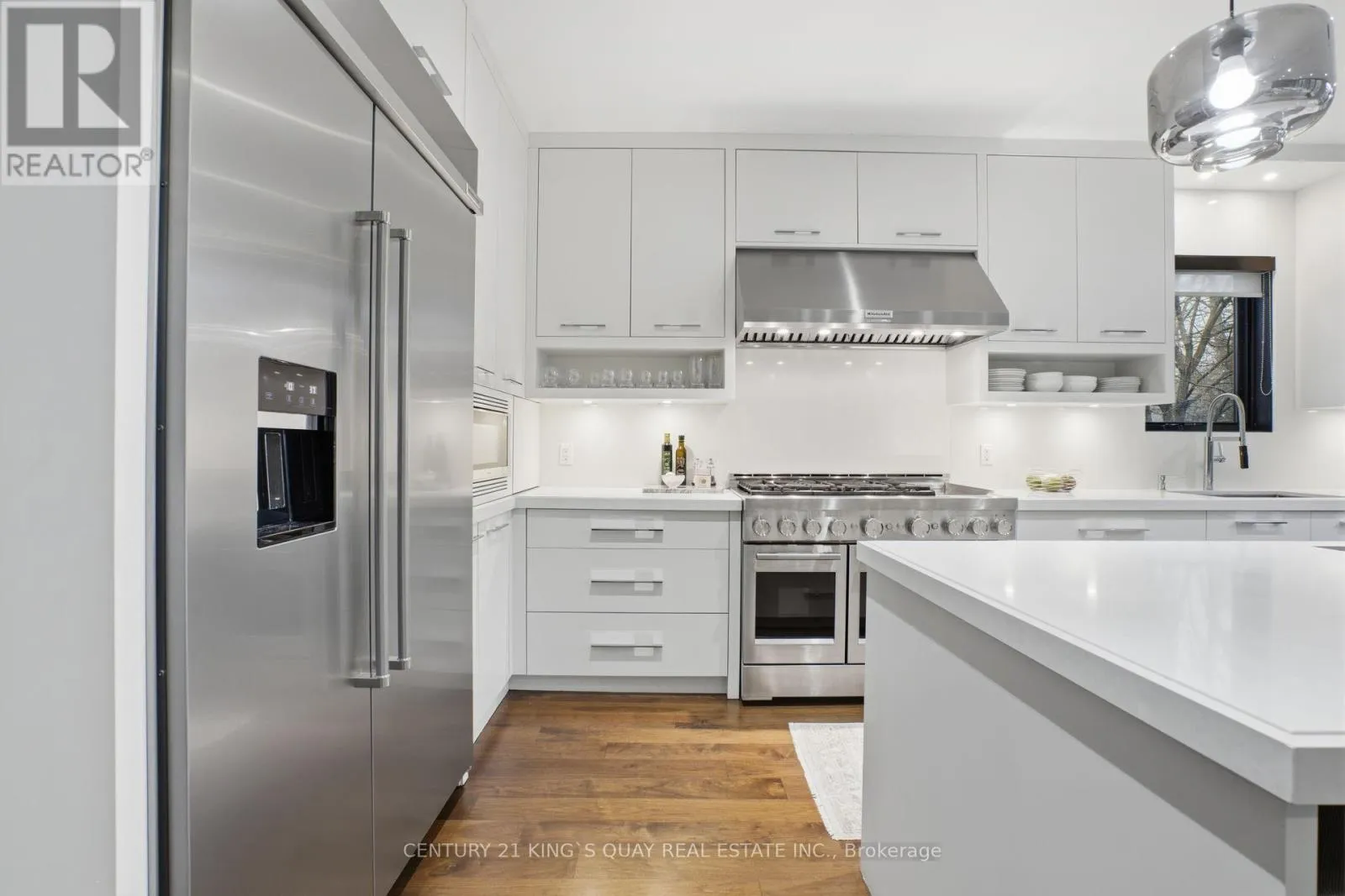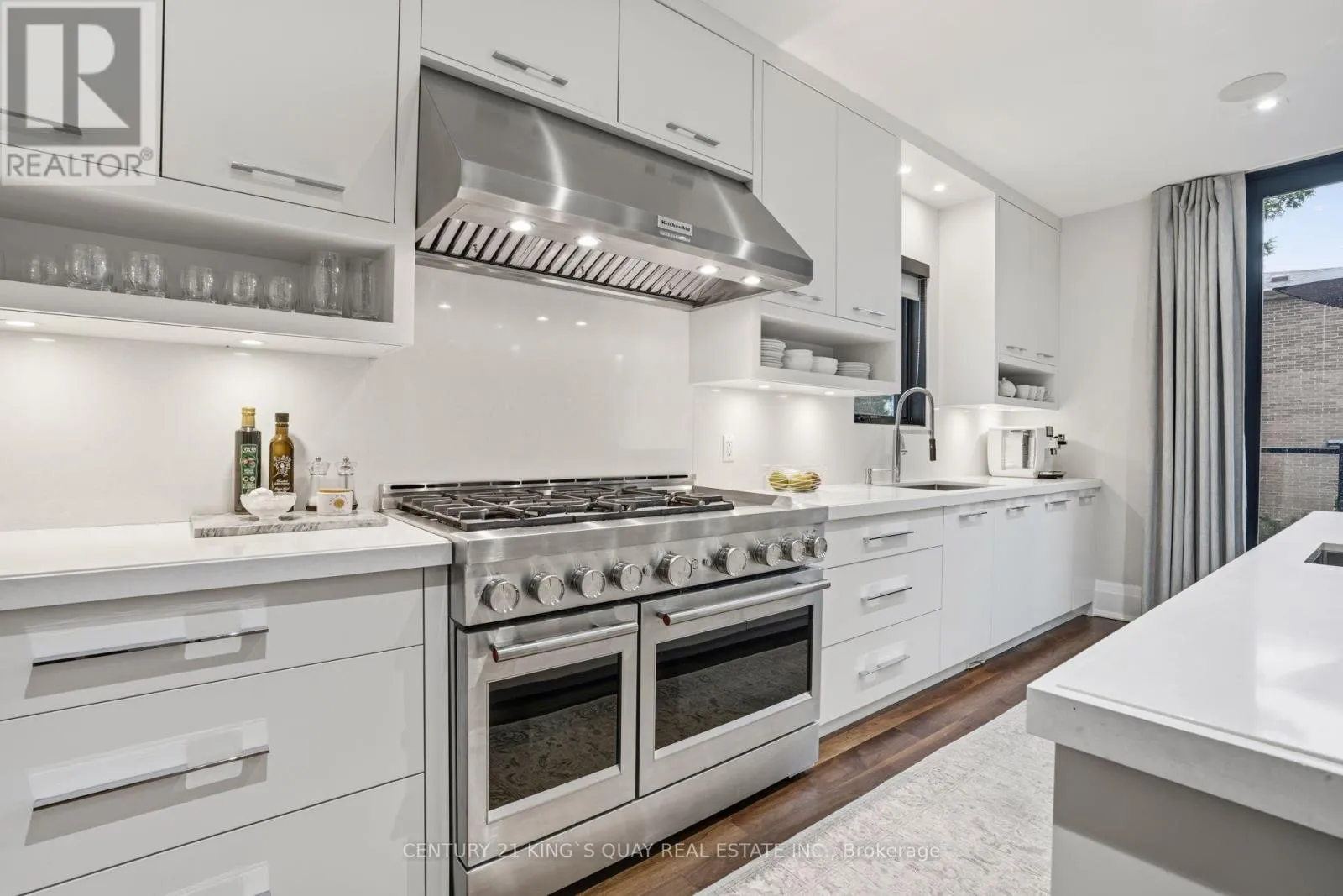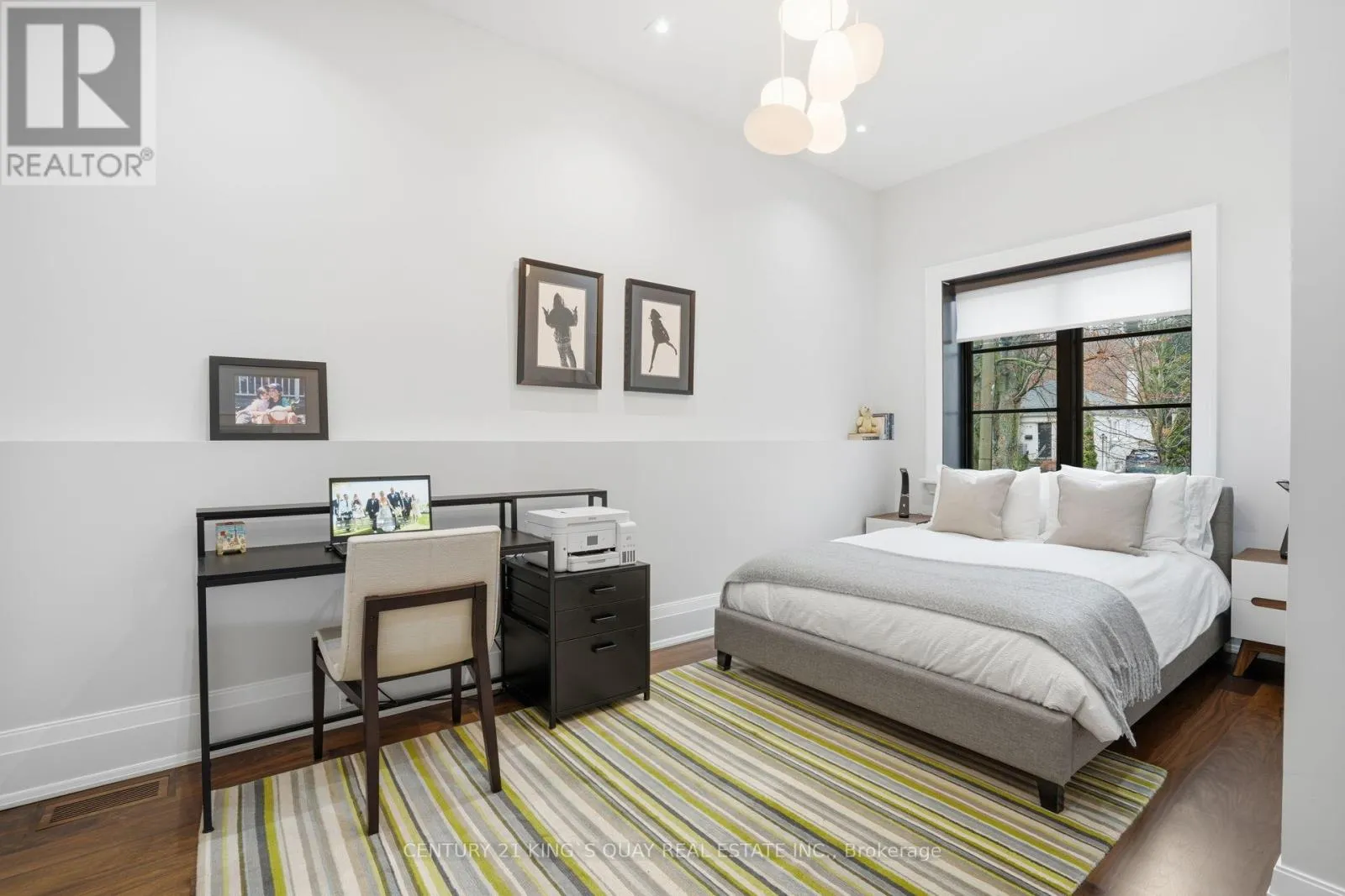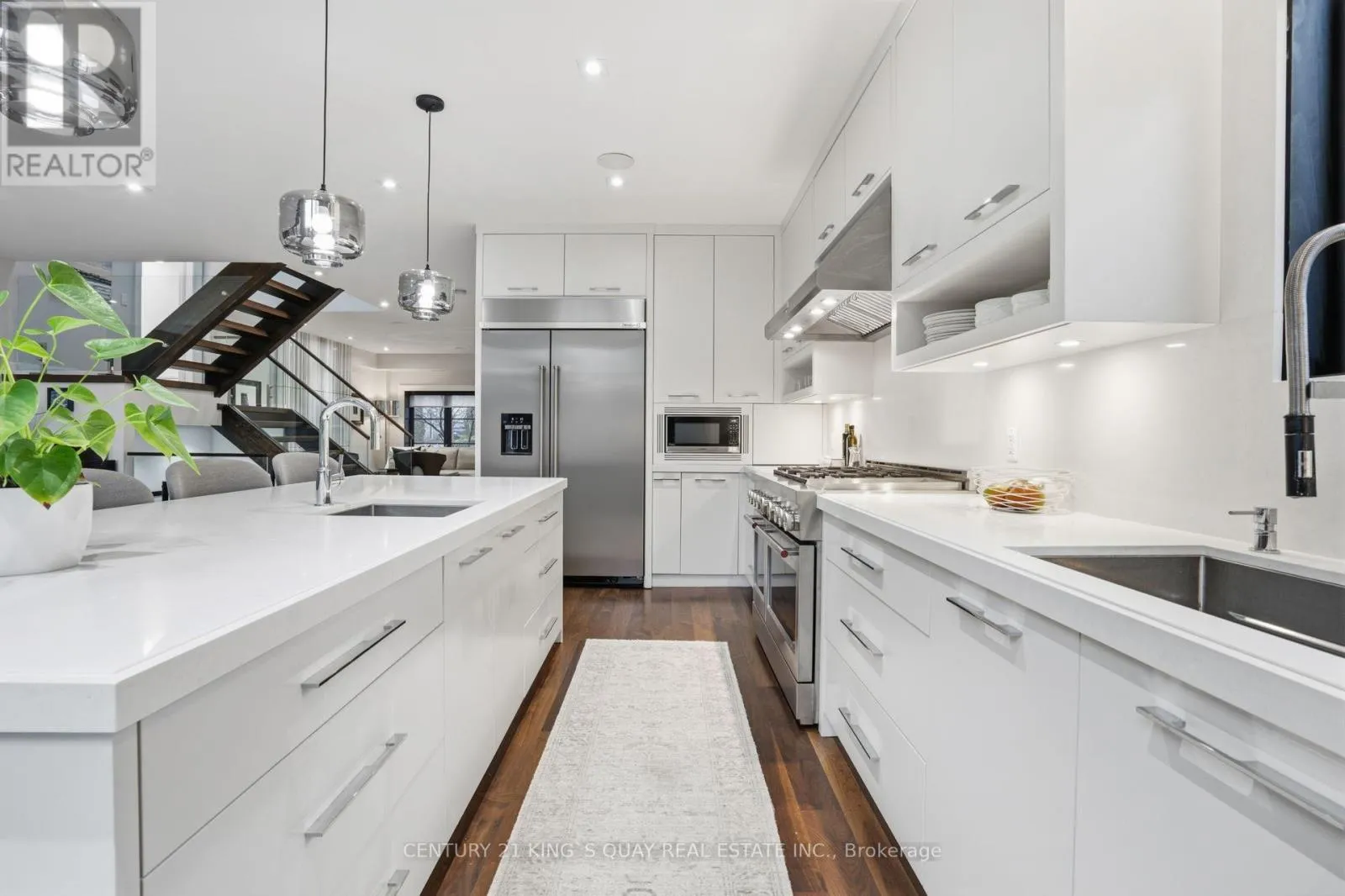 Bayview / Nesbitt Welcome to this beautifully reimagined family home in the exclusive enclave of Governor's Bridge, where timeless design meets modern luxury. Thoughtfully redesigned by a Toronto-based interior design firm, this exceptional residence offers a rare opportunity to enjoy turnkey living in a quiet, nature-connected neighbourhood just minutes to the city. The open-concept main floor is designed for both everyday living and entertaining, featuring seamless walnut hardwood flooring, a stunning marble-clad fireplace, and a fully renovated chef's kitchen with premium appliances, custom cabinetry, and a generous island. Walk out to a new composite deck with glass railings and gas line, perfect for effortless indoor-outdoor living. This home offers 3+1 spacious bedrooms and 4 beautifully appointed bathrooms, including a serene primary retreat with a spa-inspired ensuite featuring heated floors, a rain shower, and custom finishes. The second floor also boasts an expansive private terrace, w/speaker system, creating a unique outdoor escape rarely found in the area. The bright walkout lower level provides incredible flexibility with an additional bedroom, recreation space, and direct access to the private backyard. Extensively renovated with quality craftsmanship throughout, including updated systems, premium windows and doors, integrated lighting, and smart home features, this home is truly move-in ready. Ideally located steps to ravine trails and connected to Rosedale via the Governor's Bridge, with easy access to Bayview Avenue, top schools, parks, shops, and downtown via the Bayview Extension. A rare offering that combines lifestyle, location, and design in one exceptional home. (id:27476)