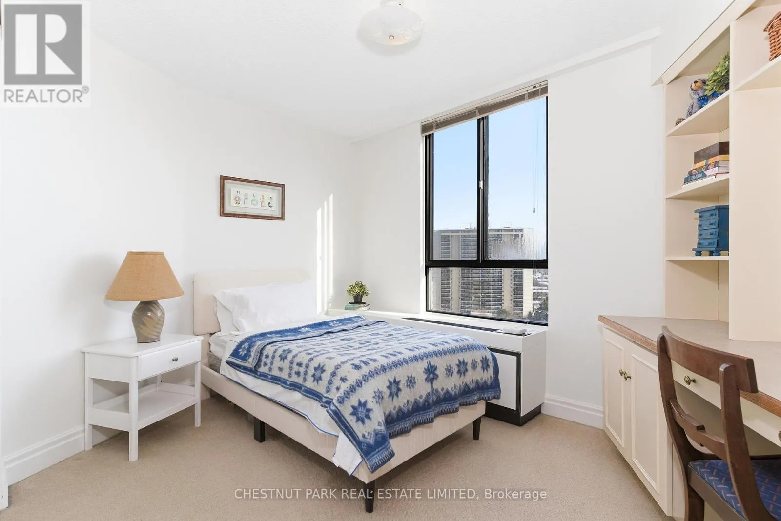 Cross Streets: Burnhamthorpe & Mill. ** Directions: South on Mill Road from Burnhamthorpe. Penthouse 21 - The Masters. This spacious, light filled penthouse suite has it all! 3 bedrooms 2 baths, kitchen with breakfast bar, en-suite laundry, plenty of storage, 3 balconies, and parking for 2 cars, all within an award-winning building offering superior amenities. This split-design suite has the primary bedroom located in a designated wing that provides privacy and features an ensuite bathroom plus an oversized walk-in closet. The family bedrooms and second bathroom are located on the other side of the large living area, with a built-in desk unit in the middle room, perfect for schoolwork or a home office. The Masters is a fabulous resort-style community set on 11 acres of beautifully landscaped grounds, with walking paths and a Japanese garden. It offers plenty of amenities: indoor and outdoor saltwater pools, sauna, clubhouse and games room, playground, a fully equipped gym, squash, basketball and tennis courts, woodworking room, craft room, and car wash area. A complete refurbishment and upgrade of the common areas is well underway! This large penthouse suite offers outstanding value, comfort and lifestyle - a rare opportunity to own a piece of paradise in one of Etobicoke's most desirable locations. (id:27476)