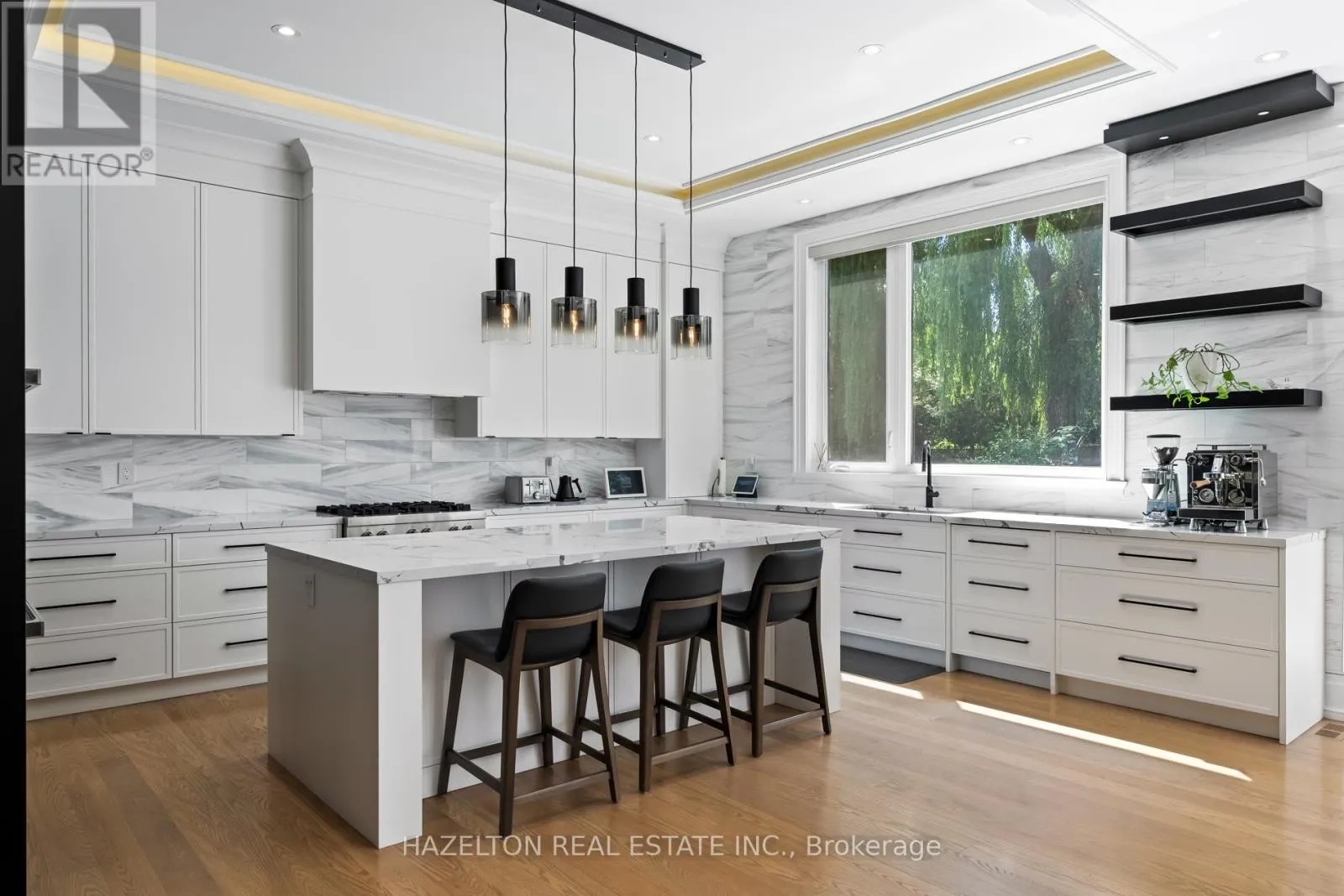 Elgin Rd. & Yorkview Drive This is the one you have been waiting for, this superb modern new build is absolute top quality, luxury throughout, nothing like your average spec build, it was custom crafted for the owners, designed by Richard Wengle, this modern gem is the pinnacle of design and quality. Boasting over 6,100 sq.ft of high functioning space, great Feng Shui, this home strikes the perfect balance and harmony, fostering positive energy, peace and prosperity. This flawless home is perfectly situated in prime Willowdale West, close to all the wonderful shops and restaurants along Yonge St, Subway, & Hwy 401.The main floor is everything you have been looking for, a generous foyer, cozy living room with an adjacent formal dining room, a dream main floor office, Butler's pantry & convenient mud room with an abundance of storage, topped off with the enormous gourmet kitchen with breakfast nook and oversized family room overlooking the rear gardens.The 2nd floor delivers 3 large bedrooms each with ensuite baths, convenient laundry, and the sumptuous primary suite with a dream walk-in closet, spa inspired ensuite bathroom with oversized shower and large soaker tub, gas fireplace and second discreet office space, ideal for a private sanctuary away from the living area, or for the family when both spouses need a home office.The lower level has it all, large bedroom with ensuite bath, dedicated home gym, custom wine cellar, oversized recreation area perfect for home theatre with wet bar, an abundance of storage, 2nd laundry area, (appliances not included), all drenched in natural light due to the large walk out and southern exposure. (id:27476)