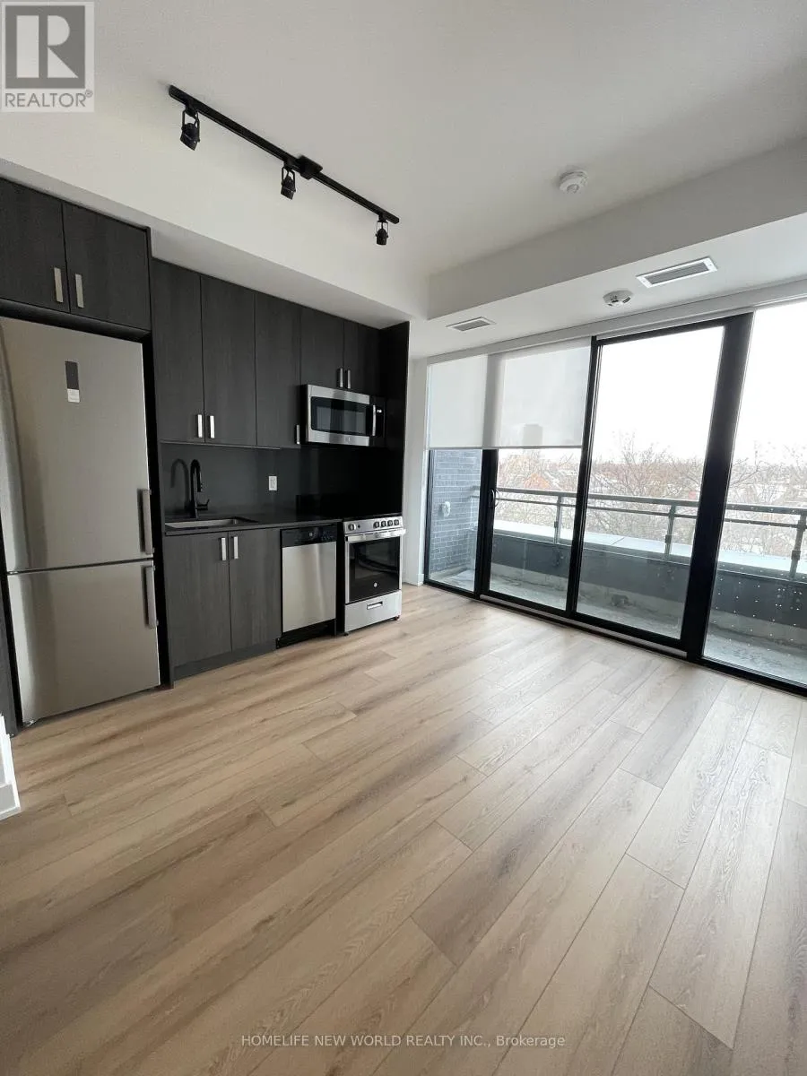 Bloor St W & Dovercourt Rd Welcome to Motto Condos, where modern design meets effortless urban living. This brand new, never-lived-in south-facing studio suite offers a bright and efficient layout, perfect for comfortable city living.Expansive floor-to-ceiling windows fill the space with natural sunlight throughout the day, creating a warm and inviting atmosphere. The open-concept design is complemented by wide plank flooring and a seamless flow between living, dining, and sleeping areas, maximizing both function and style.The contemporary kitchen features sleek matte cabinetry, stone countertops, a stylish tile backsplash, and a full appliance package, providing everything needed for everyday living.This pristine, never-occupied unit includes roller sunscreen shades and smart home features such as digital entry and programmable climate control for added convenience.Residents of Motto Condos enjoy premium amenities including a fitness centre, co-working spaces, and a landscaped rooftop terrace with BBQs.Ideally located in the vibrant Dovercourt-Wallace Emerson-Junction neighbourhood, just steps to transit, parks, cafes, and local dining.Perfect for professionals or students seeking a modern, move-in ready space in one of Toronto's most dynamic communities. (id:27476)