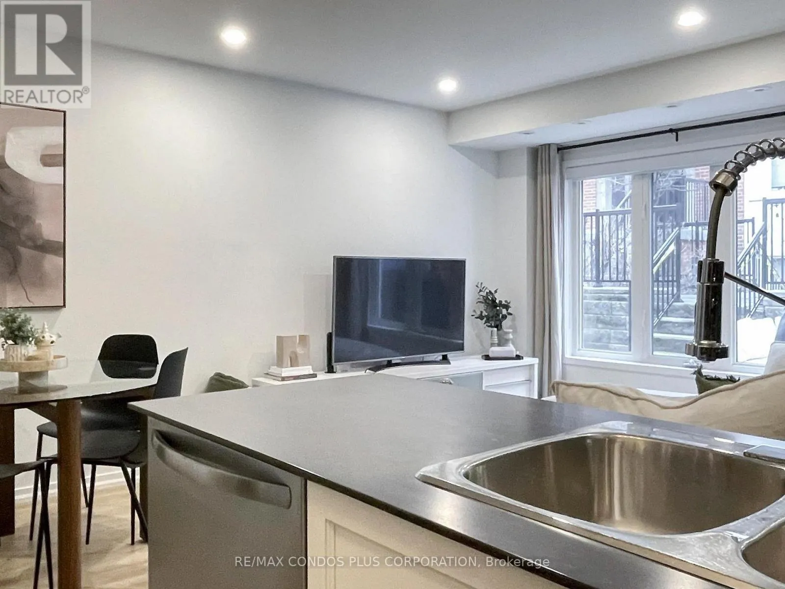 Queen St. E and Broadview Ave. A beautifully designed ground-floor condo townhouse offering 823 sf of comfortable and functional living space in Toronto's vibrant Riverdale neighbourhood. This inviting 2-bedroom, 2-bathroom residence features a bright, open-concept layout with both east and west-facing exposures filling the home with natural light. Enjoy exceptional indoor-outdoor living with a private back patio perfect for your morning coffee, as well as a charming front terrace with a gas BBQ hookup-ideal for hosting guests. The modern kitchen is appointed with stainless steel appliances, stone counters, ample storage, and large breakfast bar. The spacious primary bedroom includes a walk-in closet and is steps to your private 4-pc bath and ensuite laundry. Parking included for added convenience. Joel Weeks Park is right outside your front door, Jimmie Simpson Park is just around the corner, and Riverdale Park - with its stunning city skyline views - is only a short walk away. Queen Steet East offers easy access to transit, countless boutiques, shops, cafes, and some of the best restaurants in the city. Your just minutes from the Waterfront, DVP, and Downtown. This home offers an unbeatable combination of comfort, style, and connectivity in one of Toronto's most sought-after communities-an excellent opportunity for first-time buyers, young families, or those looking to downsize while enjoying a walkable urban lifestyle. High-speed Beanfield internet included in the maintenance fee. (id:27476)
