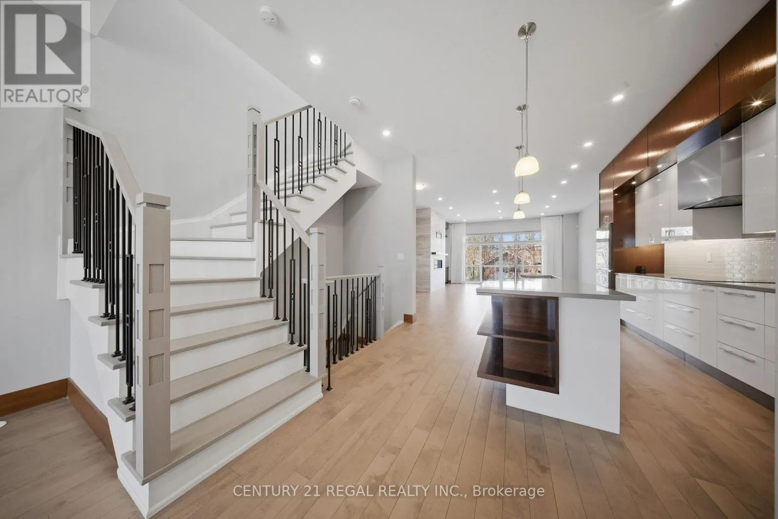 Cross Streets: Lakeshore & Kipling. ** Directions: Long Branch. Presenting 28A Twenty First Street, a striking modern home in the sought-after Long Branch community, just moments from the lake, parks, top-rated schools,transit. This 4-bedroom, 5-bathroom residence offers over 2,400 sq ft above grade, plus a fully finished lower level with nearly 12-foot ceilings and a walk-up, bringing total living space to over 3,600 sq ft across three thoughtfully designed levels.The main floor features a bright, open-concept layout with impressive ceiling heights, hardwood flooring, pot lighting, custom millwork, and floor-to-ceiling windows that fill the home with natural light. The contemporary kitchen combines style and function with sleek cabinetry, premium appliances, and a Cambria quartz island, flowing seamlessly into generous living and dining areas ideal for both entertaining and everyday living.Upstairs, spacious bedrooms offer flexibility for families, guests, or a home office. The primary suite is a private retreat with a spa-inspired ensuite, two walk-in closets, and peaceful backyard views. A second-floor laundry room and three full bathrooms add everyday convenience.The lower level is equally impressive, featuring nearly 12-foot ceilings, a powder room, versatile living space, and direct walk-up access to a professionally landscaped backyard complete with mature greenery, irrigation, and accent lighting for a private outdoor setting.Notable upgrades include solar panels with battery storage (approx. $50,000 value), custom wrought iron front door inserts, custom roller shades and Restoration Hardware drapery (approx. $25,000), Panasonic trim and designer hardware, upgraded Roxul insulation, EV charger rough-in, and central vacuum rough-in-highlighting the home's focus on efficiency and quality construction.Ideally located near the waterfront, GO Transit, Humber College, local shops, and cafes, with easy access to the city & major highways, this home offers a refined blend of modern design, efficiency, and prime west-end living. (id:27476)