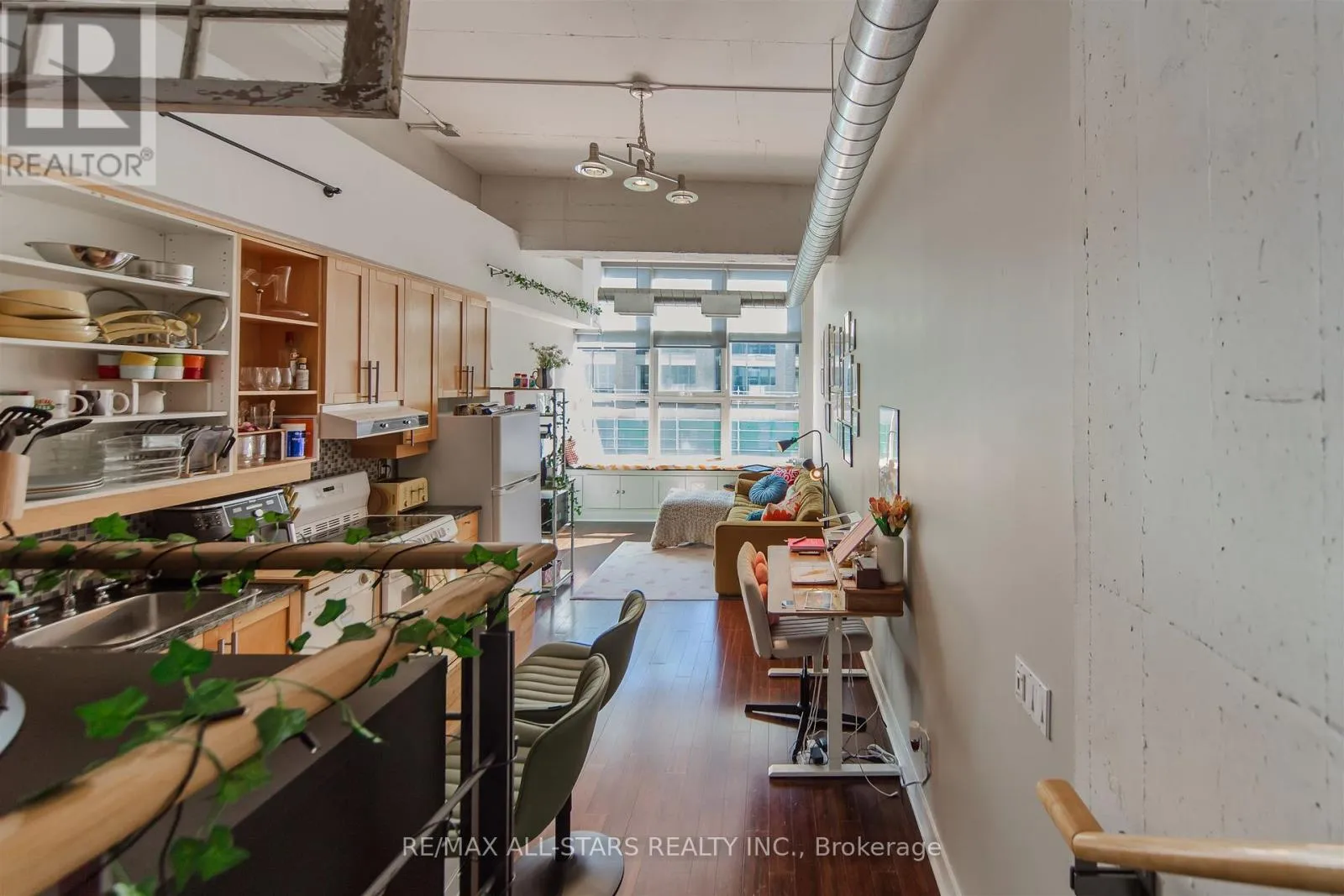 Church And Dundas Parking Included - 1-Bedroom Hard Loft In Historic Merchandise Building. This Open Concept Unit Boasts Soaring 12 Ft Concrete Ceilings, Exposed Duct Work, Hardwood Flooring, And Spacious Raised Bedroom. Building Amenities Include Rooftop Terrace With Bbqs, Indoor Pool, Basketball Court And Gym. Ultra Convenient Location - Steps To Transit, Universities, Great Restaurants, Grocery Stores, Shopping And More (id:27476)