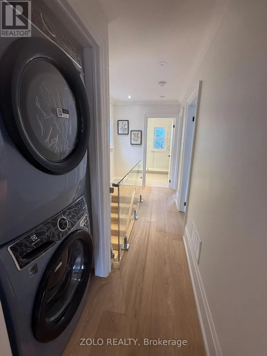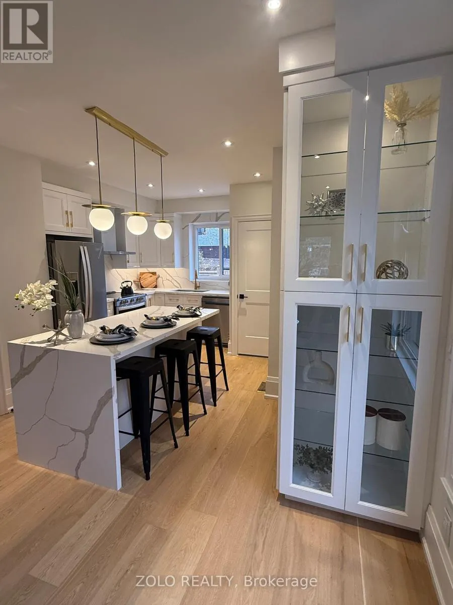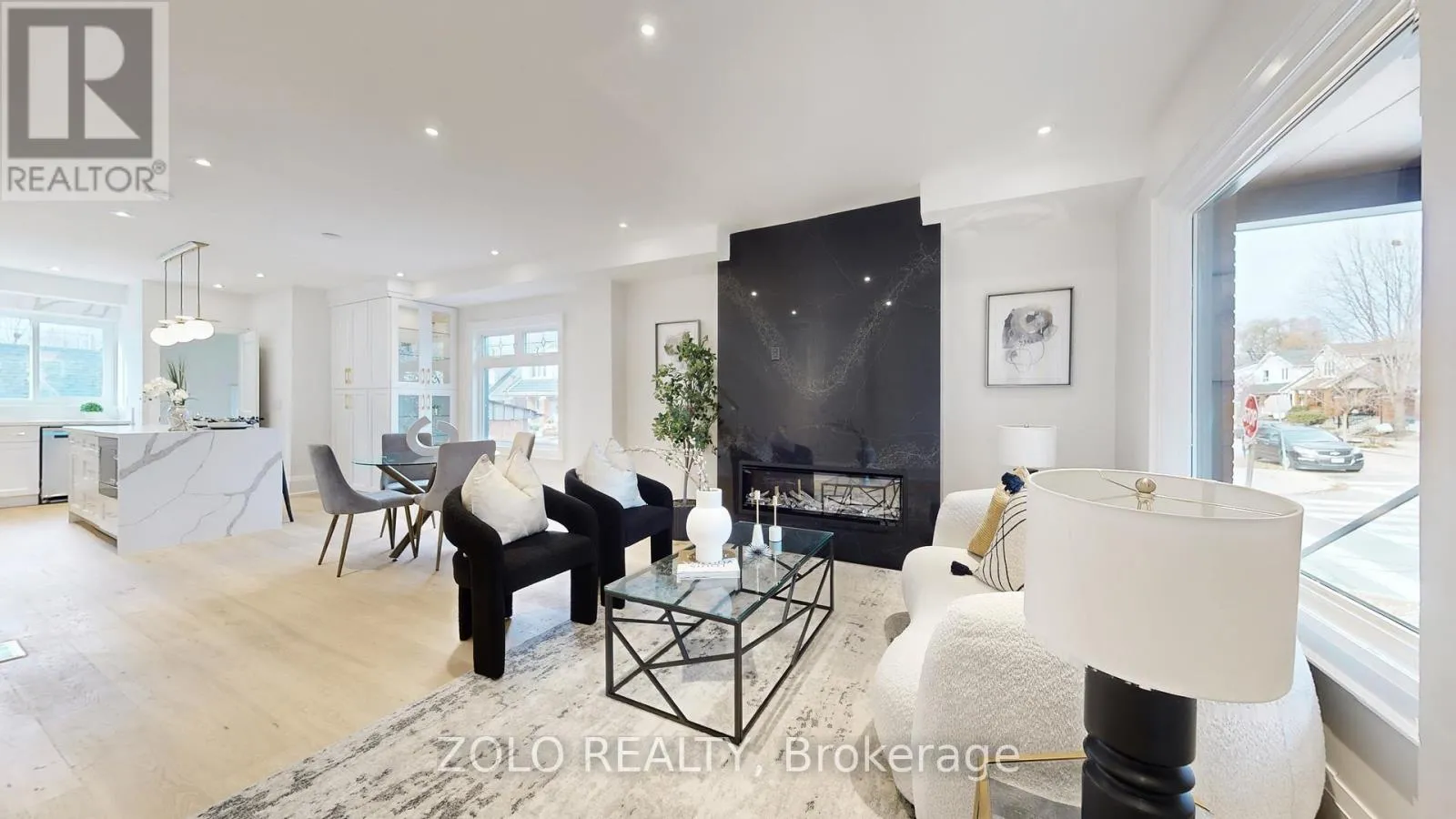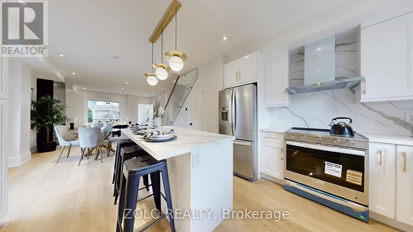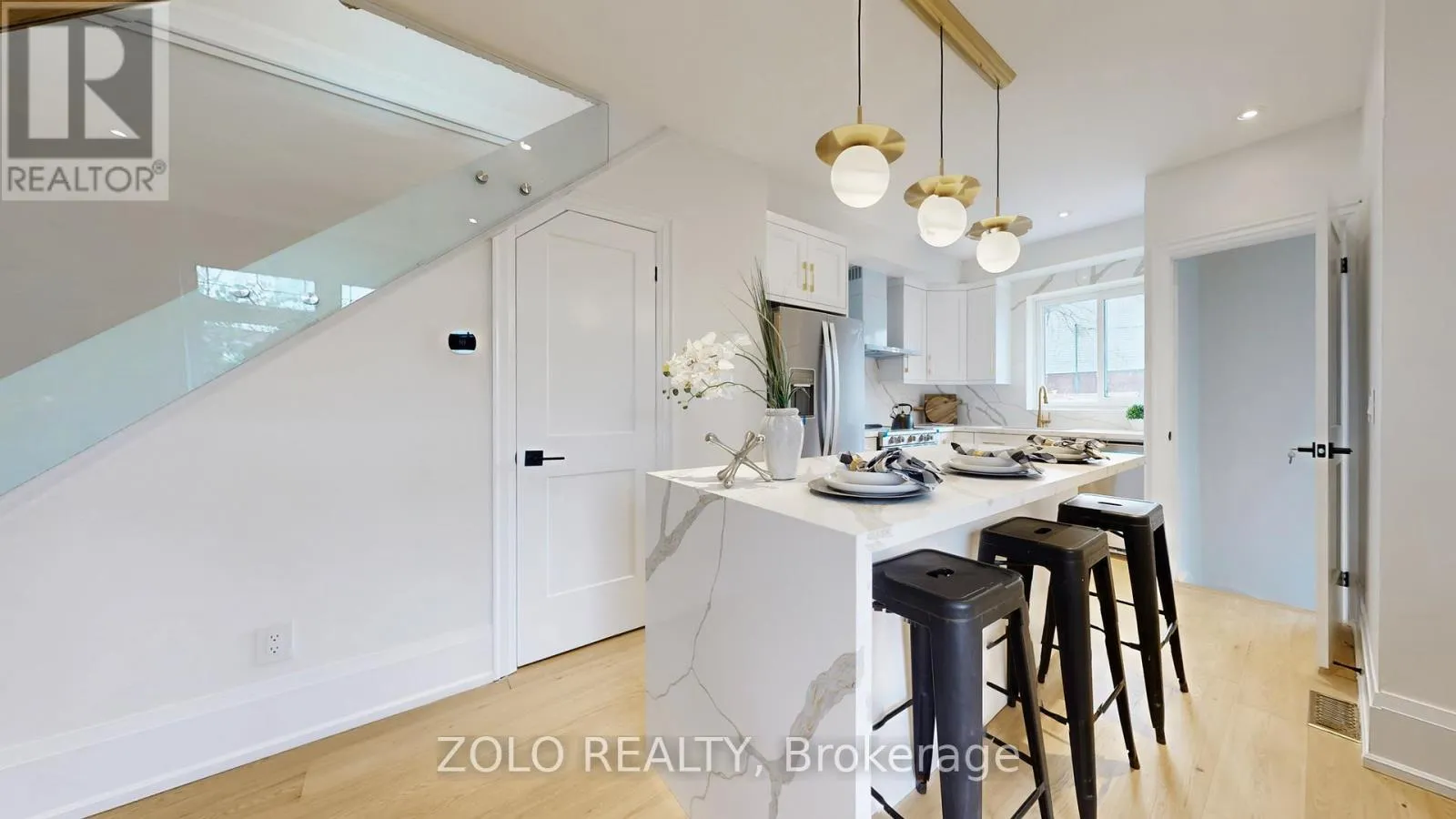 Danforth/Woodbine Beautifully updated detached home in the heart of the Danforth set on a desirable corner lot and offering a perfect blend of style comfort and modern upgrades. This 3+1 bedroom 3 bath residence features a bright well-designed layout along with a fully finished basement with separate entrance ideal for in-law or private living space. The contemporary kitchen is equipped with a sleek center island quartz countertops designer backsplash and newer appliances. Notable upgrades include a newly built detached garage with 100-amp panel (EV charger ready) upgraded 200-amp electrical service updated HVAC ducting engineered hardwood flooring on main and upper levels and pot lights throughout. Additional highlights include two sets of washer and dryer for added convenience a stylish slab-stone fireplace in the living area and a spacious approx. 300 sq. ft. deck perfect for outdoor entertaining. Situated in a family-friendly neighbourhood close to schools parks shopping and the vibrant Danforth with easy access to public transit for effortless commuting. (id:27476)