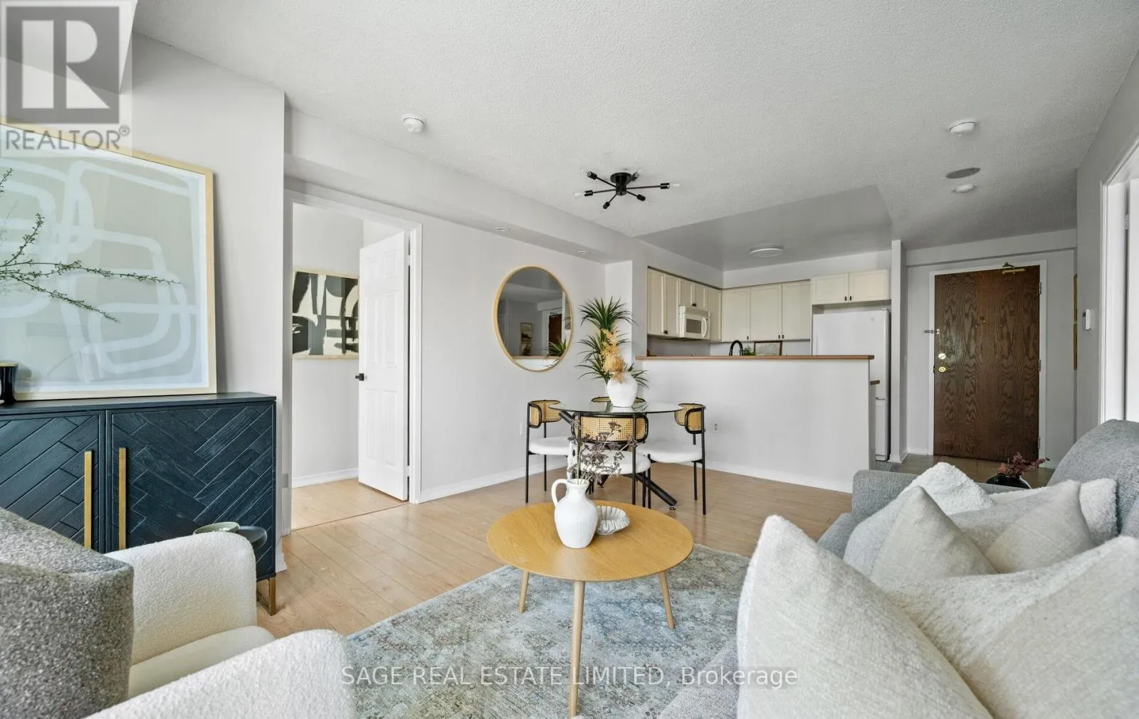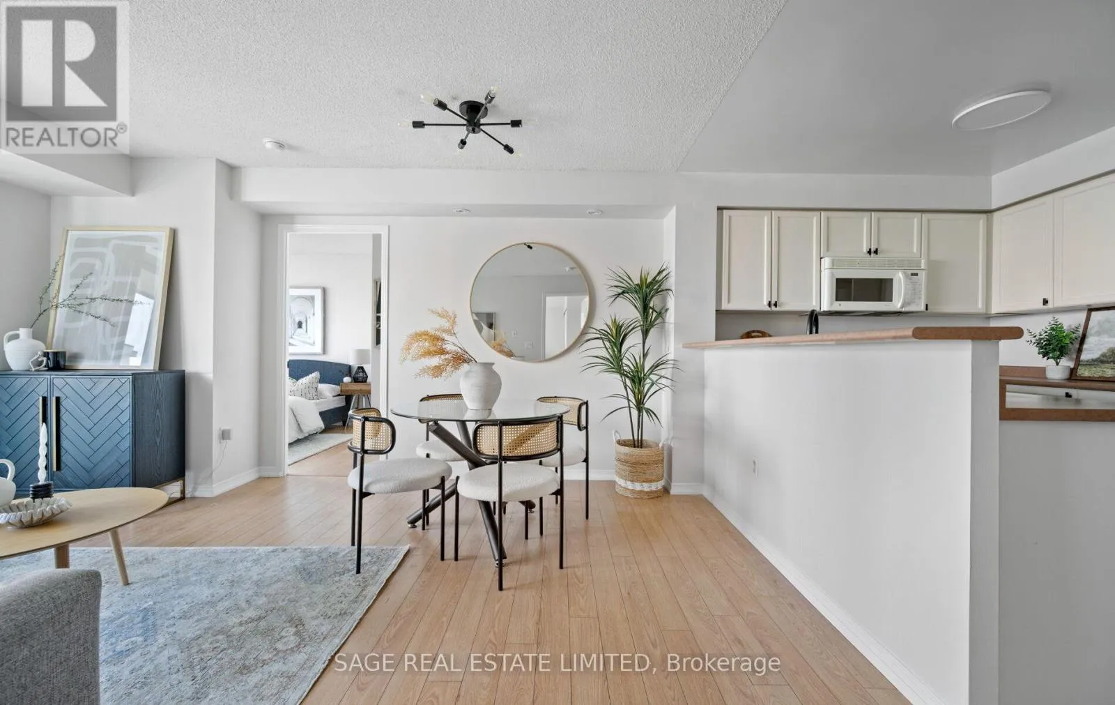 Bloor St W and Islington Ave Unlock the Power of Move-In Ready Living. Make moving easy at 15 Michael Power Place, Suite 1008. Step into this bright, south-facing corner 2-bedroom suite featuring a functional split-bedroom layout that balances openness with privacy. Freshly painted and thoughtfully upgraded with all-new light fixtures, refreshed hardware, updated appliances, and a brand-new washer and dryer, this home is truly move-in ready - no renovations, no projects, just unpack and enjoy. The tiled foyer with a convenient closet sets a polished first impression. The sun-filled living and dining area offers a versatile layout with walk-out access to a private south-facing balcony, extending your living space outdoors. The refreshed kitchen delivers generous storage, painted cabinetry with new hardware, a full suite of upgraded appliances, and an eat-in counter perfect for casual meals or entertaining. The primary bedroom welcomes natural light and features a walk-in closet to keep life organized. The second bedroom is bright and adaptable-ideal as a guest room, home office, or personal retreat-positioned for privacy thanks to the thoughtful split design. The updated bathroom showcases a new vanity, mirror, and hardware for a clean, modern finish. Complete with in-unit storage, an additional locker, one parking space, and all-inclusive maintenance fees in a well-managed building, this suite offers effortless living in a highly connected Etobicoke location close to transit, parks, shops, and dining. Turn the key and start your next chapter at 15 Michael Power Place, Suite 1008. (id:27476)