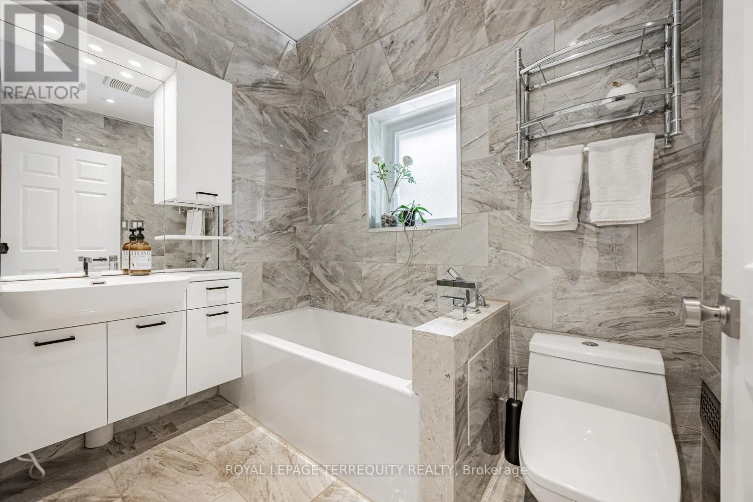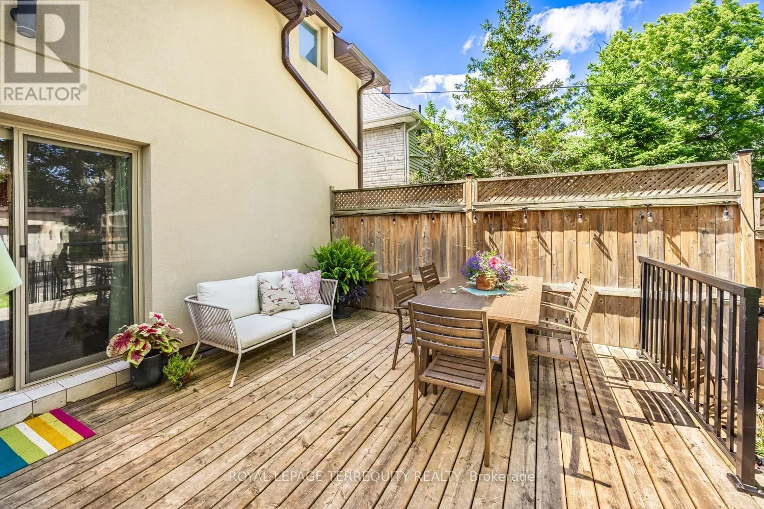 LAKE SHORE & EIGHTH STREET Impeccably renovated inside and out, this sophisticated home is ideally located south of Lakeshore, just steps to the Lake, scenic parks, vibrant shops, restaurants, and convenient public transit with quick access to major highways and only a short drive to the airport. It offers the perfect balance of lifestyle and connectivity. The bright, open-concept main floor is designed for modern living and effortless entertaining. A stunning kitchen features five stainless steel appliances, granite countertops, and sleek finishes, all complemented by pot lights throughout. An elegant oak staircase with a glass railing and rich hardwood floors adds a refined architectural touch. Walkout from the Dining room to the oversized deck with striking steel railings-an ideal space for hosting and relaxing outdoors. The home has a separate entrance to the basement offering excellent potential for a nanny suite or comfortable accommodations for overnight guests. Additional highlights include a one-and-a-half car garage with ample storage. The durable, pet-and family-friendly rear garden features artificial grass designed for everyday living. This premium turf has a fully permeable backing system that allows for excellent drainage, helping water and pet waste pass through easily and preventing puddles or odours. Soft underfoot yet highly resilient, it provides a safe, cushioned surface for children to play on while standing up to heavy use from pets. Low-maintenance and mud-free, it stays green and clean year-round-perfect for busy households seeking a practical, attractive outdoor space. Thick insulation walls and roof. Ornamental fence and raised vegetable garden. Spacious kitchen storage, pantry and counter space. Flagstone steps-Ornamental garden and cedar hedge front yard. Nestled between Mimico and Long Branch GO stations, streetcar. Close to waterfront, parks, Humber college and top rated schools. (id:27476)
