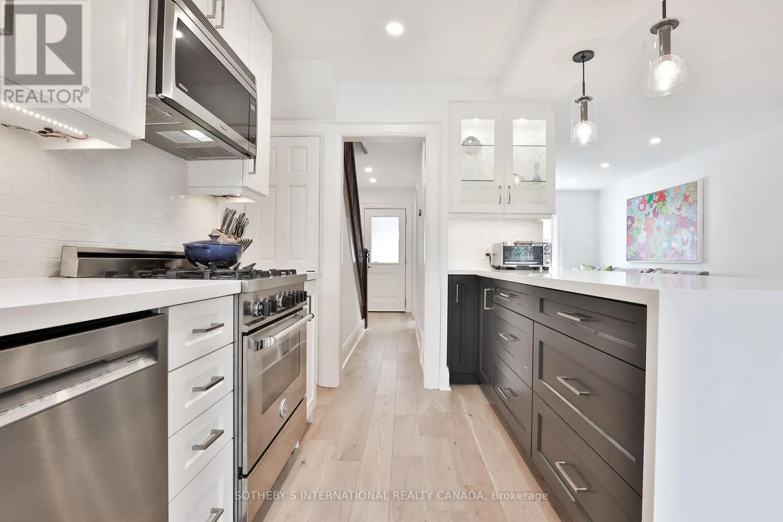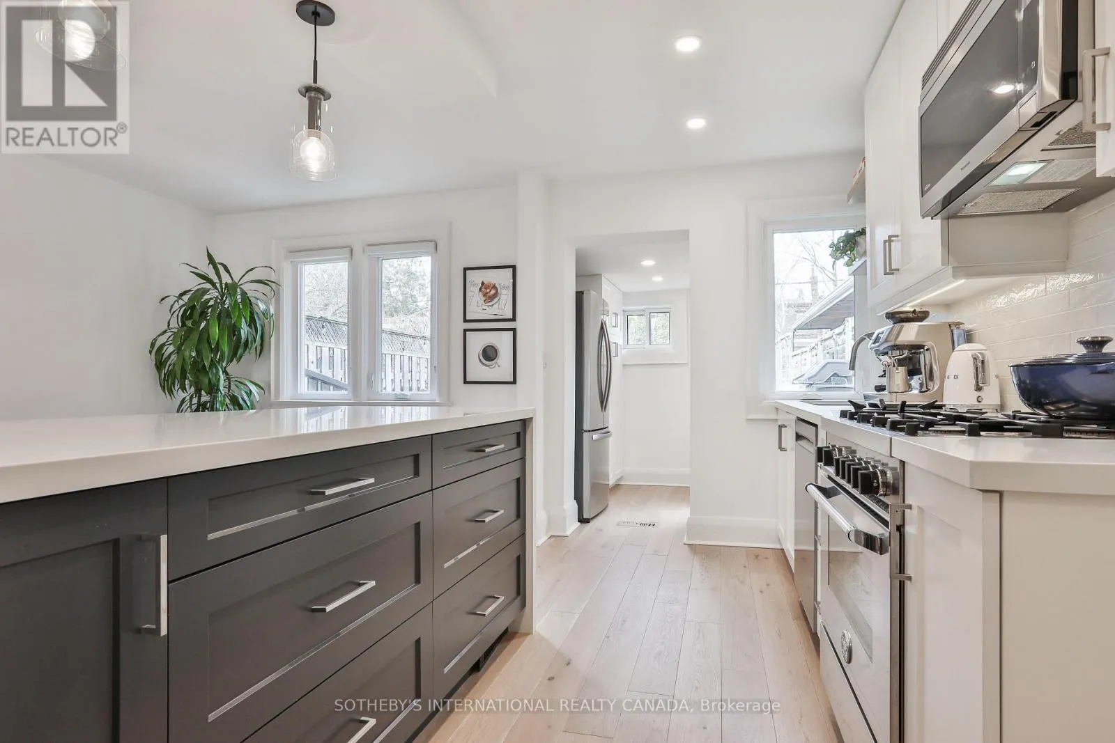 Cross Streets: St. Clair and Oakwood. ** Directions: Follow your GPS. Meet your next home - 64 Robina Ave, a beautifully renovated semi in the heart of Oakwood Village. This home is perfect for first-time buyers, growing families, and rightsizers alike. An ideal location, just steps away from the best that St. Clair West has to offer. The main floor and upstairs washroom were completely renovated in 2021. The open-concept main floor is designed for modern living and effortless entertaining. A chef-inspired kitchen anchors the space, complete with stainless steel appliances, a Bertazzoni 4-burner gas range, and ample counter and storage space. Upstairs offers three well-proportioned bedrooms and a beautifully renovated bathroom. The finished lower level adds valuable living space, featuring a versatile rec room with walkout - perfect for a home office, playroom, or guest area. A separate basement entrance provides potential for a secondary suite. Private front parking plus a garage for a small vehicle or additional storage. Step outside to a gorgeous, deep backyard featuring a spacious deck and garden shed. Located within the Rawlinson Community School district. A short walk to Wychwood Barns, tons of parks, and the best of St. Clair West. Don't miss out on this amazing opportunity! (id:27476)