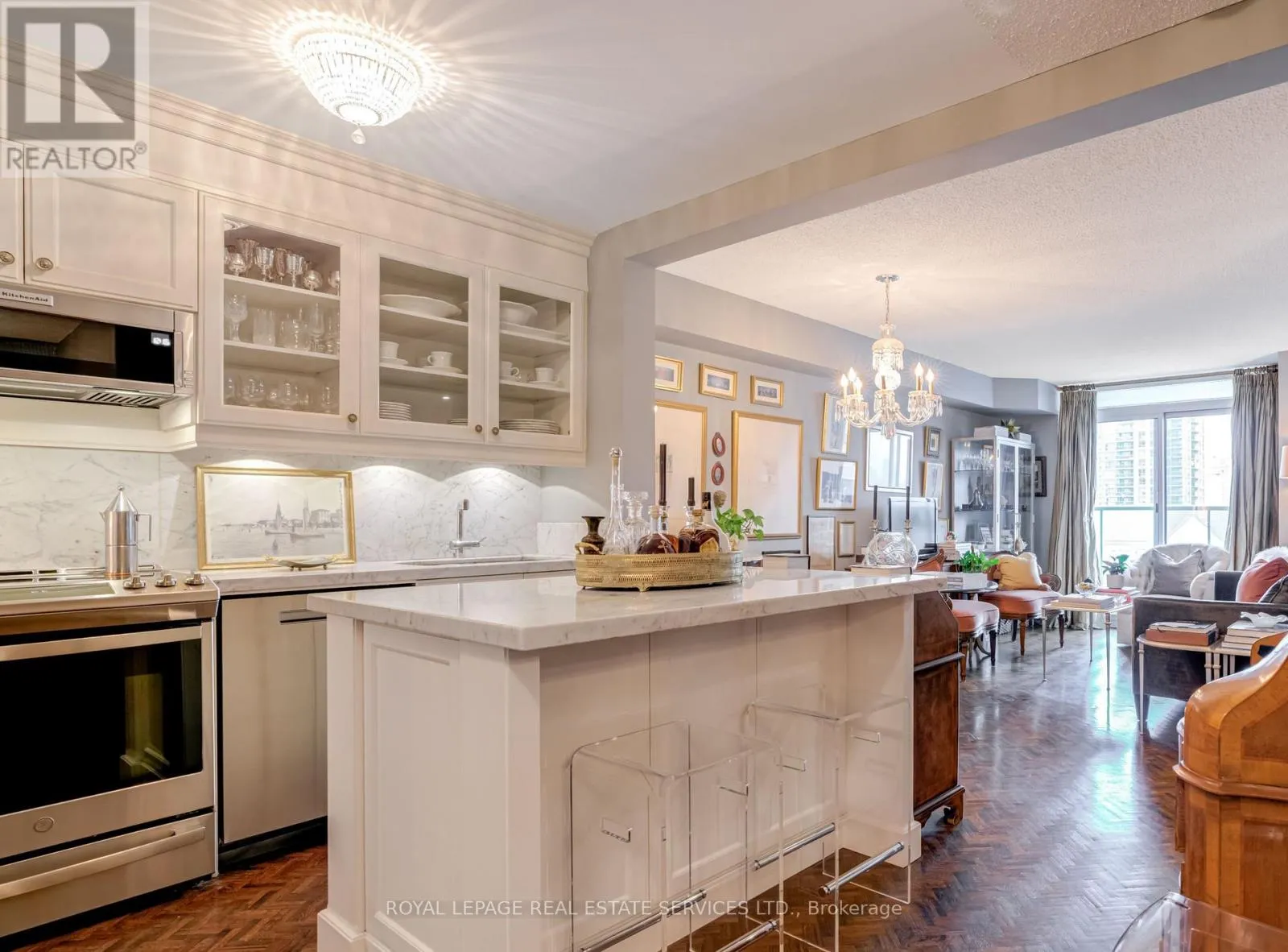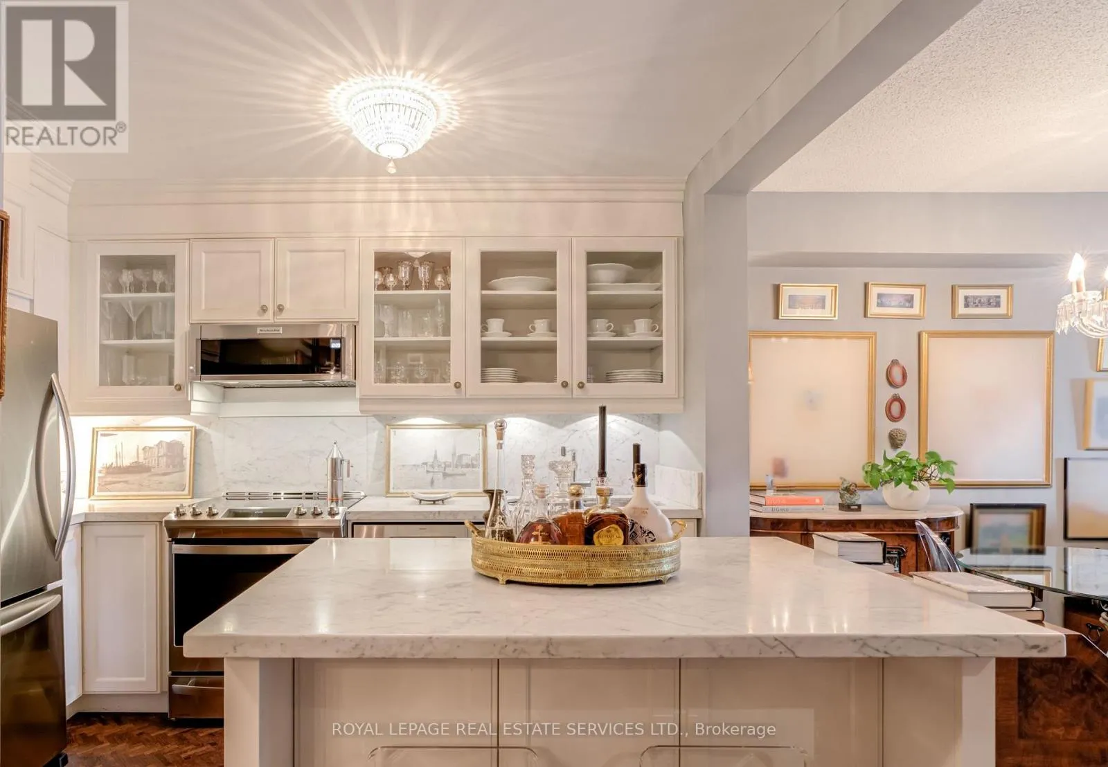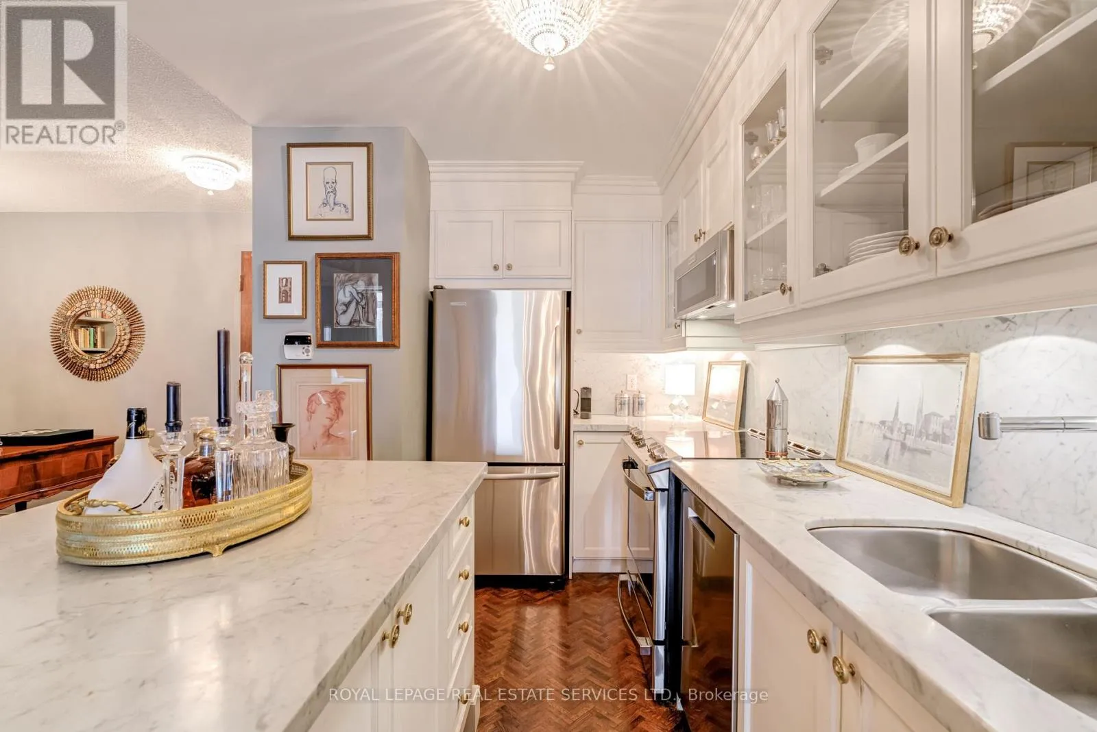 Cross Streets: Islington/Dundas. ** Directions: West of Islington, South of Dundas. Luxury Living Beyond the Box in the Sky! Stop settling for cookie-cutter units and step into a residence that truly feels like home. This boutique-style condo has been meticulously renovated with designer finishes and an open-concept flow. The heart of the home is a chef-inspired kitchen featuring Carrera marble countertops and backsplash, a generous island with seating, and premium newer appliances. Every detail of this home has been elevated: from the warmth of herringbone wood floors throughout to custom-built library shelving in the den and custom closet doors. Retreat to a spa-like bathroom featuring tumbled marble flooring and a stylish floating vanity. Enjoy sunset cocktails or morning cappuccinos on your large private balcony with unobstructed west views over the park and neighbourhood. This wonderful condo is located in an elegant and secure building with a 24-hour security gatehouse, fully equipped modern fitness room with premium commercial cardio and strength training equipment, renovated party room, library and new secure courier/package lockers. Condo includes newly installed fan coil unit with warranty. Located just minutes to Islington subway station, lots of restaurants, shops, schools and a quick drive to HWY 427 or the Gardiner expressway. This is a rare opportunity for the discerning buyer. A true must-see. Welcome Home! (id:27476)