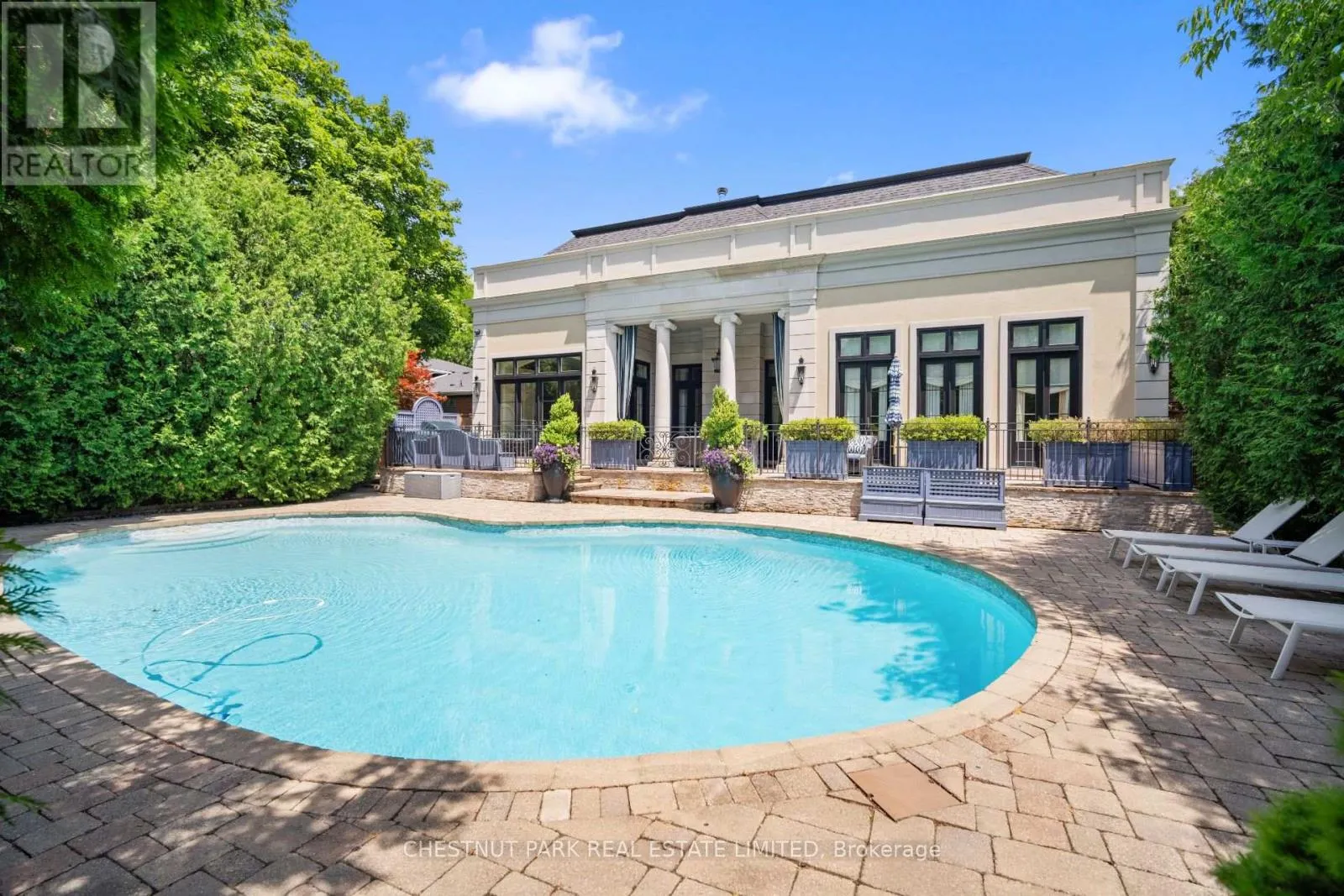Lawrence & Leslie An Exquisite French-inspired residence in the Bridle Path. This exceptional home blends timeless elegance with modern luxury, showcasing masterful craftsmanship and meticulous attention to detail. Grand principal rooms adorned with intricate millwork, soaring ceilings, and sun-filled spaces designed for both gracious entertaining and everyday living. This home is a masterpiece of design, featuring ornate and timeless wall panelling and curated designer finishes that exude sophistication. The chefs kitchen is a work of art, boasting custom cabinetry and premium appliances. Retreat to the primary suite, a sanctuary of indulgence with extensive closet space and a marble-clad ensuite. Full lower level with a recreation room, second kitchen, additional guest space, exercise room, and storage rooms. The backyard is superb - with a covered outdoor loggia, terrace and extensive patio space for relaxing and entertaining - complete with an inground swimming pool. Plus a fantastic gazebo and 3-piece washroom. The property is completely landscaped: stone paver driveway and walkways, gated front entrance, with an emphasis on privacy from the street. This palatial home is set in one of Toronto's most exclusive neighbourhoods, with conveniences and recreational amenities in the immediate vicinity. This residence offers a seamless blend of old-world grandeur and contemporary comfort, offering a rare opportunity to live such a refined lifestyle. (id:27476)