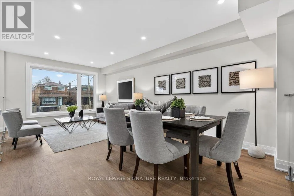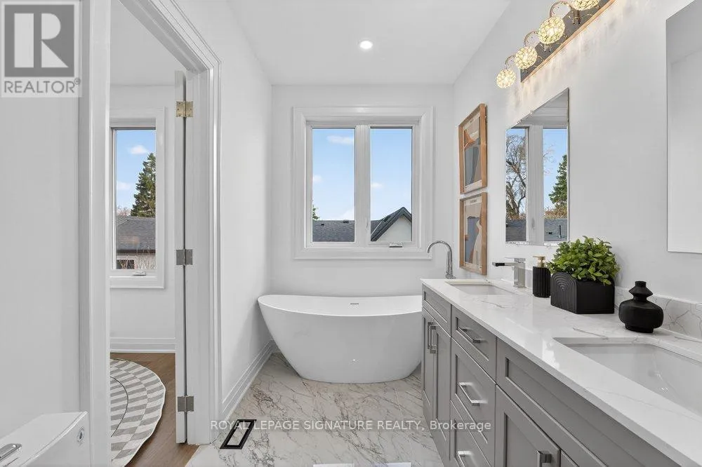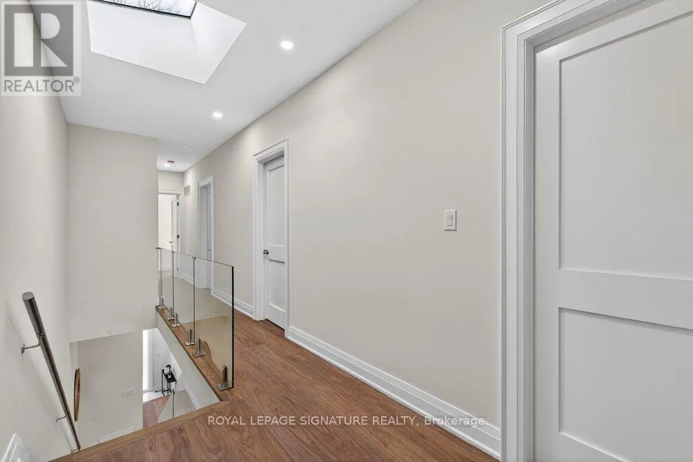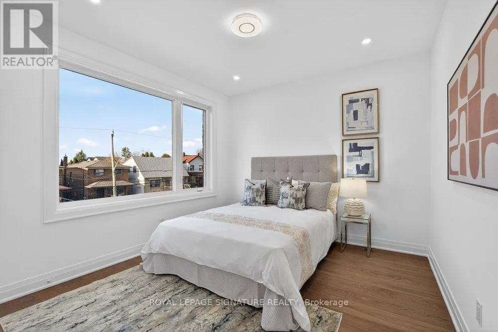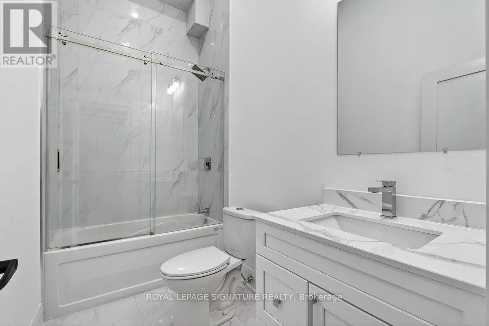 Warden Ave & Danforth Ave Welcome to an extraordinary custom-built residence in the heart of Oakridge. This stunning 4+1 bed, 5-bath home offers approx 2,400 sqft above grade, showcasing impeccable craftsmanship, premium finishes, and thoughtfully curated design throughout. Step inside to a sun-drenched open-concept main floor, the expansive living and dining areas are framed by oversized windows and adorned with rich hardwood flooring, creating a warm and inviting ambiance. At the heart of the home lies a chef-inspired kitchen, complete with a grand centre island with breakfast seating, sleek stainless steel appliances, and an abundance of custom cabinetry and storage. The family room reveals a striking focal point, a grand fireplace flanked by bespoke built-in shelving, while a charming Juliet balcony overlooks the private backyard. Ascend to the second level where the lavish primary suite serves as a true retreat, featuring a spacious walk-in closet and a spa-inspired 7-piece ensuite with an oversized glass shower, deep soaker tub, and an expansive double vanity designed for ultimate indulgence. Three additional generously sized bedrooms offer ample closet space and share access to beautifully appointed bathrooms. A convenient laundry room and stunning skylight enhance both functionality and natural light. The fully finished basement, boasting impressive ceiling height and a separate entrance, offers exceptional versatility, with a large recreation area, an additional bedroom and a modern 4-piece bath. Basement also includes a rough-in for a kitchen for rental potential! Completing this remarkable home is a built-in garage and a beautifully interlocked driveway. Just moments from Danforth Ave, this residence is within minutes if TTC, top-rated schools, shopping, parks, the GO Transit, and the breathtaking Scarborough Bluffs. (id:27476)
