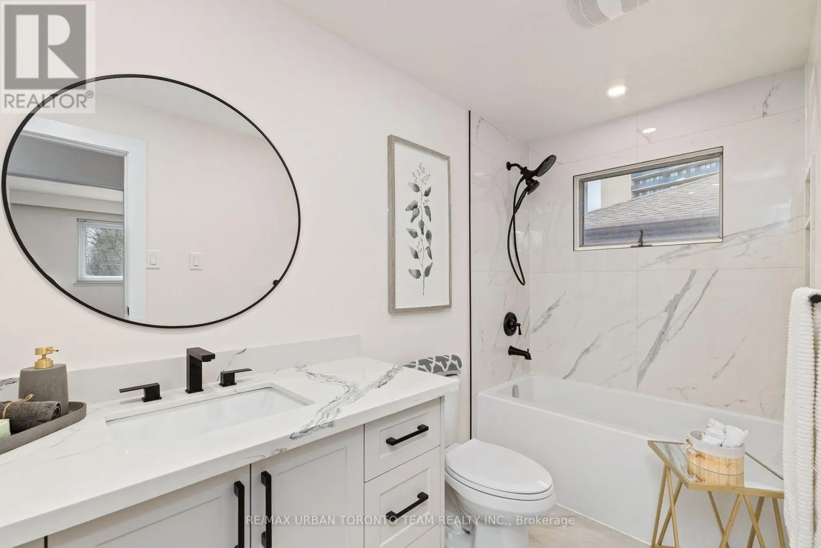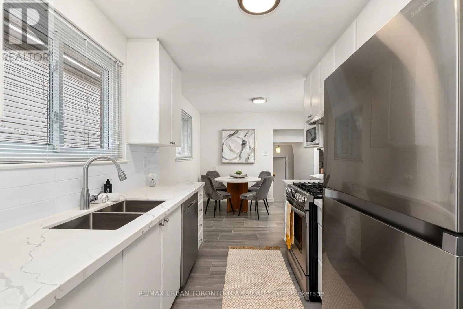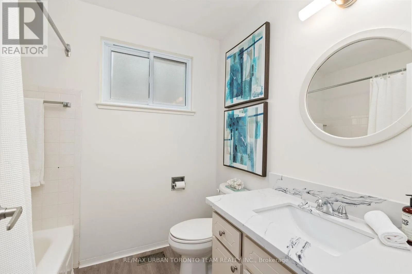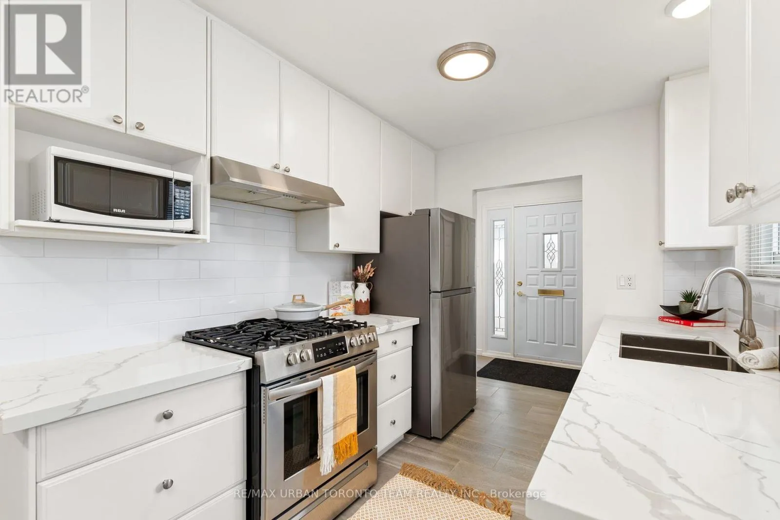 Guildwood Pkwy & Livingston Guildwood Beauty! Move right into this sun-filled, beautifully renovated home offering approximately 2,300 sq. ft. of total living space, including a finished lower level (approx. 639 sq. ft.) with a separate side entrance-ideal for extended family or excellent income potential. This spacious home features 4+1 bedrooms (easily converted to 5) and two modern 4-piece bathrooms, all above grade. The sleek open-concept kitchen is thoughtfully updated with stainless steel appliances, quartz countertops, porcelain flooring, refinished cabinetry, and a bright breakfast area with large window. Enjoy refinished hardwood flooring, updated baseboards, and fresh paint throughout, with an inviting open-concept living and dining area featuring a charming brick fireplace and oversized bow window that fills the space with natural light. A rare main floor family room offers incredible flexibility as a second living space or optional 5th bedroom, with a walk-out to a south-facing raised deck overlooking a private, mature treed backyard-perfect for relaxing or entertaining. Extensive upgrades include new furnace and A/C, updated electrical panel with ESA certificate, all plugs and switches replaced, full upper bathroom renovation and partial lower bath update, new basement carpeting, updated laundry area with new dryer, all new light fixtures, closet doors and hardware, new locks, roof repairs with pest-proof vent covers, eaves improvements, deck boards replaced, restored front pavers, new privacy fence. Located just steps to Lake Ontario, scenic trails, parks, Guild Inn Estate, top-rated schools including Elizabeth Simcoe P.S. and Laurier CI (IB), plus easy access to U of T Scarborough, TTC, GO Train, shopping, and restaurants-this is a turnkey opportunity in a highly sought-after community. (id:27476)