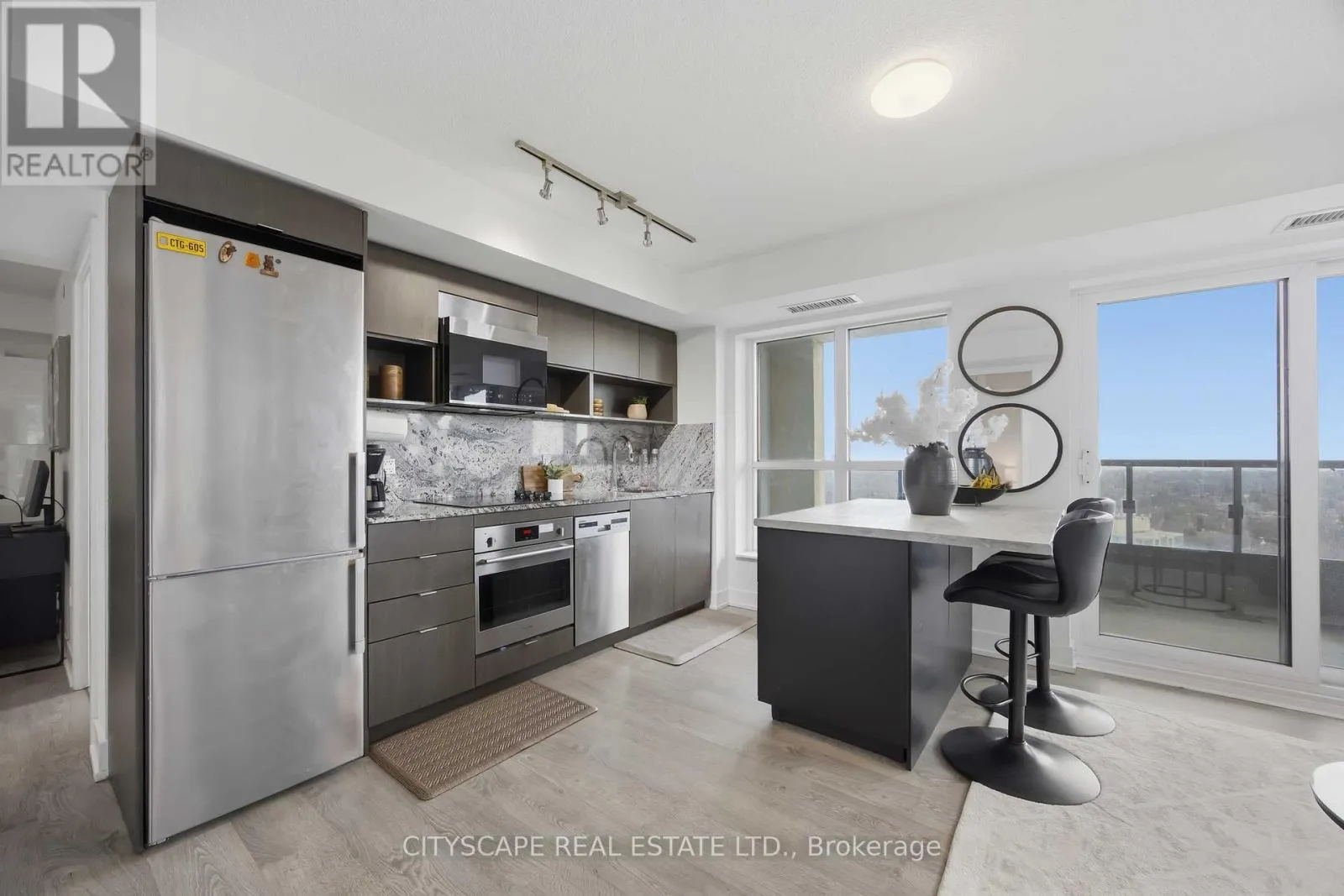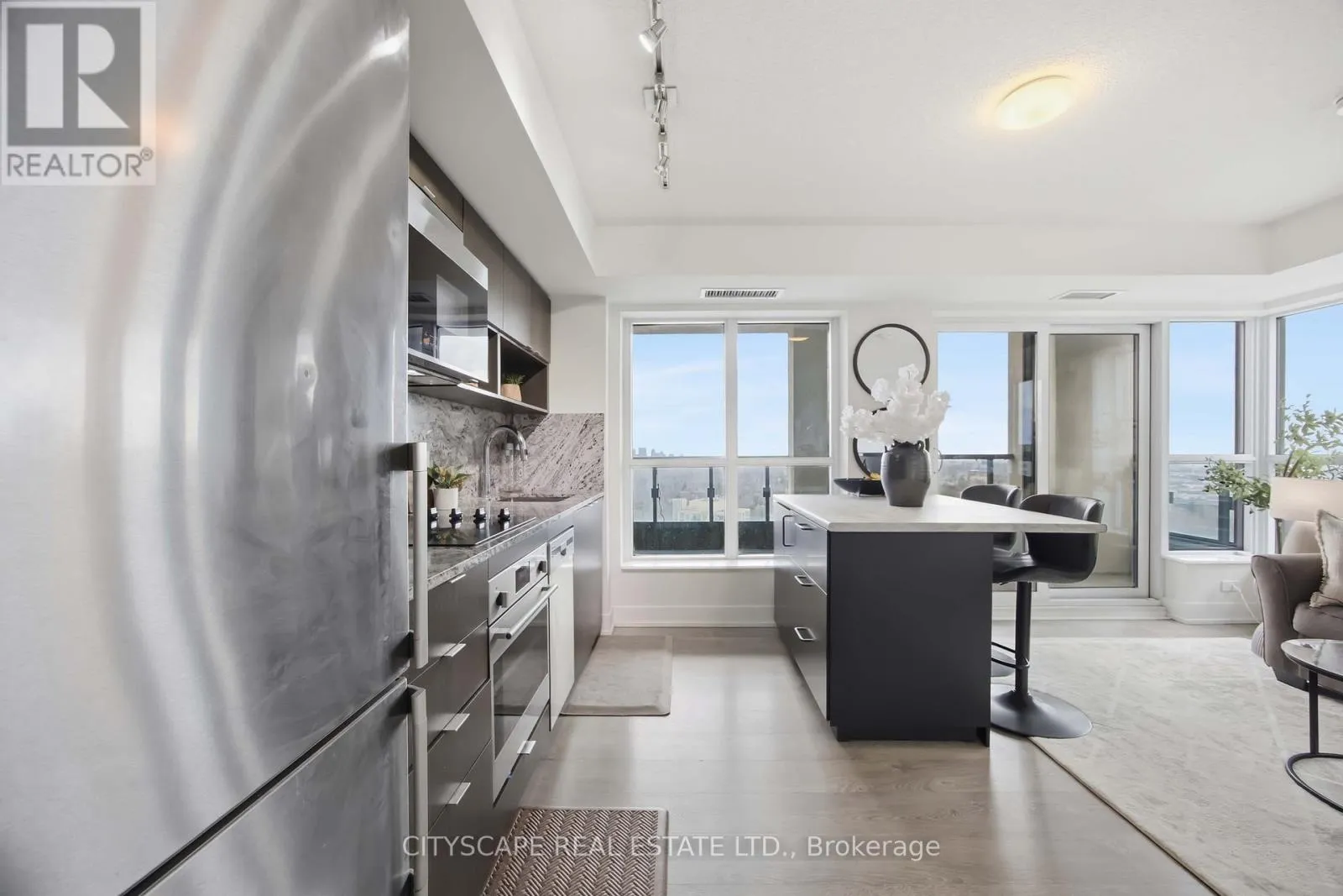 Cross Streets: Bloor and Islington. ** Directions: ISLINGTON / MABELLA. Welcome to BloorVista by Tridel - where elevated living meets breathtaking views. Step into Suite 2223, a bright and beautifully upgraded residence showcasing sweeping southwest exposure with stunning lake and city vistas. This rare and thoughtfully designed layout features two perfectly split bedrooms, two full bathrooms, a separate media room, and one parking space, offering both privacy and flexibility. Soaked in natural light, the sun-filled interior is framed by oversized south- and west-facing windows, creating an airy, open feel throughout. Sleek laminate flooring, contemporary cabinetry, granite countertops, and built-in appliances elevate the modern aesthetic, while generously sized bedroom closets add everyday comfort. Enjoy low maintenance fees and effortless condo living. Resort-style amenities impress with an indoor pool, state-of-the-art fitness centre, yoga studio, basketball court, theatre, party and games rooms, rooftop BBQ terrace, 24-hour concierge, pet wash, and visitor parking. Unbeatable location - steps to Islington Subway, minutes to major highways, Sherway Gardens, shops, parks, and scenic trails. Downtown Toronto is just a 20-minute commute. A standout suite in a sought-after building - stylish, sun-filled, and superbly connected. (id:27476)