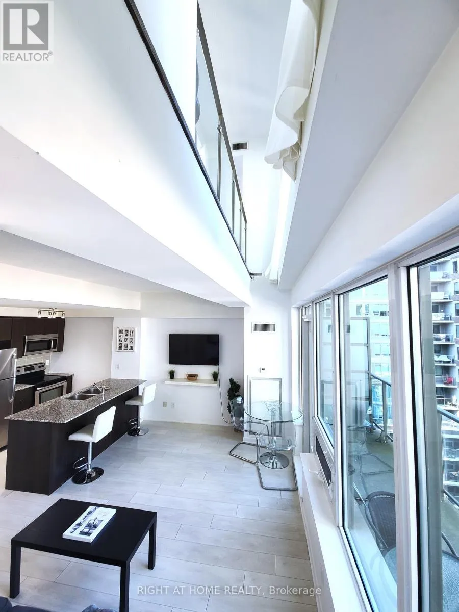 Cross Streets: King & Strachen. ** Directions: South side of East Liberty Street. Step into one of Liberty Village's most sought-after loft residences - a true top-floor, 2-storey retreat offering rare privacy, exceptional natural light, and a layout that feels both spacious and functional. This bright, open-concept 1 Bedroom + Large Den, 2 Bathroom loft immediately stands out with no units above or directly across, giving you unmatched peace, exclusivity, and clear city views. Enjoy the convenience of underground parking with quick access to the Gardiner and Lake Shore, plus easy commuting with TTC routes and the Liberty GO Station only a short walk away. (id:27476)