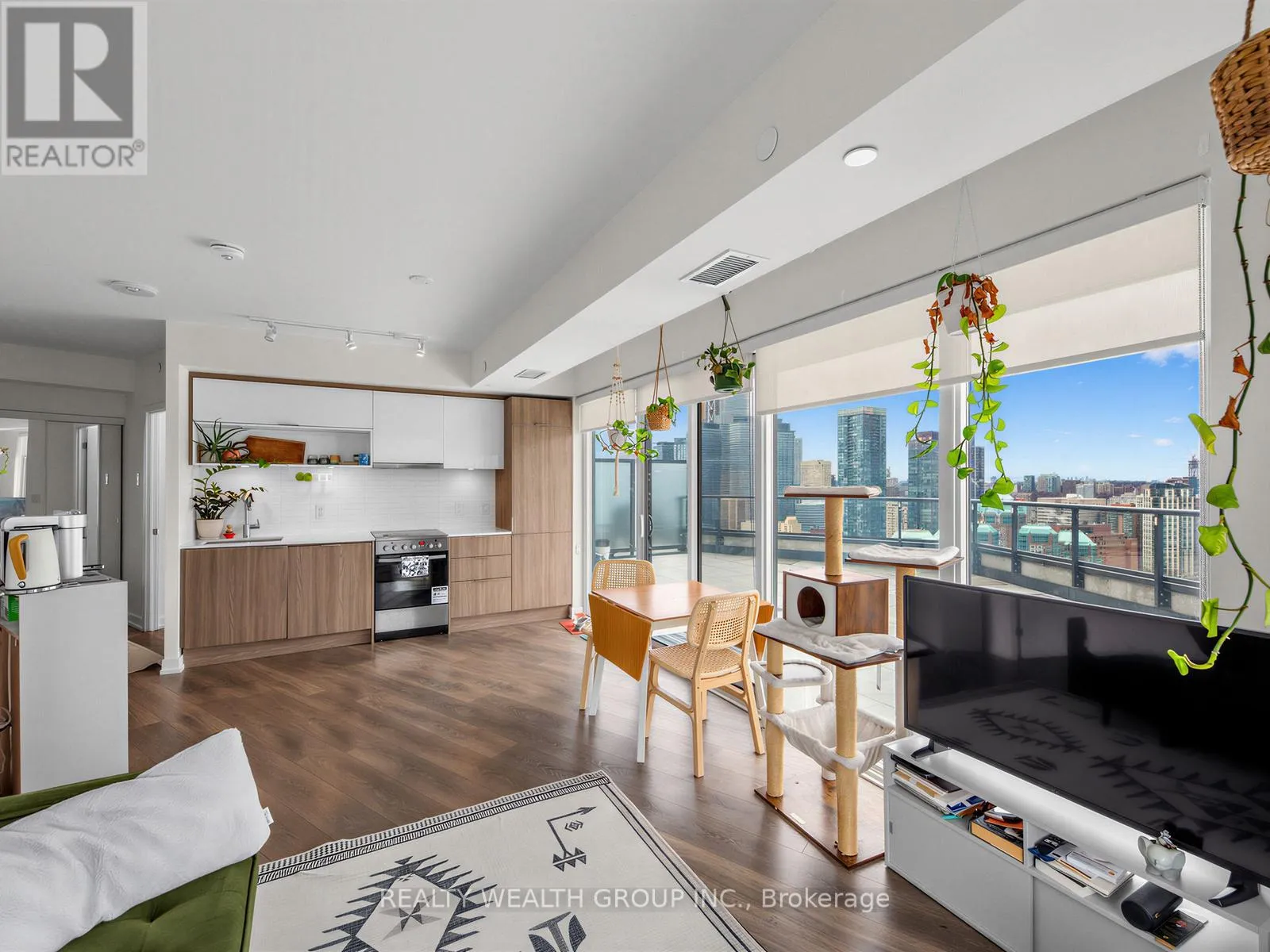 Cross Streets: Wellesley & Shelbourne. ** Directions: Follow your GPS. What would you say if Your backyard... just happens to be a glorious 496 sq ft in the sky. Welcome to the ONLY unit in the building or possibly the surrounding area with this massive private open terrace balcony perfect for summer hangouts, sunset drinks, morning coffee, create your own little rooftop vibe right at home. Condos are everywhere... but a 496 sq ft terrace like this? That's a unique story. Inside, the suite offers a bright, well-designed layout with modern finishes and floor-to-ceiling windows that flood the space with natural light with blinds for your privacy. Located in the heart of downtown Toronto, just steps to University of Toronto, Toronto Metropolitan University, George Brown College, Super markets, top dining, shopping, and easy TTC/subway access (id:27476)