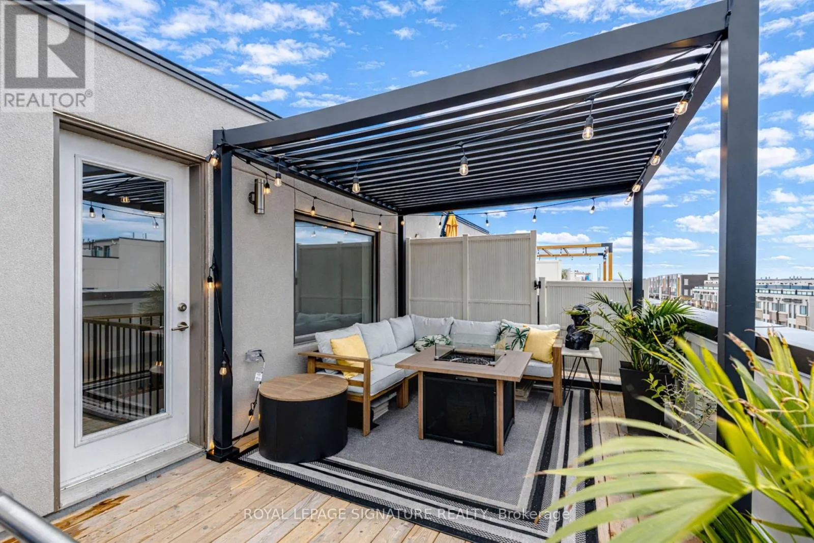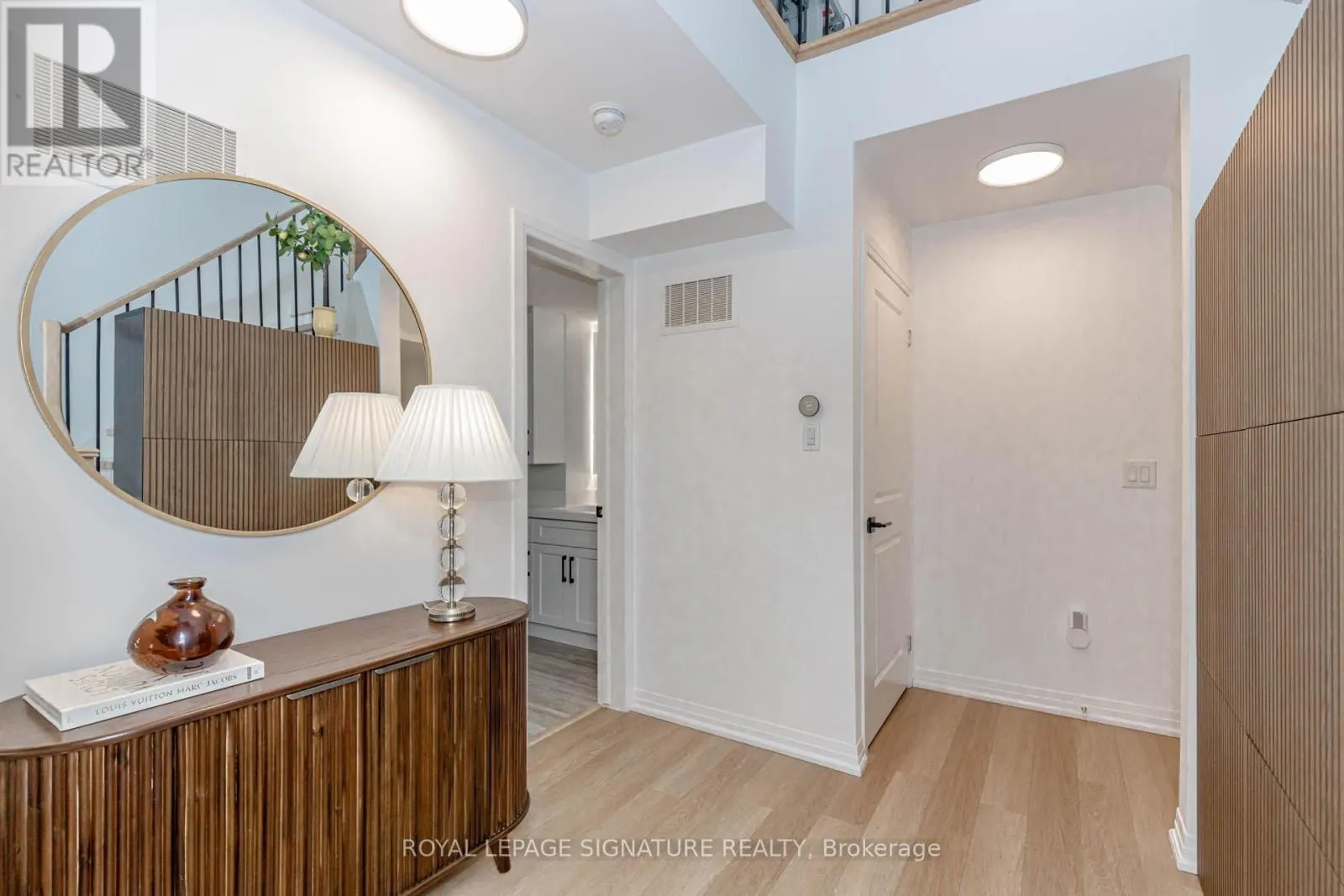 Cross Streets: Keele St & Wilson Ave. ** Directions: Keele St & Wilson Ave. East on Wilson, north on William Duncan Rd. Property on right. Beautifully upgraded 2-bedroom, 2-bathroom stacked townhouse in a highly sought-after Downsview community. This turnkey home features a modern open-concept layout with luxury vinyl plank flooring throughout and a thoughtfully redesigned kitchen with quartz countertops, extended galley-style island, backsplash, and enhanced storage.Thoughtfully upgraded throughout with attention to both design and long-term functionality.Stylish finishes include upgraded lighting, zebra blinds, and a functional layout ideal for everyday living. Spacious primary and second bedrooms, along with a renovated bathroom featuring a glass shower panel, rain shower, and upgraded fixtures.Enjoy a private rooftop terrace complete with gas BBQ hookup, perfect for entertaining.Includes exclusive-use surface parking and low maintenance fees.Major upgrades include a brand new HVAC system (2024), new air conditioning unit (2024), and owned tankless water heater (2024), offering long-term efficiency and peace of mind.Located steps to TTC, Downsview Park, shopping, and everyday amenities. A perfect blend of style, function, and convenience. (id:27476)
