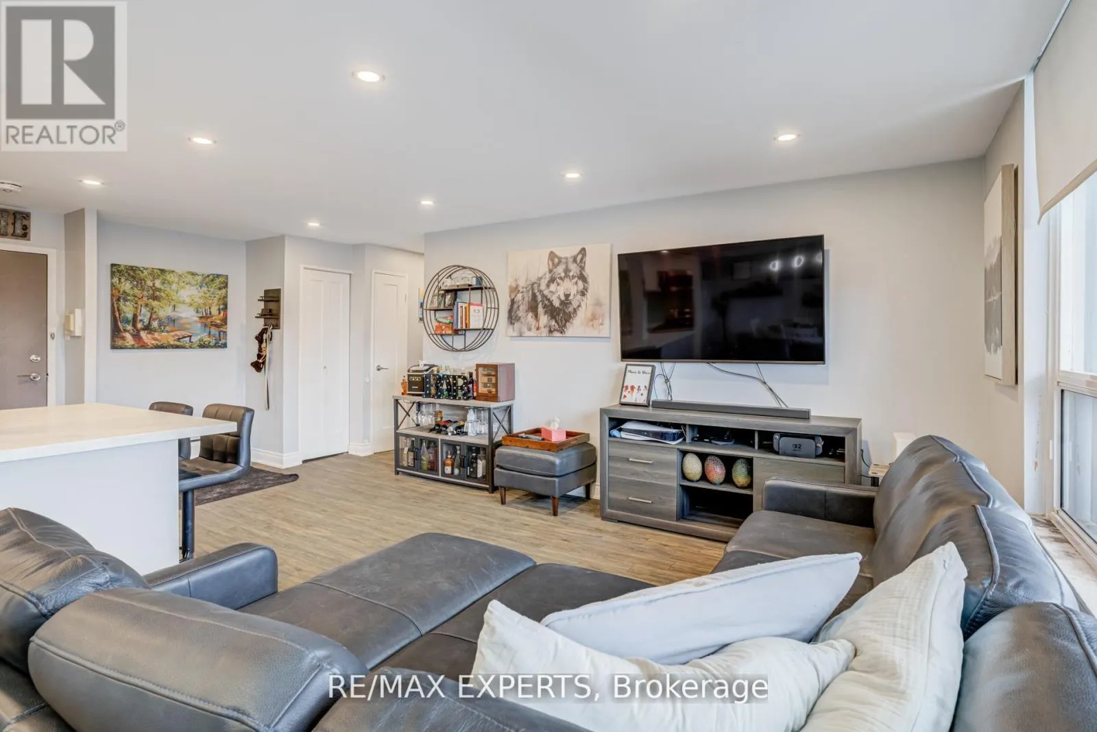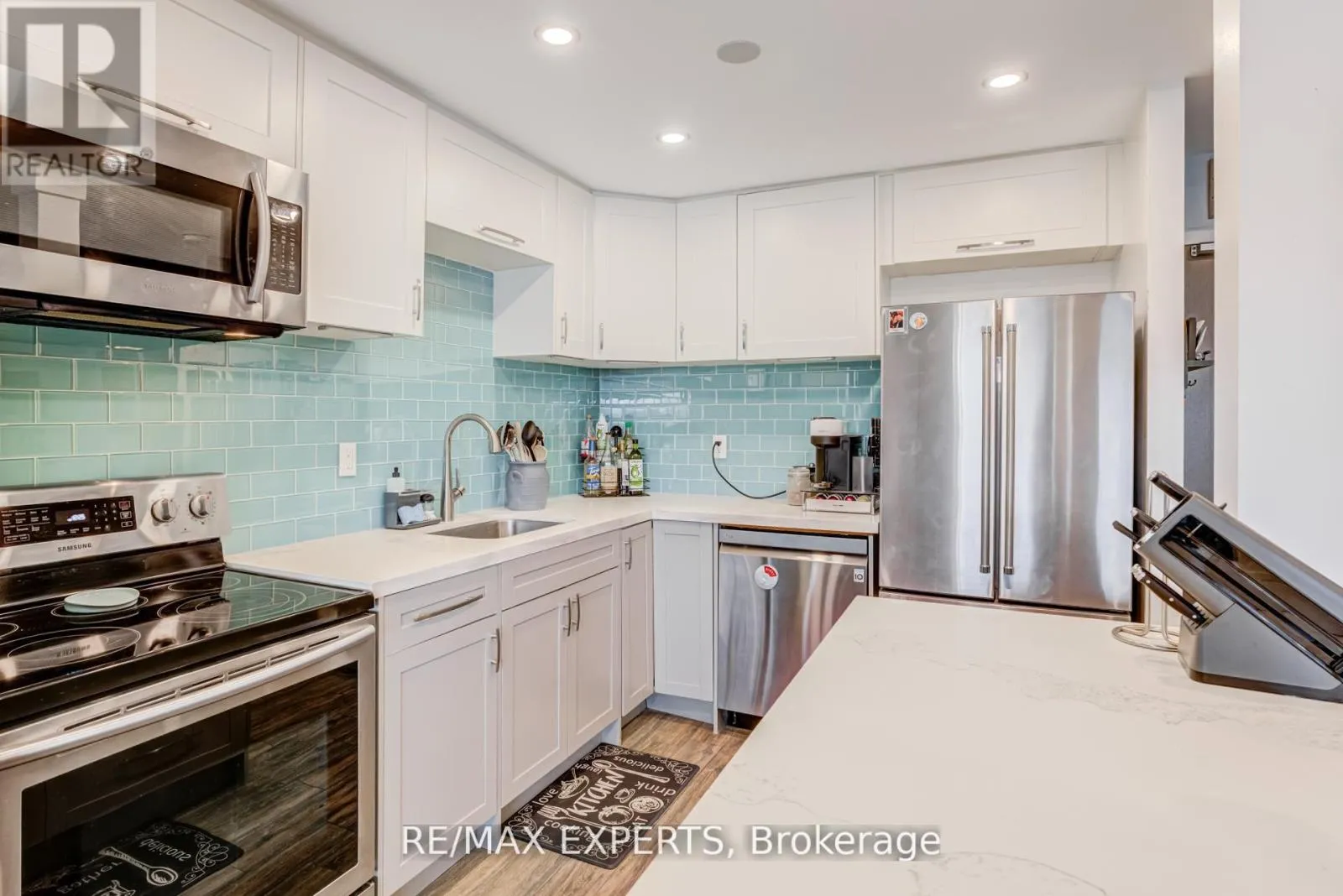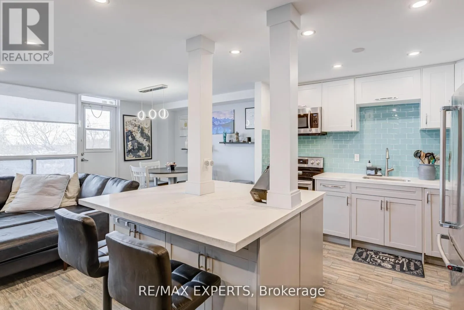 Finch Ave & Weston Rd Welcome to this beautifully renovated condo in the highly sought-after Century Gardens community. This bright, open-concept unit features a full kitchen renovation with quartz countertops, island, upgraded appliances & dishwasher, ceramic flooring, laminate bedrooms, a fully updated bathroom, drop ceiling with pot lights, new light fixtures, new doors, upgraded electrical panel, replaced baseboard heater covers, and deck-style balcony flooring.Enjoy 9-ft ceilings, custom built-ins, scenic park views with southern exposure and CN Towerview, and a private balcony. Steps to TTC, backing onto Lindy Lou Park, minutes to Finch WestLRT, Line 1 Subway, Highways 400 & 401, York University, shopping, and major amenities.Building amenities: Gym, sauna, park. Ideal for families, investors, or downsizers. (id:27476)