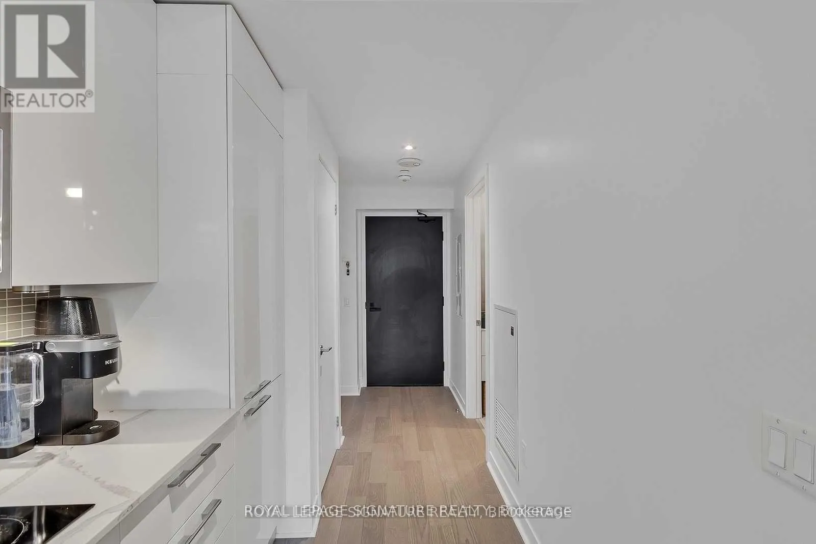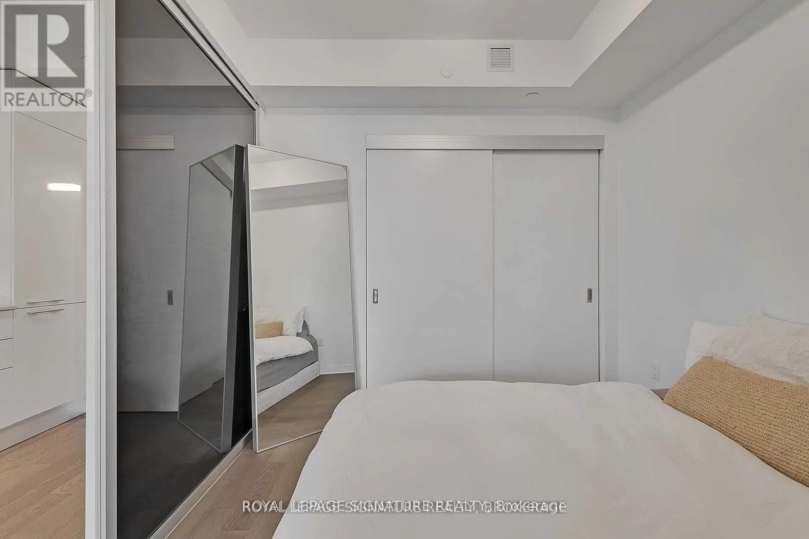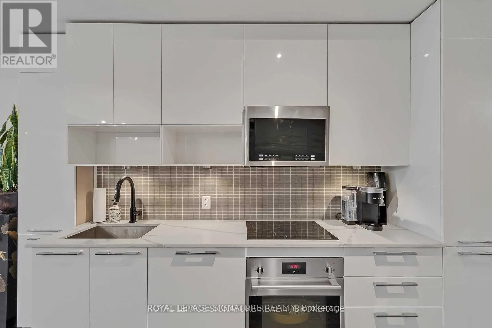 Cross Streets: Adelaide St W/Portland St. ** Directions: Adelaide / Portland. Experience the best of King West living at the highly coveted Kingly Condos at King & Portland. This exceptional 1-bedroom suite offers incredible value with thoughtful upgrades and a spacious open-concept layout designed for modern city living.The suite features expansive New York-style warehouse windows, 9-ft smooth ceilings, and wide plank flooring throughout, creating a bright and stylish atmosphere. The custom Scavolini kitchen is a standout, complete with full-sized integrated/panelled stainless steel appliances, natural stone counters, subway tile backsplash, and an additional custom pantry for extra storage.The lengthy open-concept living and dining area is perfect for entertaining, enhanced by floor-to-ceiling windows that bring in abundant natural light and offer versatile layout options. The primary bedroom is smartly enclosed with frosted glass sliding doors and features a double closet. Relax in the spa-inspired 4-piece bathroom finished with modern tile, a stone vanity, mirrored medicine cabinet, extra shelving, and a luxury 2-in-1 shower/tub. Step out onto your private balcony to enjoy sensational sunrise views, and take advantage of the included locker for added convenience.Residents enjoy state-of-the-art amenities, including a fitness centre and gym, rooftop deck, party and meeting rooms, and 24-hour concierge. Located just steps from Toronto's hottest restaurants, cafes, nightlife, and shopping, this is King West living at its finest. Live like royalty at The Kingly. (id:27476)