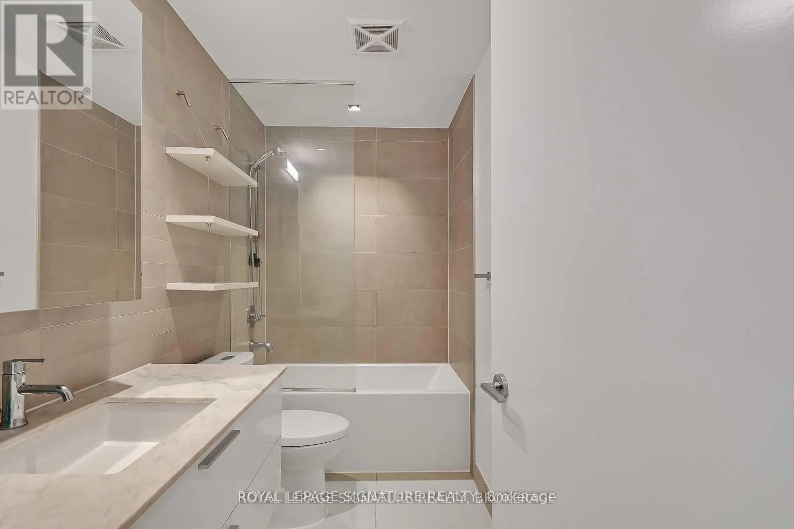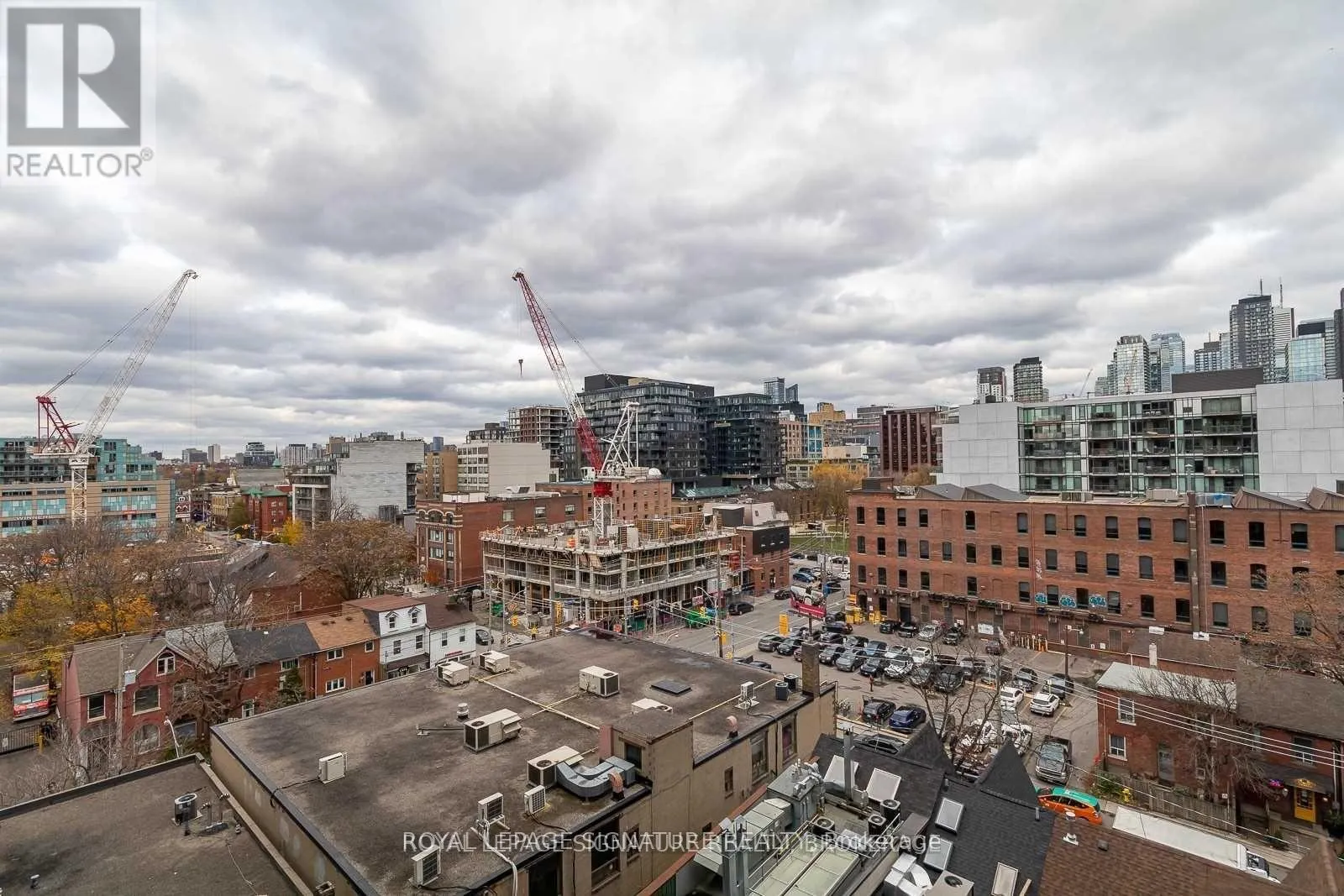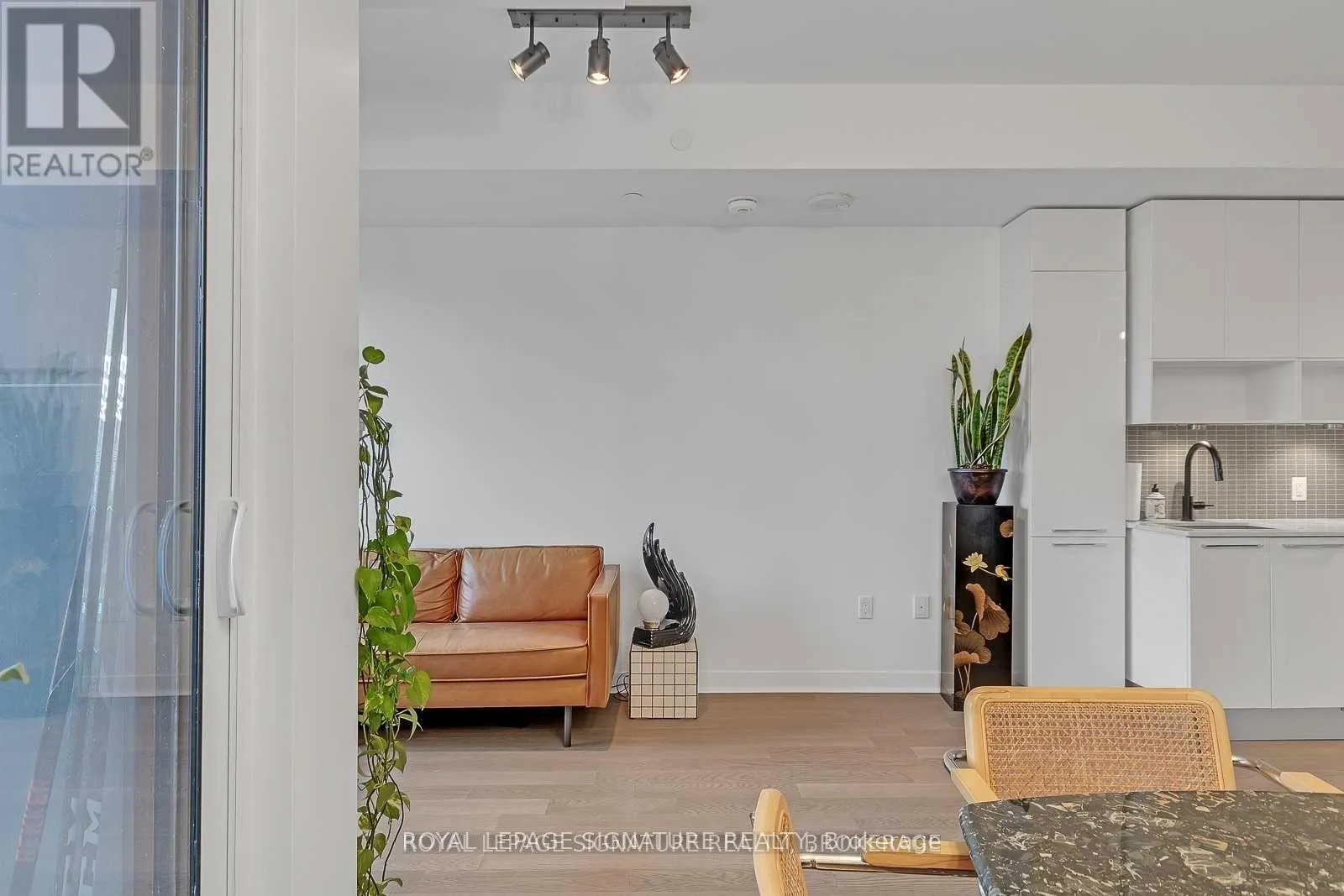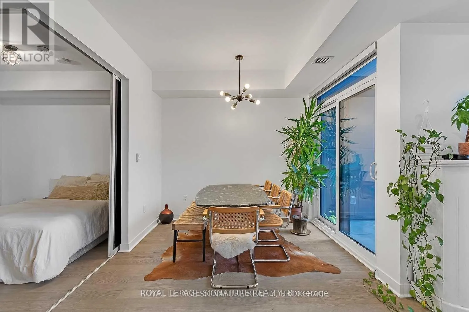 Cross Streets: Adelaide St W/Portland St. ** Directions: Adelaide / Portland. Experience the best of King West living at the highly coveted Kingly Condos at King & Portland. This exceptional 1-bedroom suite offers incredible value with thoughtful upgrades and a spacious open-concept layout designed for modern city living.The suite features expansive New York-style warehouse windows, 9-ft smooth ceilings, and wide plank flooring throughout, creating a bright and stylish atmosphere. The custom Scavolini kitchen is a standout, complete with full-sized integrated/panelled stainless steel appliances, natural stone counters, subway tile backsplash, and an additional custom pantry for extra storage.The lengthy open-concept living and dining area is perfect for entertaining, enhanced by floor-to-ceiling windows that bring in abundant natural light and offer versatile layout options. The primary bedroom is smartly enclosed with frosted glass sliding doors and features a double closet. Relax in the spa-inspired 4-piece bathroom finished with modern tile, a stone vanity, mirrored medicine cabinet, extra shelving, and a luxury 2-in-1 shower/tub. Step out onto your private balcony to enjoy sensational sunrise views, and take advantage of the included locker for added convenience.Residents enjoy state-of-the-art amenities, including a fitness centre and gym, rooftop deck, party and meeting rooms, and 24-hour concierge. Located just steps from Toronto's hottest restaurants, cafes, nightlife, and shopping, this is King West living at its finest. Live like royalty at The Kingly. (id:27476)