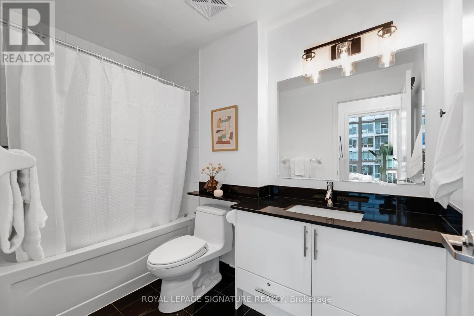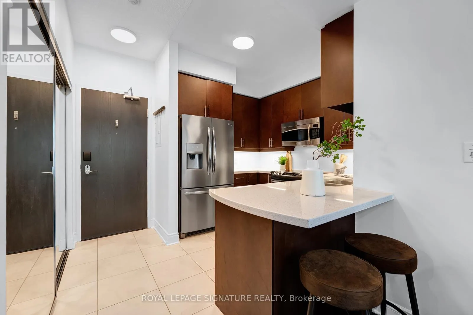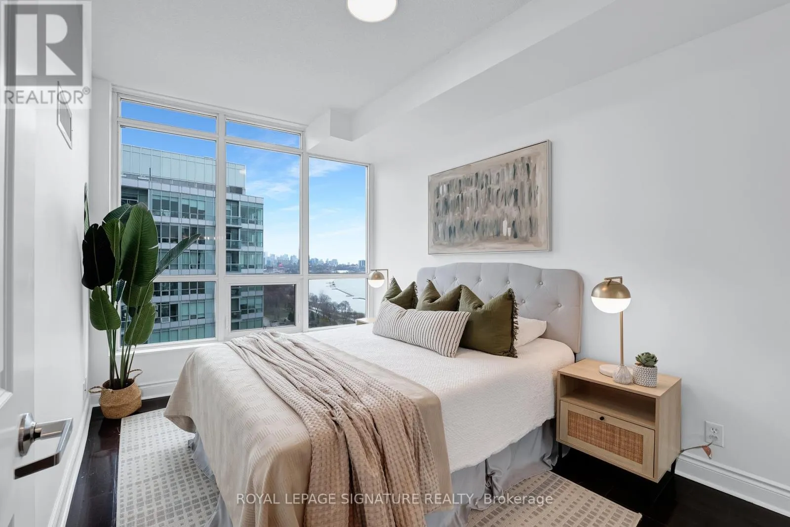 Cross Streets: Lake Shore Blvd W/Ellis Ave. ** Directions: Type \"1910 Lake Shore Blvd W\" into Waze!. Welcome to this bright and airy lower penthouse one bedroom, one bathroom suite offering a highly functional, open-concept layout with no wasted space. Soaring 10-foot ceilings and floor-to-ceiling windows with southeast views in both the living room and bedroom flood the space with natural light. Take in a stunning blend of views, city skyline to the east, sparkling lake vistas to the south, and the serene greenery of High Park to the north. The modern upgraded kitchen is designed for both style and function, featuring stainless steel appliances, stone countertops, and ample cupboards for storage. Rich dark hardwood floors add warmth and sophistication throughout with space for a dining area, a work from home set-up, and a comfortable living room. A true move-in-ready home, offering the perfect canvas for your personal touches! Ideally located just steps from Sunnyside Beach, High Park, and the Martin Goodman Trail, this address delivers the best of nature and urban convenience. Enjoy easy access to multiple TTC routes, including the 24-hour Queen streetcar, or a quick 15-minute drive to Union Station. Residents benefit from premium amenities including a 24-hour concierge, fitness centre, yoga and ping-pong room, cards and billiards lounge, meeting and party rooms, and a rooftop serenity garden complete with BBQs, picnic areas, and visitor parking. (id:27476)