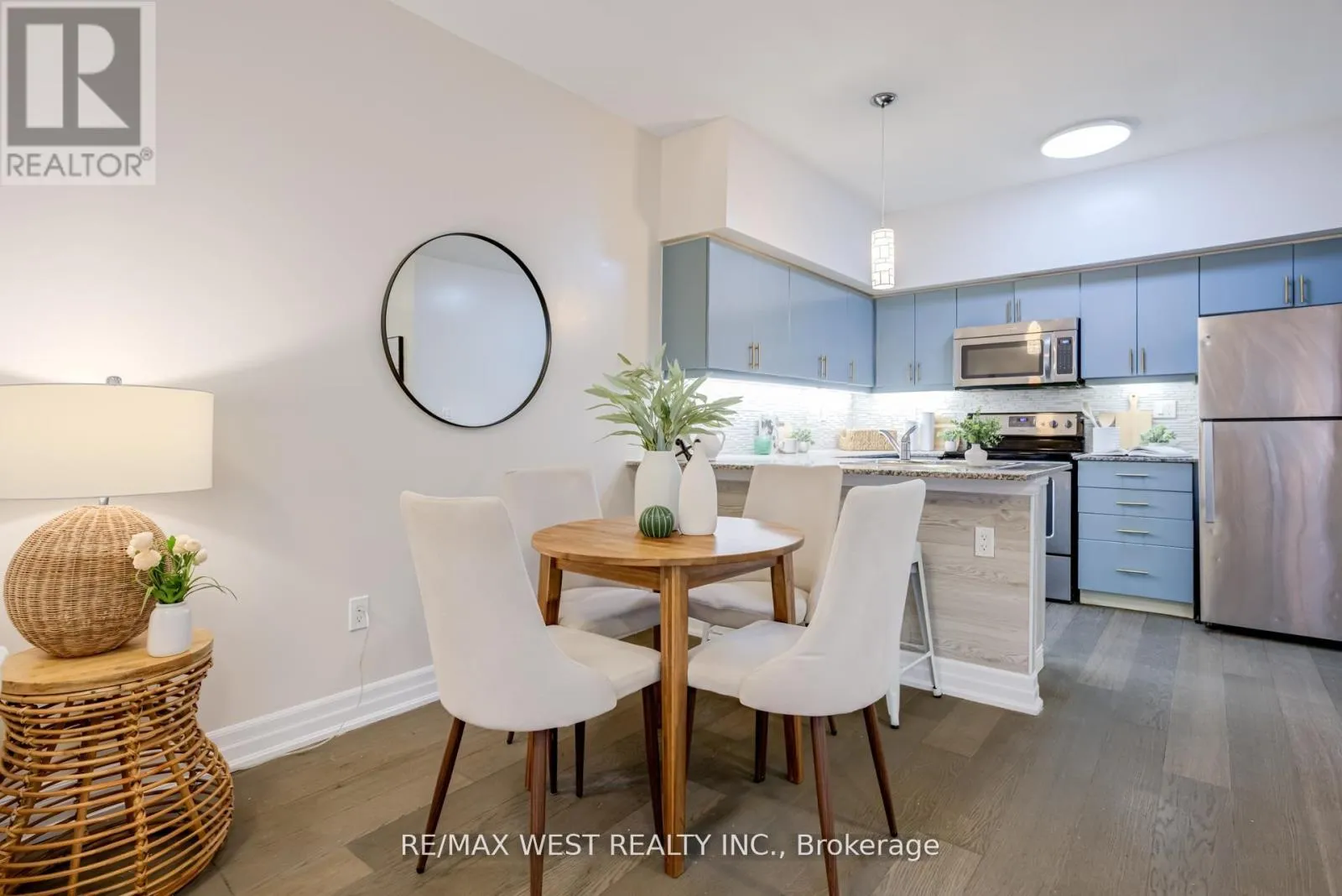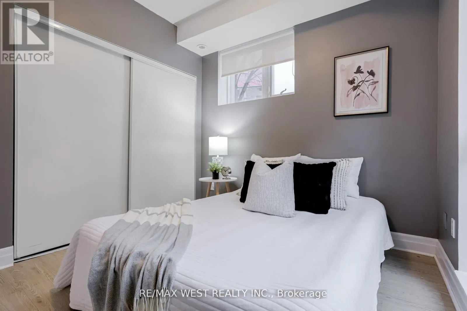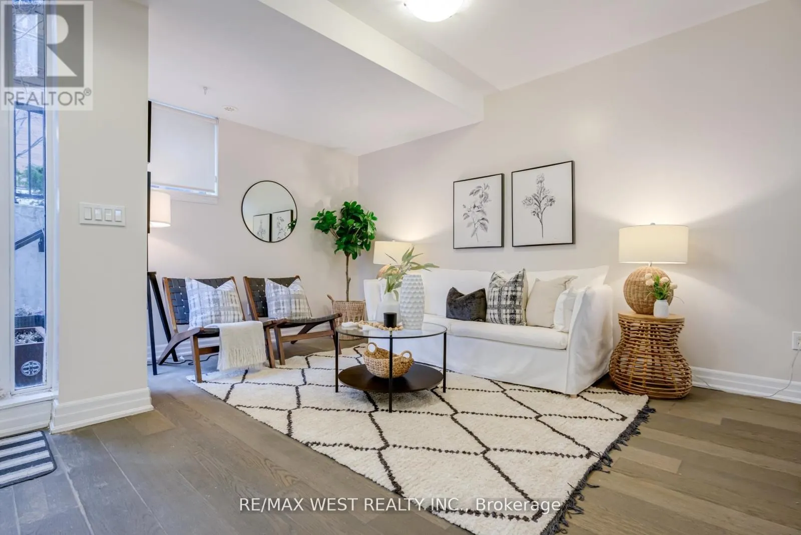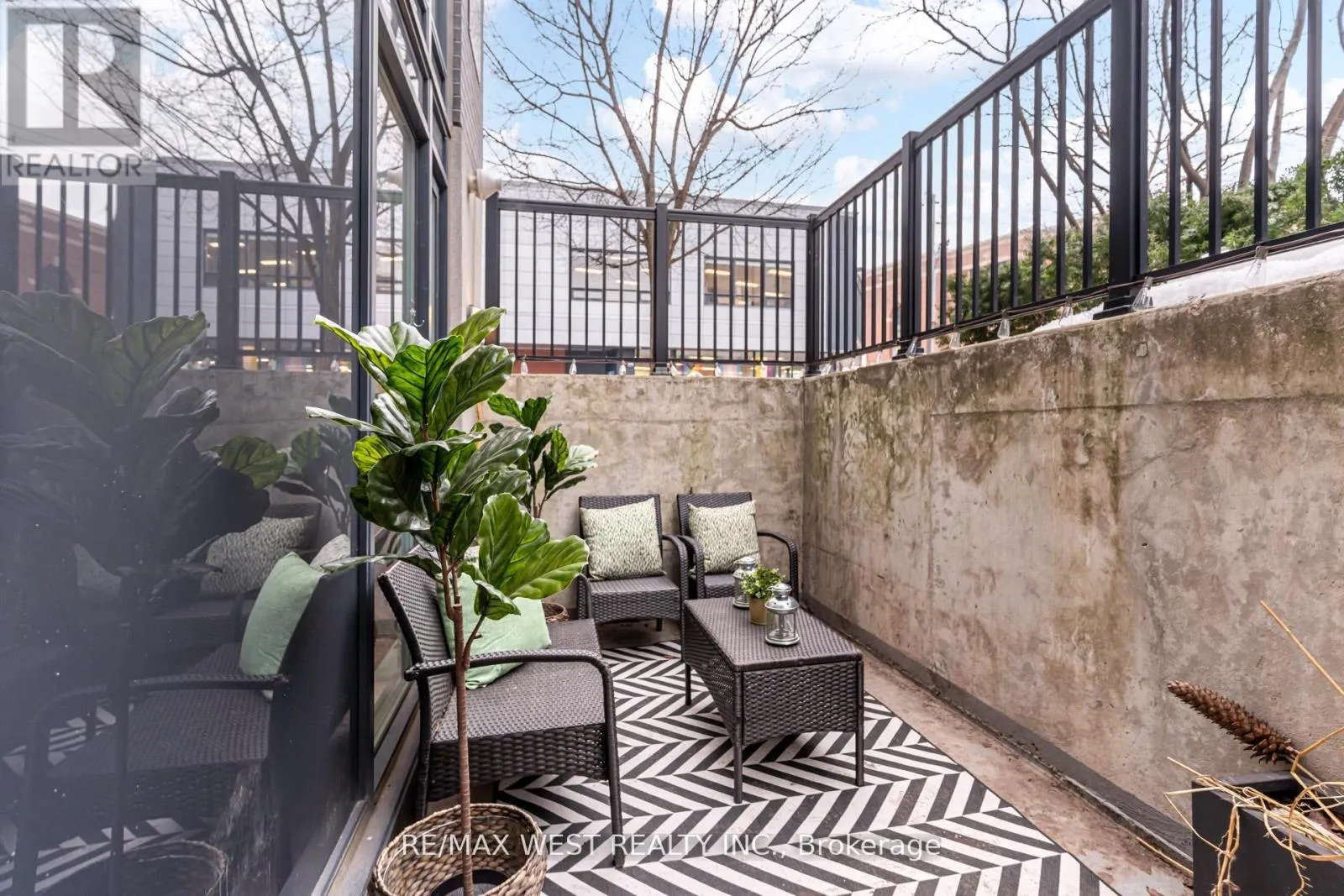 Bloor & Dundas West Welcome to #101-45 Sousa Mendes, a bright corner townhouse in the coveted Wallace Walk community, perfectly situated in the heart of Toronto's vibrant Junction Triangle. This stylish home features soaring 9' ceilings, creating an airy, modern living experience filled with natural light. The open-concept living and dining area flows effortlessly into a contemporary kitchen featuring a breakfast bar, granite counters, and thoughtful upgrades throughout. The home offers two beautifully designed bedrooms, including a spacious primary with wall-to-wall closets and a 3-piece semi-ensuite. Enjoy everyday convenience with ensuite laundry, ample interior storage, your own private patio with a BBQ gas hookup, and 1 underground parking space.This home offers a rare blend of comfort, style, and urban convenience-steps to the best of the Junction Triangle, including the West Toronto Railpath, a beloved car-free trail for walking, running, and cycling; trendy cafes, bakeries, and brunch spots; family-friendly and pet-friendly parks, George Chuvalo Neighbourhood Centre and Museum of Contemporary Art (MOCA), Roncesvalles and High Park. Minutes to GO Transit, and Dundas West Station, UP Express - Union Station in 6 minutes and Pearson Airport in 16 minutes. (id:27476)