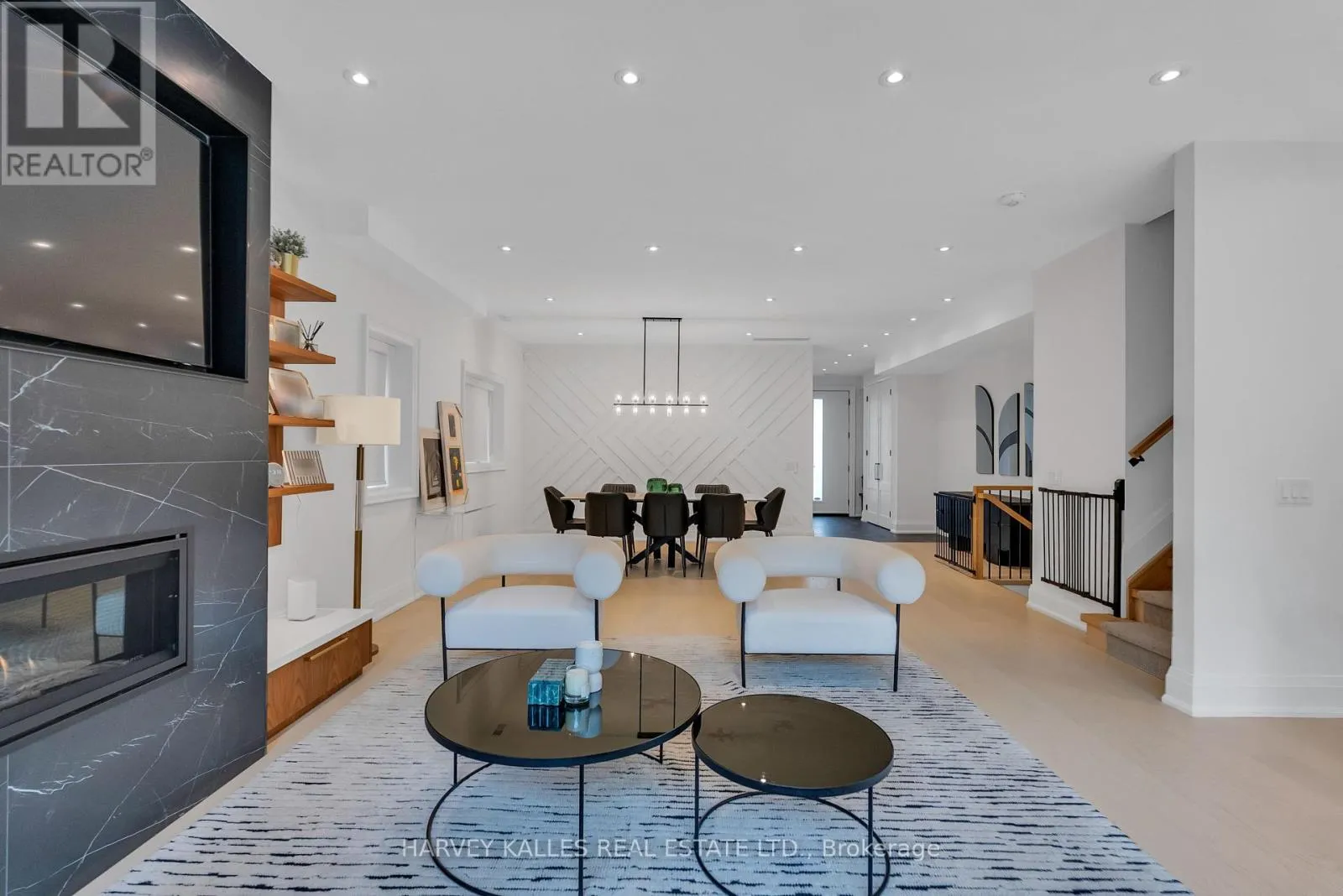 Cross Streets: Bathurst And Wilson. ** Directions: NW of Bathurst And Wilson. Set On A Quiet Street In Sought-After Clanton Park, This Stunning Contemporary Home Blends Comfort And Style With Bright Open Spaces, Clean Lines, And A Fresh Inviting Vibe Throughout. The Main Floor Features Sun-Filled Living And Dining Areas That Flow Seamlessly Into An Entertainers Kitchen Showcasing Top-Of-The-Line Appliances And A Large Eat-In Island, With A Walkout To A Deck And Expansive Yard, Along With A Private Office/Study Ideal For Working Or Learning From Home. Upstairs, The Primary Suite Offers A Peaceful Retreat With Fireplace, Walk-In Dressing Room, And Spa-Inspired Ensuite, Complemented By Three Additional Bedrooms Each With Their Own Ensuite. The Lower Level Expands The Living Space With A Generous Recreation Room And Wet Bar/Second Kitchen For Effortless Hosting, A Guest Or Nanny Suite, Additional Office/Bedroom, Second Laundry, And Ample Storage, Creating A Home That Is Both Stylish And Practical For Modern Living. Just Minutes To Shopping, Cafes, Groceries, Restaurants, Parks, Schools, And All The Neighbourhood Amenities That Make This Home The Perfect Place For The Whole Family. Truly A Must-See! (id:27476)