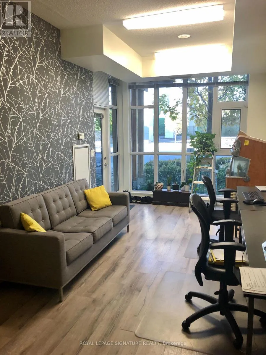 Bathurst-Lakeshore Blvd Unique work/live zoned unit with a private 187 Fort York Blvd entrance. As part of The York Harbour Club it has access to fitness, gym, outdoor pool, lounge area & other amenities including guest parking. Plus 24 hr concierge/security. Comes with 1 underground parking & 1 locker. Access to unit via 35 Bastion the main building to unit 123. An easy walk down the hall. Great area: flagship Loblaws is a 3 minute walk, steps to streetcar & a stroll to the Martin Goodman walking and riding trail. Walk to Billy Bishop airport. Work uses are office type professional where a private entrance may be preferred. The unit is full luxury with: S/S appliances, fridge, stove, dishwasher, microwave, granite counters. Ensuite washer and dryer. Carpet free with laminate flooring throughout. Includes existing window coverings. PS: some photos are from prior listings to better demonstrate the property. Features 10 Foot ceilings. (id:27476)