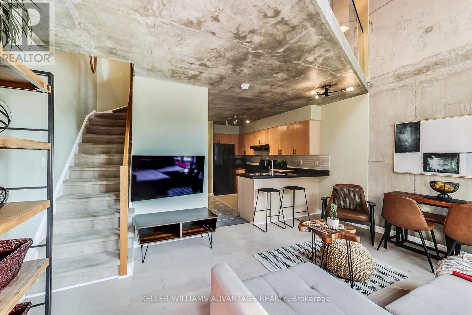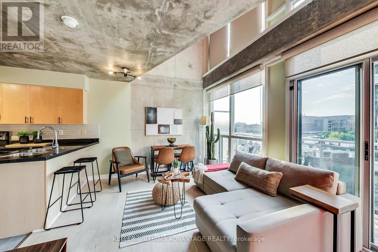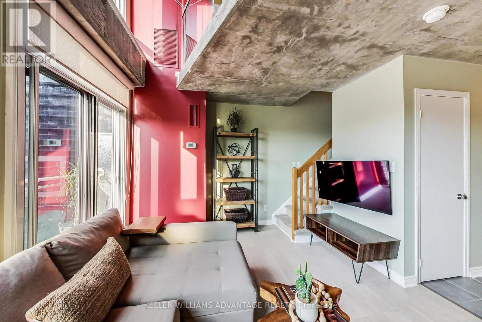 King St West/Shaw St Welcome to The Electra Lofts! This 750 sq ft (includes balcony), open concept 2-storey loft with 1 bedroom and open den that overlooks living and dining area with walkout balcony. Floor to ceiling windows with modern kitchen and granite bar. Walk-in pantry, 2 bathrooms, ensuite laundry, exclusive locker and parking. Great location and great neighbourhood. Steps to the financial district, TTC and easy access to highways. Includes parking and locker and all utitilties. Tenants pay for cable, internet and phone. (id:27476)