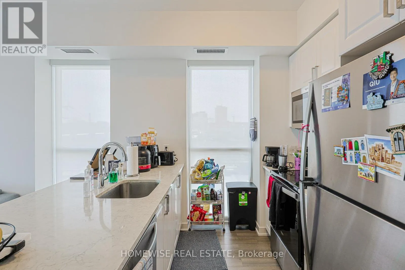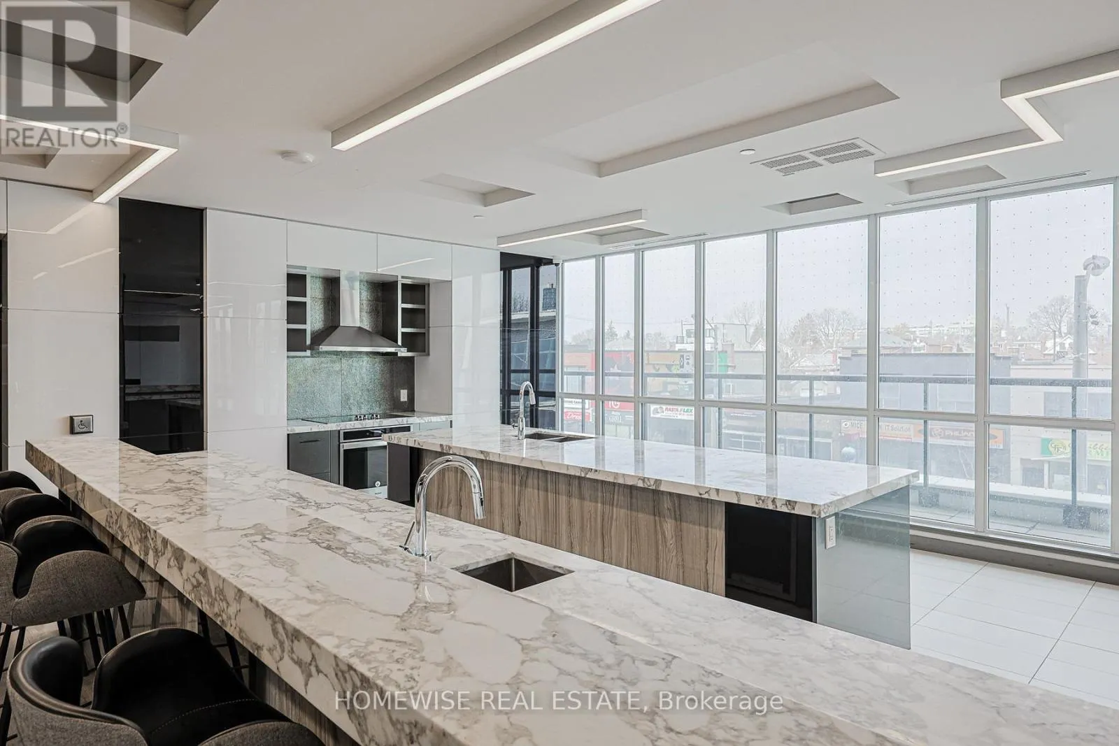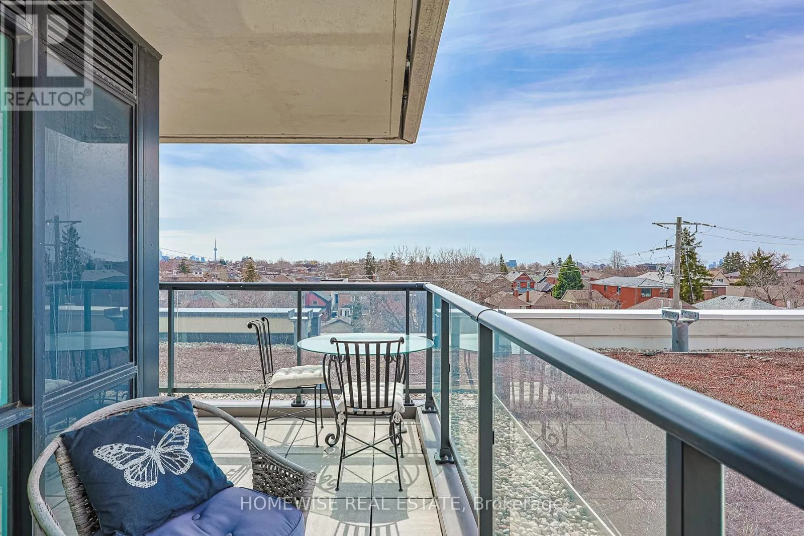 Eglinton W & Oakwood This southwest-facing corner suite is filled with natural light and offers both tranquil sunrises and breathtaking sunsets from a spacious wraparound balcony. Quietly set above a beautifully landscaped green roof with sweeping views of the Toronto skyline, this thoughtfully designed 2-bedroom plus den, 2-bath home combines comfort and style. A custom kitchen with elegant quartz countertops, engineered hardwood flooring throughout, mirrored closet doors, and a sleek glass shower in the ensuite. Enjoy the convenience of in-suite laundry and a charming built-in breakfast nook perfect for everyday living. Located just steps from the Oakwood LRT station and only a 5-minute walk to Eglinton West subway, with easy access to Forest Hill, cafes, restaurants, parks, and the 401. Exceptional amenities include a 24-hour concierge, party room with bar and chef's kitchen, fitness and yoga studio, guest suites, and an impressive rooftop terrace with BBQs. Additional features include a pet wash station, bicycle storage and repair area. (id:27476)