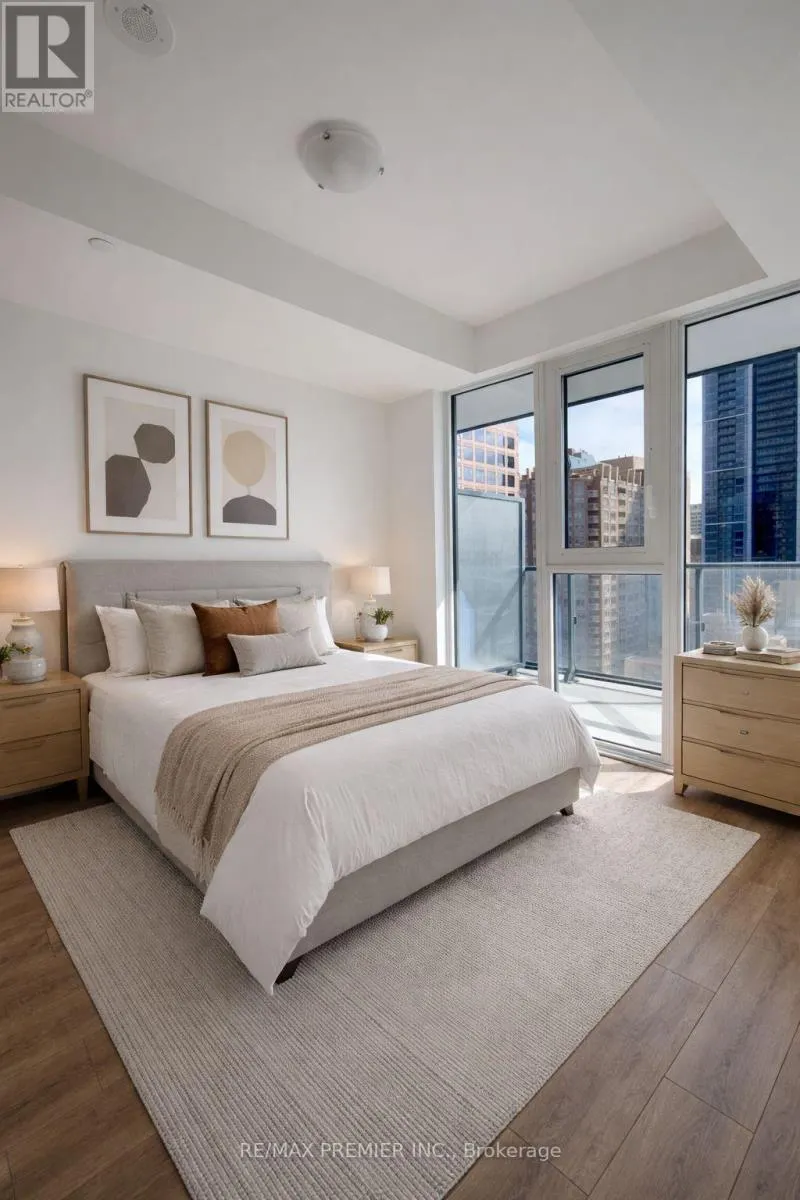 North West Corner of Church & Charles Welcome to The Charles at Church. This brand new, never-lived-in 1-bedroom plus den suite offers modern urban living in the heart of downtown Toronto. Featuring a functional open-concept layout with 9-ft ceilings and floor-to-ceiling windows, the unit is filled with natural light and showcases a bright east-facing exposure for beautiful morning sunshine. The well-designed layout includes a spacious bedroom with upgraded mirrored closet doors and a versatile den, perfect for a home office or additional living space. The contemporary kitchen features sleek built-in appliances, quartz countertops, and stylish finishes, seamlessly flowing into the open-concept living and dining area-ideal for comfortable everyday living and entertaining.Step out onto the private balcony to enjoy the sunrise with your morning coffee. Thoughtful finishes and modern design elements are featured throughout, creating a clean and sophisticated living space. Residents enjoy premium building amenities, including a fully equipped fitness centre, expansive outdoor terrace, party room, and chef's kitchen-perfect for hosting and relaxing. Located in the vibrant Church-Yonge Corridor, just steps to University of Toronto, Toronto Metropolitan University, subway stations, restaurants, shopping, and everyday essentials. Minutes to Yorkville, the Financial District, and major hospitals. Ideal for professionals seeking stylish, convenient, and upscale downtown living in a brand new residence. (id:27476)