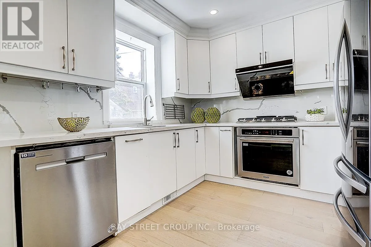 Cross Streets: Donlands / Danforth. ** Directions: Northeast of Donlands and Danforth. Brand New Renovation! 9 Ft Ceiling on Main! Bright Open-Concept Living + Rare Main Floor Bathroom with Shower! Sun-Filled Enclosed Front Porch! Separate Entrance to Basement! Main water & sewer lines replaced (2024, including city-side update) - enjoy strong, reliable water pressure and peace of mind with minimized risk of sewer backup from tree roots or debris, a major upgrade in this older neighbourhood. Brand new solid hardwood flooring on main and second levels, complemented by pot lights throughout the main floor, creating a bright, modern, and inviting space. The main floor showcases a seamless, airy layout with a stylish living and dining area - perfect for both everyday living and effortless entertaining. The modern white kitchen features clean cabinetry, stainless steel appliances, and updated finishes (2025), combining functionality with a fresh aesthetic. At the front of the home, the spacious enclosed porch is flooded with natural light - an ideal space for relaxing, morning coffee, or a comfortable everyday transition area. Upstairs offers bright, well-sized bedrooms with a clean, contemporary feel, enhanced by quality finishes and natural light. The home also features a separate entrance to the basement with a 3-piece bathroom, providing excellent flexibility and future potential, including possible in-law suite use. Major system upgrades deliver true peace of mind: A/C (2025), sewer line (2024), main water line (2023, including city-side update), electrical panel 100A (2018), furnace (2017), master bay window (2018), flat roof (2026).Nearby daycare provides hot meals for school-age children. A move-in ready home just steps to the vibrant Danforth - offering unmatched convenience with cafés, restaurants, parks, and transit at your doorstep. (id:27476)