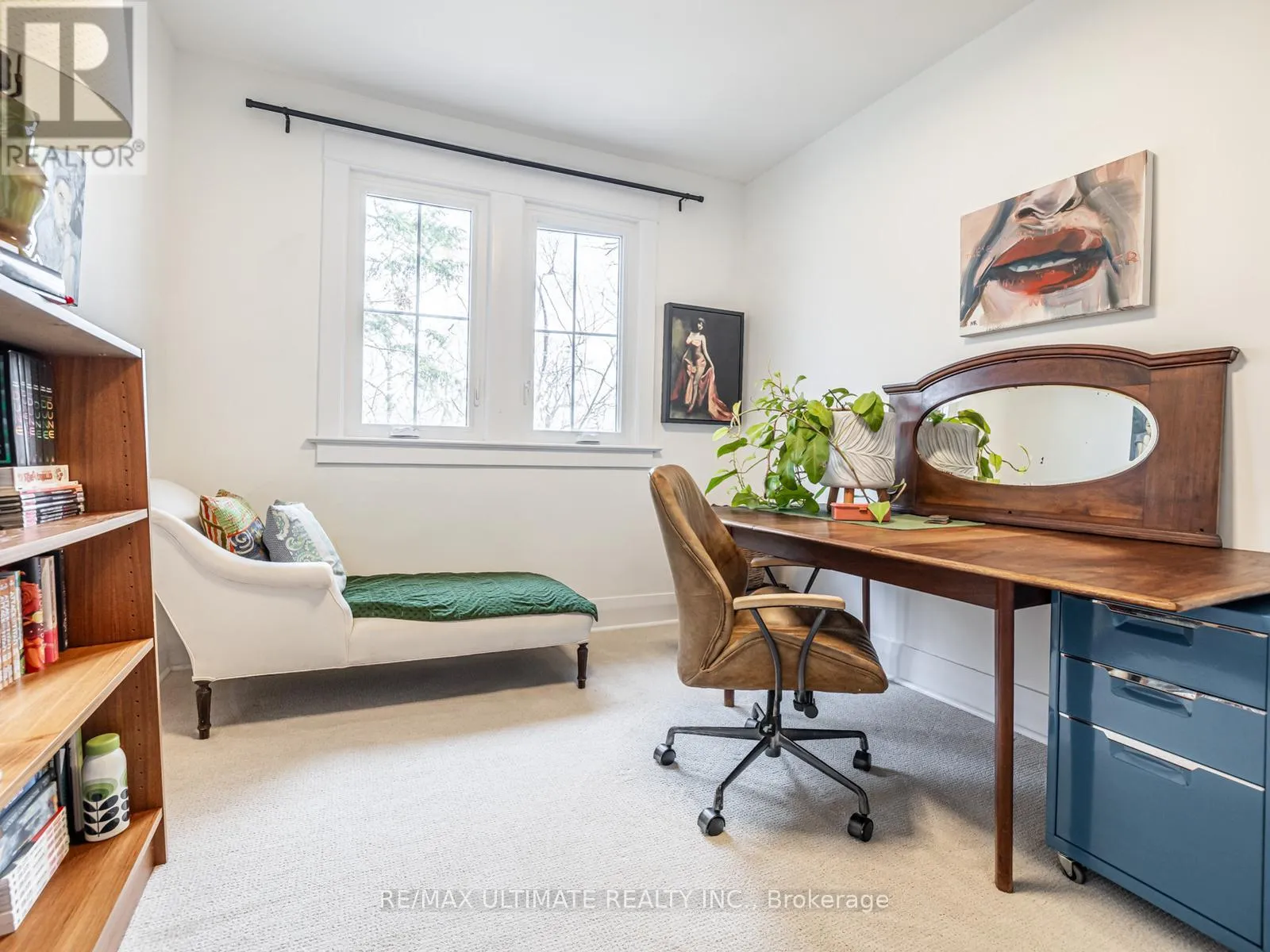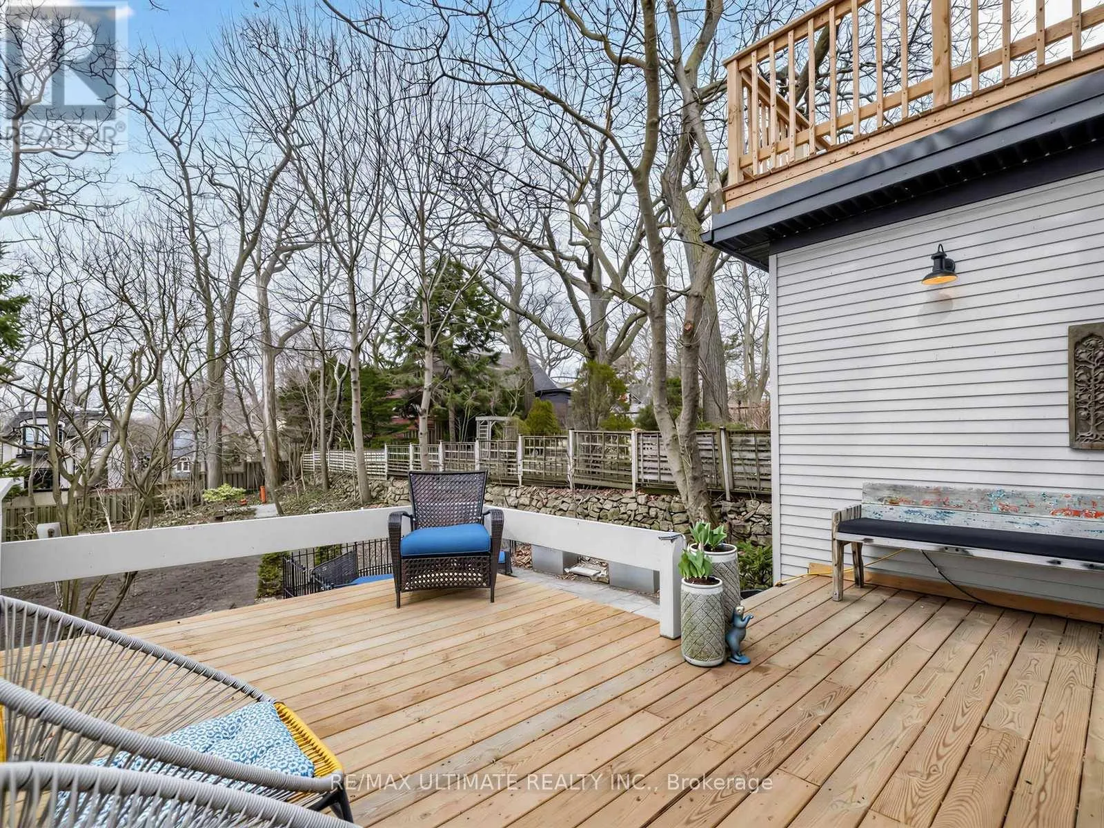 Queen St & Victoria Park Ave WKND Open House Sat2-4/Sun 2-5The newly remodelled and structurally fortified enclosed front porch presents the perfect gateway to this house. Framed in new shiplap and stunning new windows that invite greenery into every corner of your main living space. Step inside the house, and the cozy vibes will put you instantly in retreat mode. The expansive living room with its soaring ceilings has room for the whole family and is anchored by a new period-perfect gas fireplace. The shaker-style kitchen overlooks your treed estate, and culinary inspiration comes naturally with this Kitchen's functional and thoughtful design. The separate dining room has seating for all and is well connected to the main living spaces, including the adjacent den. As a bonus, the main floor has the cutest little powder room you will ever see! The spacious 2nd floor, in addition to the 3 bedrooms, has a totally remodelled family bathroom and two balconies. Luxuriate in your clawfoot tub and enjoy the convenience of second-floor laundry. The third-floor retreat offers a stunning private escape, complete with its own ensuite, lake views, and yet another balcony overlooking the oak trees out back. The high and dry basement has been transformed into a spacious suite with a separate entrance, a new kitchen and bathroom. It offers perfect multi-generational living opportunities or potential added income. Step outside onto your large rebuilt deck with a natural gas BBQ hookup, and enjoy unmatched outdoor living surrounded by nature. The private stone patio, perennials, and pathways transform the space into a whimsical outdoor living area. For the green thumbs in the family, a gorgeous new cedar greenhouse awaits. At 18 Blantyre, you can skip the drive to Muskoka on Friday nights. You have it right here in the City. Don't let this one get away. A GREAT PLACE TO CALL HOME! (id:27476)