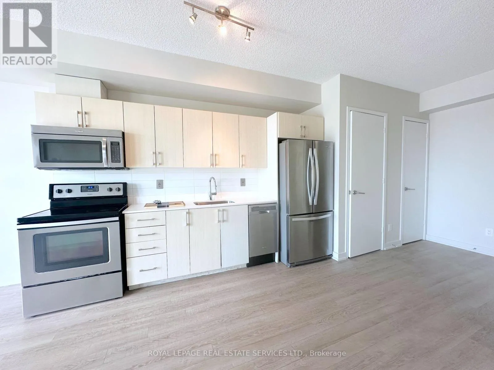 Cross Streets: Woodbine/Gerrard. ** Directions: Southeast corner of Woodbine and Gerrard. Bright and modern 1-bedroom + den suite with a north-facing view. The open-concept layout features plank flooring throughout, a sleek kitchen with stainless steel appliances and white cabinetry, plus your own private balcony to enjoy. The separate den offers the perfect spot for a home office, study, or cozy retreat. Complete with ensuite laundry. A leisurely walk to Woodbine Park or Woodbine Beach with easy access to the TTC streetcar right outside your doorstep. Great building amenities including a fully equipped fitness centre and a beautiful 3rd-floor terrace complete with barbecues. Parking optional, available to rent for additional cost. Tenant to pay hydro and water. (id:27476)