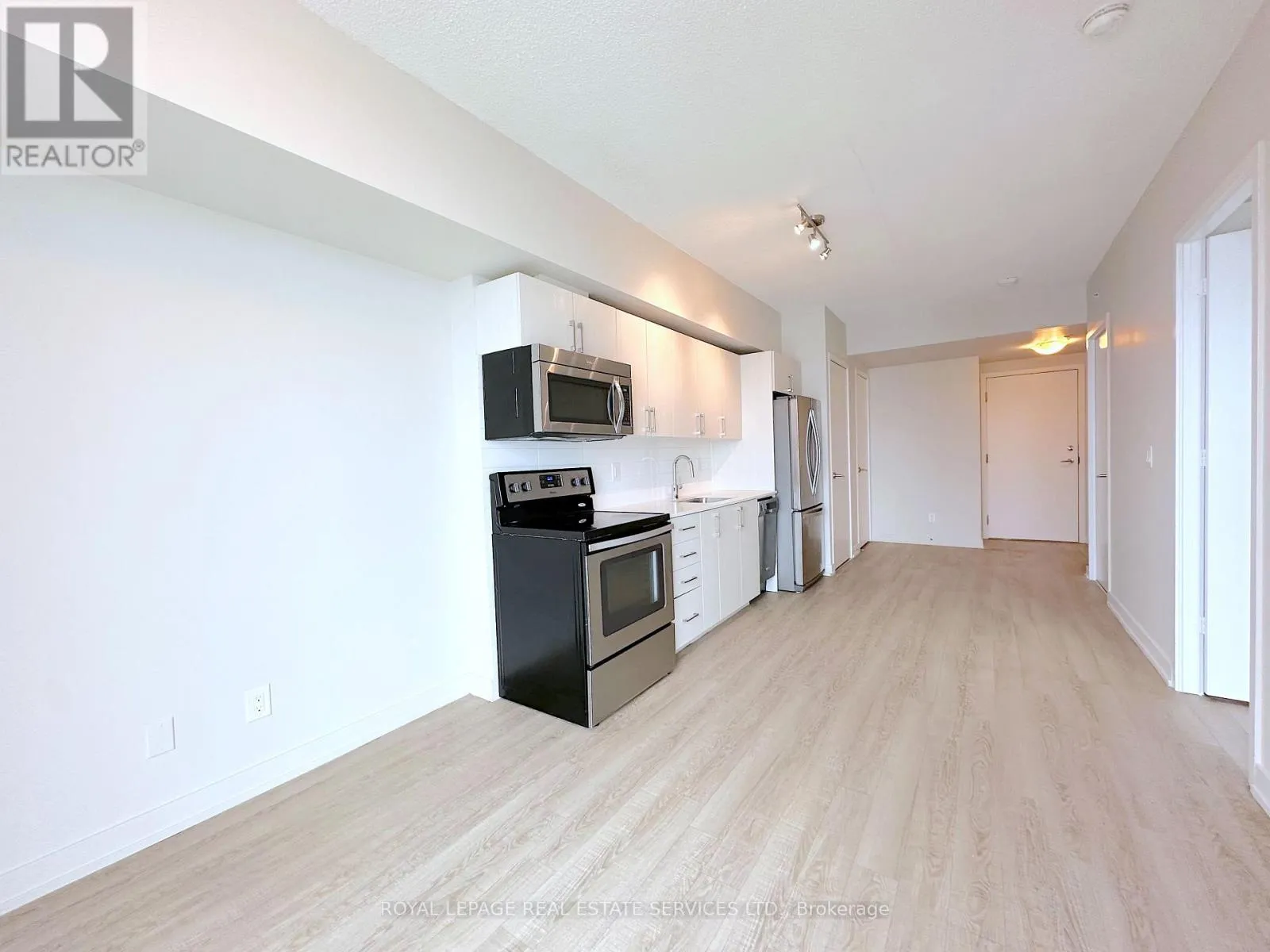 Cross Streets: Woodbine/Gerrard. ** Directions: Southeast corner of Woodbine and Gerrard. Bright and modern 1-bedroom + den suite with a north-facing view. The open-concept layout features plank flooring throughout, a sleek kitchen with stainless steel appliances and white cabinetry, plus your own private balcony to enjoy. The separate den offers the perfect spot for a home office, study, or cozy retreat. Complete with ensuite laundry. A leisurely walk to Woodbine Park or Woodbine Beach with easy access to the TTC streetcar right outside your doorstep. Great building amenities including a fully equipped fitness centre and a beautiful 3rd-floor terrace complete with barbecues. Parking optional, available to rent for additional cost. Tenant to pay hydro and water. (id:27476)