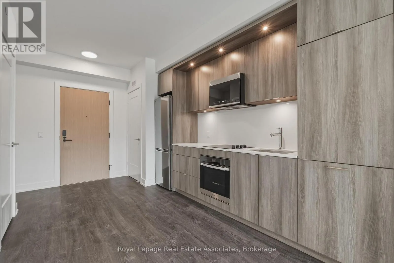 Bloor & Islington Welcome to Westerly 1 at 25 Cordova Avenue, where contemporary design meets everyday convenience in the heart of Islington-City Centre West. This brand-new 1-bedroom plus den suite offers 609 sq. ft. of thoughtfully designed interior space, featuring a bright, carpet-free layout and modern finishes throughout. The modern kitchen features built-in stainless steel appliances and sleek cabinetry, flowing seamlessly into the combined dining and living area. Floor-to-ceiling windows enhance natural light throughout the open-concept living space, creating an inviting setting for both everyday living and entertaining. The bedroom offers a comfortable layout with a large closet and window, while the open-concept den provides flexible space well suited for a home office or additional living area. A contemporary 4-piece bathroom is finished with clean tilework and modern fixtures. In-suite laundry is conveniently located in a dedicated closet, maintaining an efficient and functional layout. Residents enjoy access to amenities including a fitness centre, guest suites, party and meeting rooms, and concierge service. Ideally located steps from Islington Station, parks, grocery stores, cafés, and everyday conveniences, this suite offers comfortable, well-connected urban living in a sought-after Etobicoke community. (id:27476)