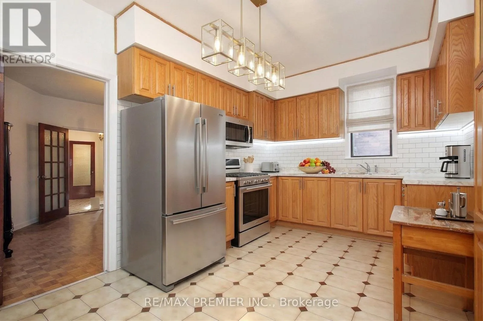 Cross Streets: St.Clair/Dufferin. ** Directions: St. Clair Ave W / Oakwood Ave./ Dufferin. Premium 2.5-Storey Residence in the Heart of St. Clair Village Experience the perfect blend of classic Toronto architecture and modern functionality in this impeccably maintained 2.5-storey detached home. With very high ceiling and one owner for 51 years, this property offers a rare combination of residential comfort and significant income potential, making it an ideal choice for growing families or savvy investors looking to capitalize on one of the city's most consistent growth neighbourhoods. The exterior boasts a timeless stone-veneer brick and a durable architectural shingle roof featuring a prominent third-floor dormer that floods the upper level with natural light. At the rear of the property, a rare and highly desirable large double-car garage provides secure parking and additional storage. The expansive 14 x 12 foot eat-in kitchen serves as the heart of the home, featuring a walk-out that allows for effortless indoor-outdoor entertaining. The lower level is fully finished with durable tile flooring and includes a comprehensive 5-piece bathroom and dedicated laundry facilities, providing an excellent foundation for a secondary suite or multi-generational living arrangement. Located just steps from the vibrant energy of St. Clair Village, residents enjoy immediate access to artisanal cafes, world-class dining, and the dedicated St. Clair streetcar line. This home represents a premier opportunity to own a versatile asset in a walkable, amenity-rich community. **Estate sale owned by the same owner for 51 years **Some photos are virtually staged** (id:27476)