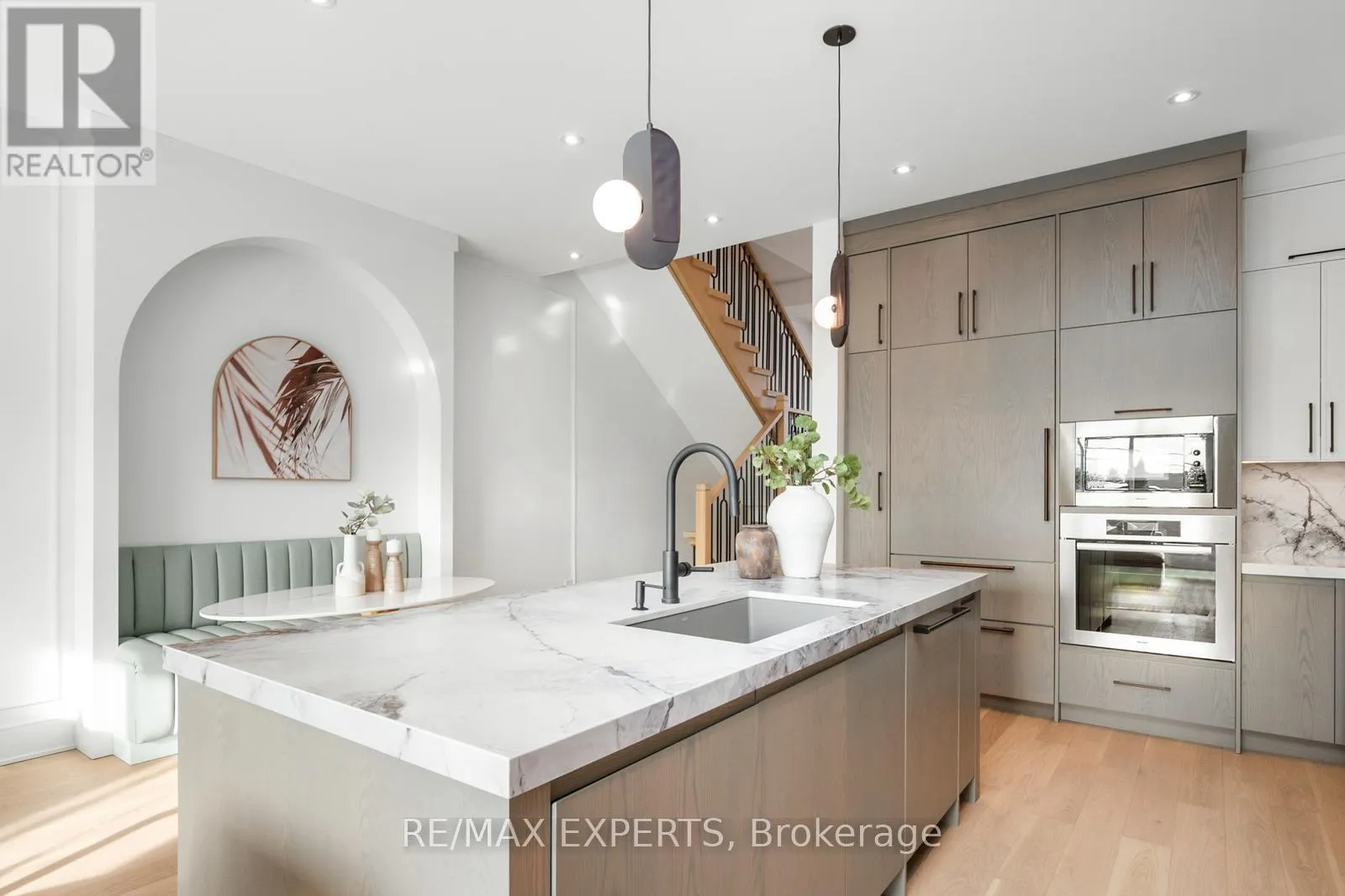 Oakwood Ave & St.Clair A true statement of luxury, 15 Holland Park offers approximately 2,600 sq ft above grade of meticulously crafted living space, where no expense has been spared. This professionally designed 4+1 bedroom, 5-bath residence showcases timeless elegance with a striking limestone and brick facade and refined finishes throughout. The home is flooded with natural light and features thoughtfully curated details, with premium plumbing and tile selections supplied by Canaroma. The primary retreat is a showstopper, occupying its own private level complete with a rooftop terrace overlooking the city skyline and iconic CN Tower views, dual his-and-her walk-in closets, and a spa-inspired ensuite designed for ultimate relaxation. A fully finished basement with separate entrance and separate laundry adds incredible flexibility for extended family or guests. From the elevated design to the seamless indoor-outdoor living, this exceptional home delivers sophisticated city living at its finest. (id:27476)