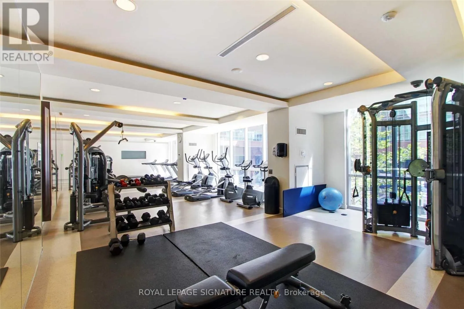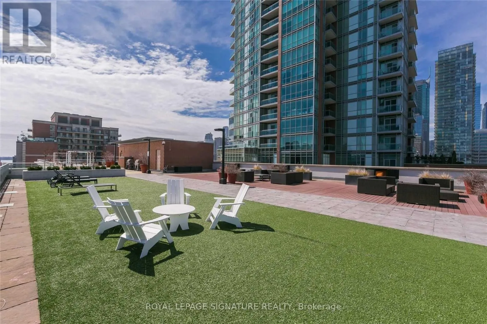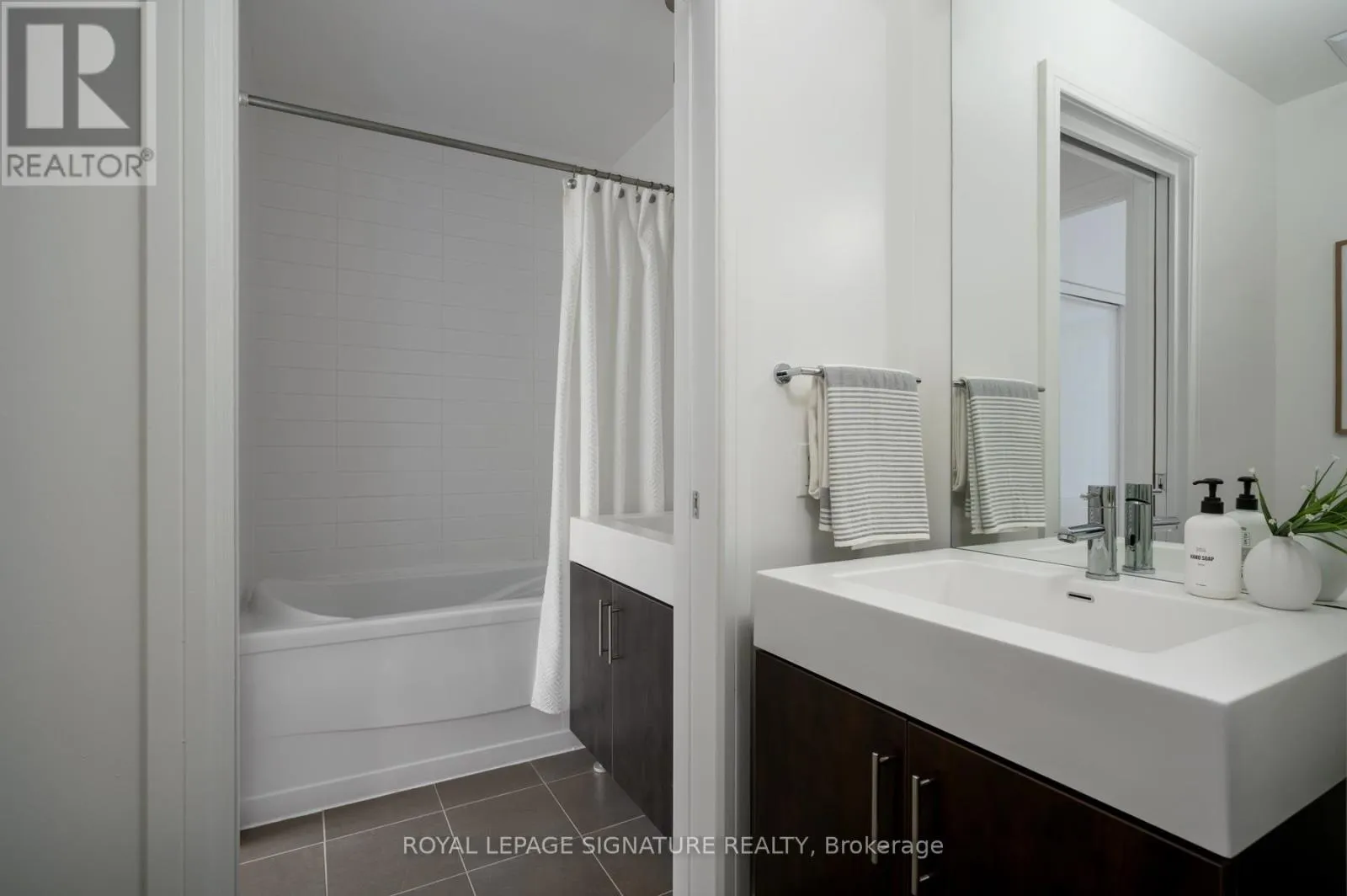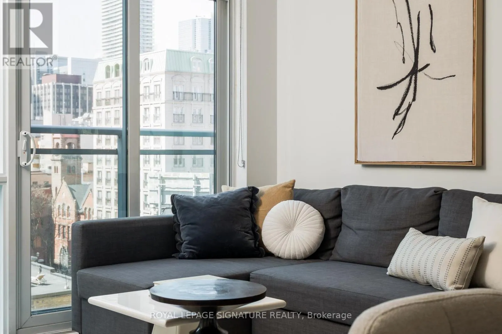 Adelaide & Jarvis Now this is a one bedroom done right! When was the last time you saw a nearly 700 sq ft one bedroom condo with 10ft ceilings, walls of windows, and a truly oversized living space that comfortably fits both living and dining? This condo delivers, and then some. A generous kitchen with island and stainless full-sized appliances flows seamlessly into the open-concept living and dining area, complete with a modern decorative fireplace that adds warmth and character. Enjoy a wall of west-facing windows and a juliet balcony overlooking the quiet courtyard and the charming Parisian style building next door - city views without the noise! The primary bedroom is a spacious retreat with a semi-ensuite bathroom featuring double sinks and a clever pocket door that converts it into a guest-friendly powder room. Plus, enjoy stylish new lighting throughout. Top-tier amenities include 24-hour concierge, two gyms, rooftop patio, guest suite, two party rooms, and visitor parking. Step outside and you're moments to St. Lawrence Market, St. James Park, the waterfront, great dining, cafes, groceries, and transit. Spacious, stylish, and full of potential. This is one bedroom living with room to grow. Parking included! (id:27476)