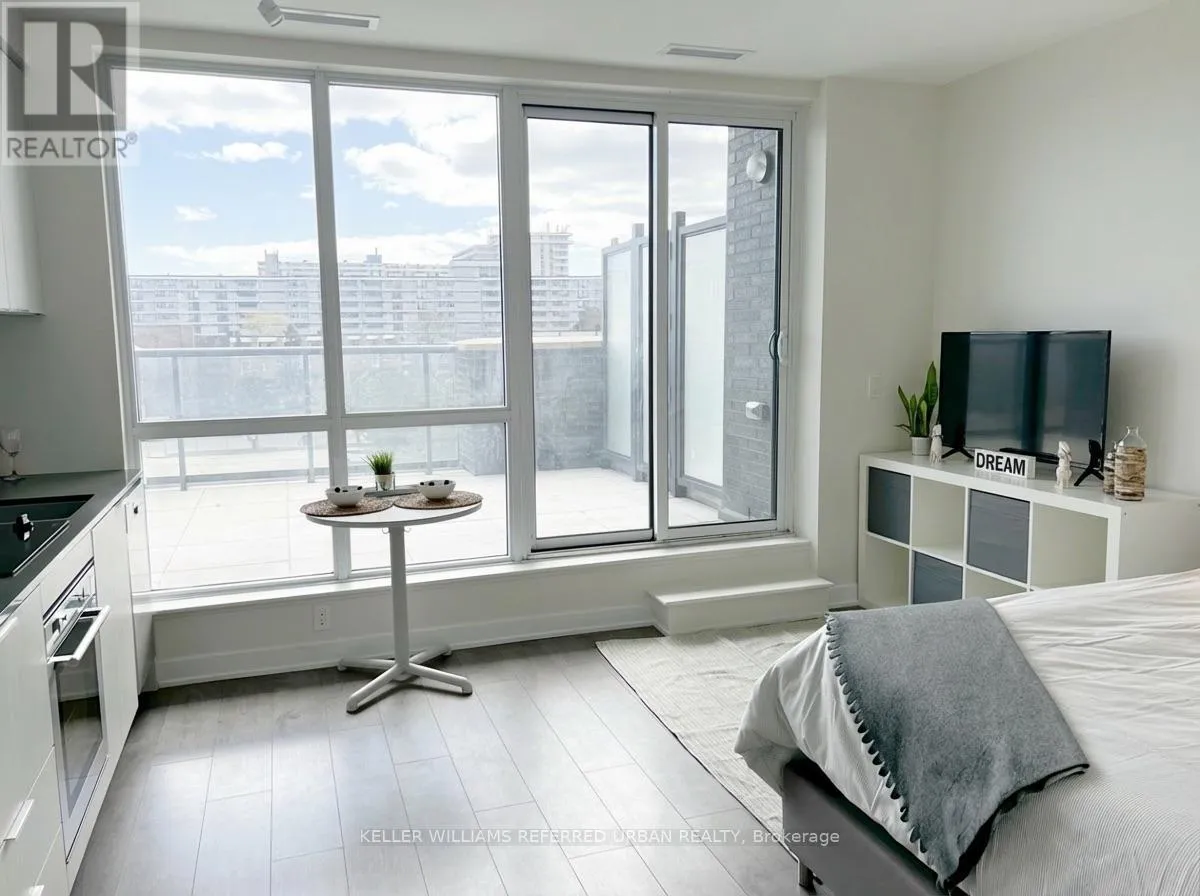 Eglinton Ave / Don Mills Rd Opportunity awaits with this stylish, move in ready studio offering a five star lifestyle. Fully furnished and set in a convenient and desirable Toronto neighbourhood, this bright open concept suite features floor to ceiling windows and a modern kitchen with stainless steel appliances. The living area walks out to a private terrace, perfect for relaxing or entertaining. Located close to the Eglinton Crosstown, Aga Khan Museum, shops, restaurants, and everyday amenities. This unit is furnished and includes an owned locker, south exposure, and June 1 possession. The building is 4 years old and offers amenities such as a gym, concierge, party room, visitor parking, recreation room, security system, and games room. Rent includes common elements, building insurance, and water. (id:27476)