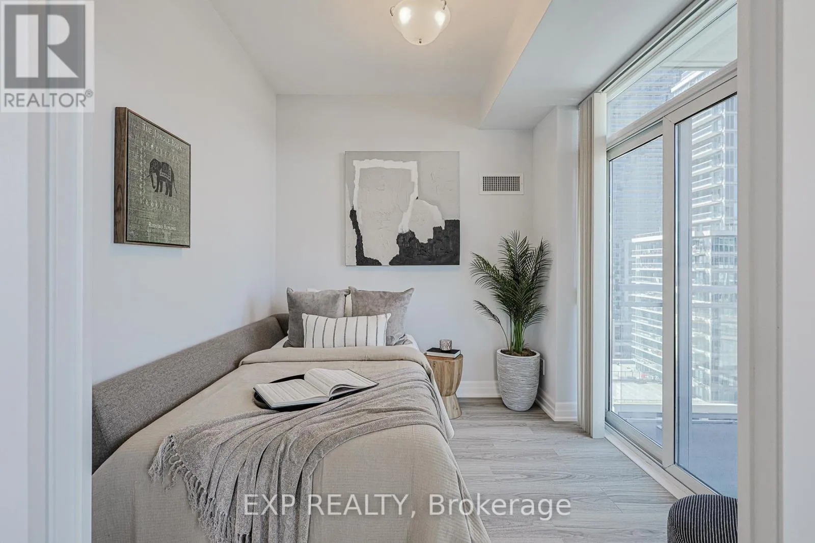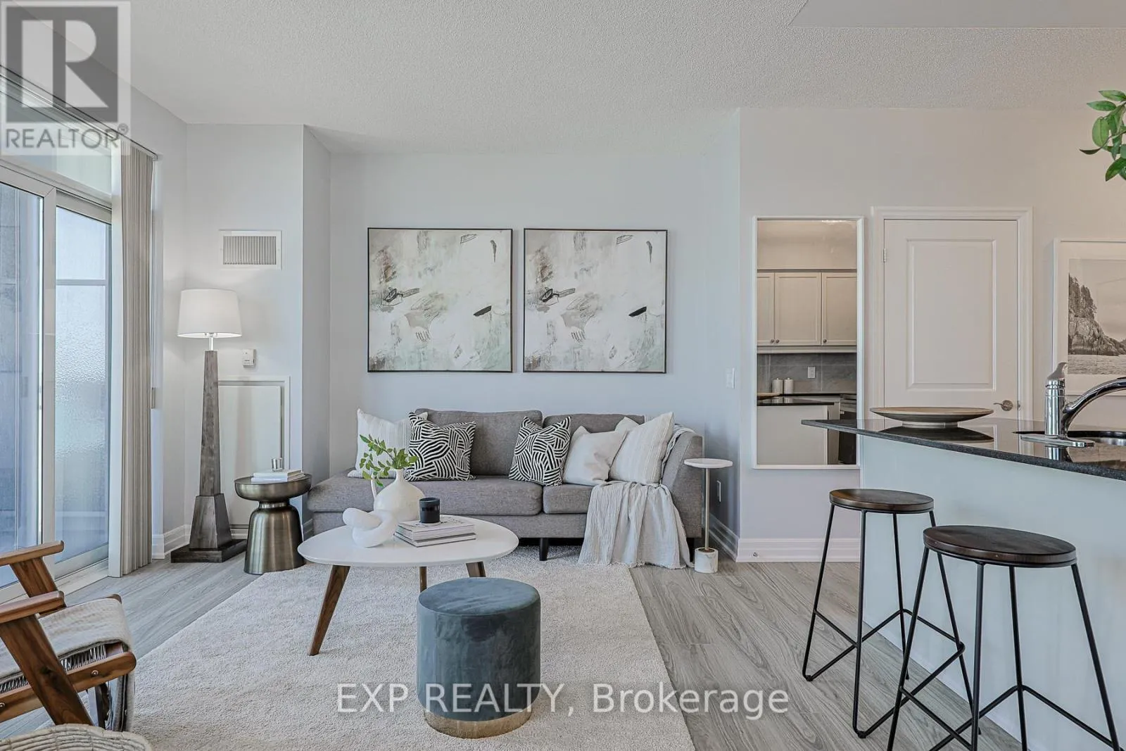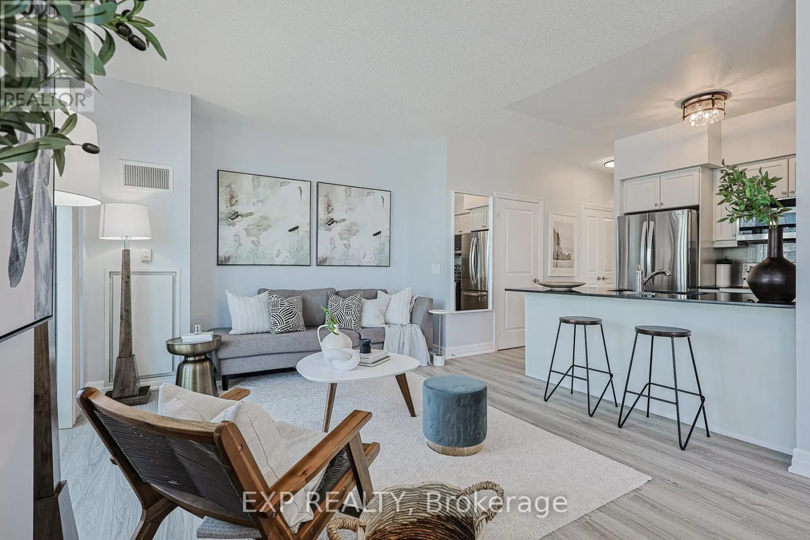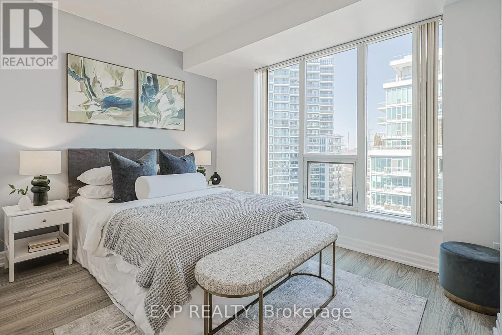 Cross Streets: Lake Shore and Marine Parade. ** Directions: Entrance from Annie Craig. This 1 Bed + Den, corner-suite features 9-foot ceilings and wrap-around windows that flood the space with plenty of natural light. The rare layout includes two private balconies offering significantly more outdoor space than typical units in the area. The interior was recently refreshed with new flooring, modern lighting, and brand-new stainless steel appliances. The den functions as a bright office or even a second bedroom with its own walk-out. Located in Mimico's waterfront community, the building offers 24/7 security, an indoor pool, gym, and sauna. This move-in ready suite includes one parking spot and one locker. (id:27476)