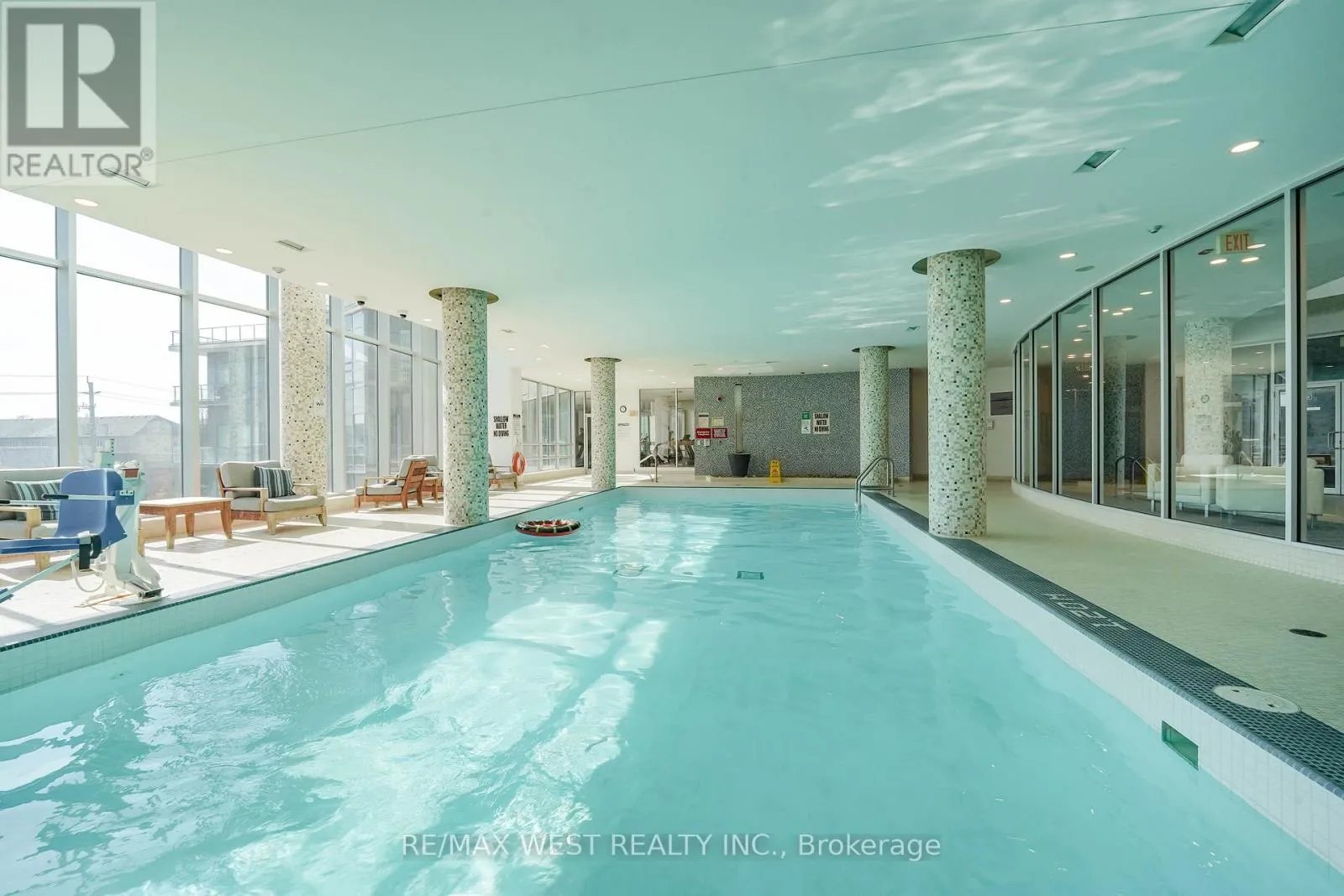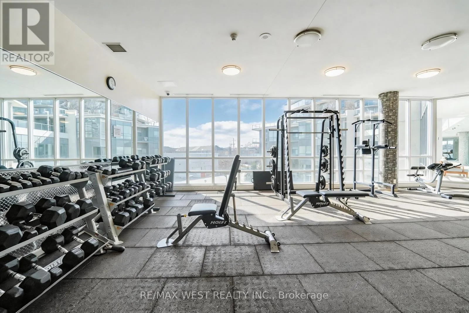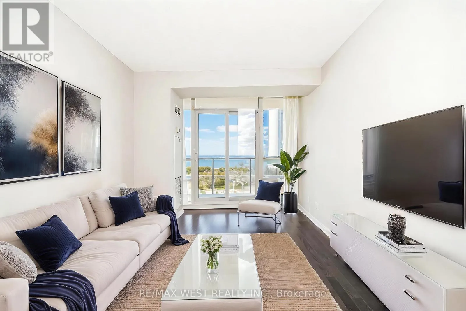 Lakeshore & Parklawn Amazing view of Lake Ontario. Bright & spacious two bedroom & two bathroom condo. Great layout with the two bedrooms on opposite ends of the living/dining rooms. Watch the sunsets and entertain on the extra large balcony. Modern kitchen with full size stainless steel appliances and granite countertop, backsplash, and hardwood flooring, no carpet. Steps to TTC, shopping, restaurants, services, entertainment and the lake and Humber Bay Park. Enjoy waterfront trails and easy access to the highway for commuters. Some photos are virtually staged. (id:27476)