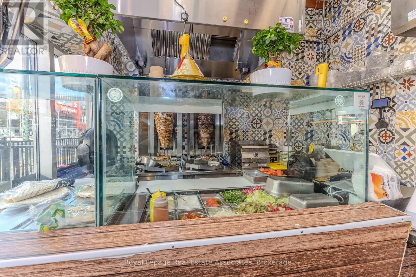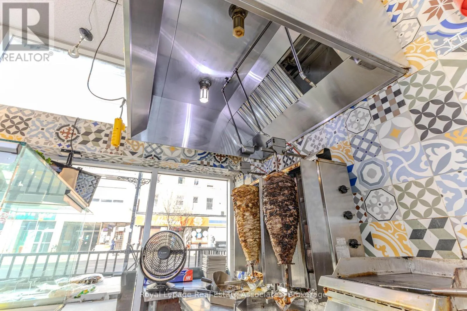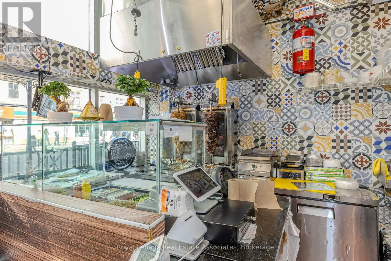 Spadina Avenue / Bloor Street W. Prime turnkey fast-food opportunity in one of Toronto's busiest high-foot-traffic corridors, surrounded by nonstop university pedestrian flow-ideal for a flagship location or an operator looking to expand. Currently a shawarma shop but fully adaptable to any cuisine, the space comes equipped with two commercial hoods, a walk-in cooler, ample storage, and a patio with potential to extend. Utilities include hydro and gas, with daily garbage pickup provided, making operations smooth and efficient. A rare, high-visibility opportunity to launch or expand your brand in a thriving Toronto hotspot. (id:27476)